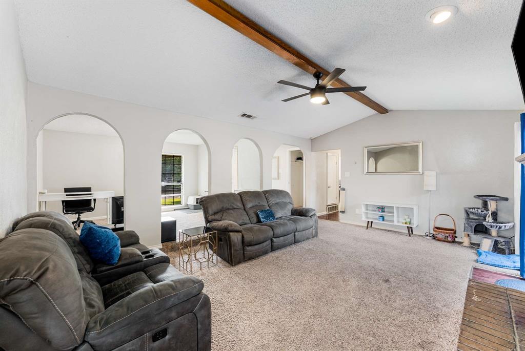 The exterior of this property is an oasis in its own right, boasting a large lot adorned with mature trees that provide both shade and a sense of tranquility. The fenced backyard is perfect for outdoor activities, while a cozy patio invites leisurely afternoons or weekend BBQs. The covered front porch serves as a welcoming prelude to the home's warmth, and the rear-entry garage enhances the property's clean and uncluttered facade.