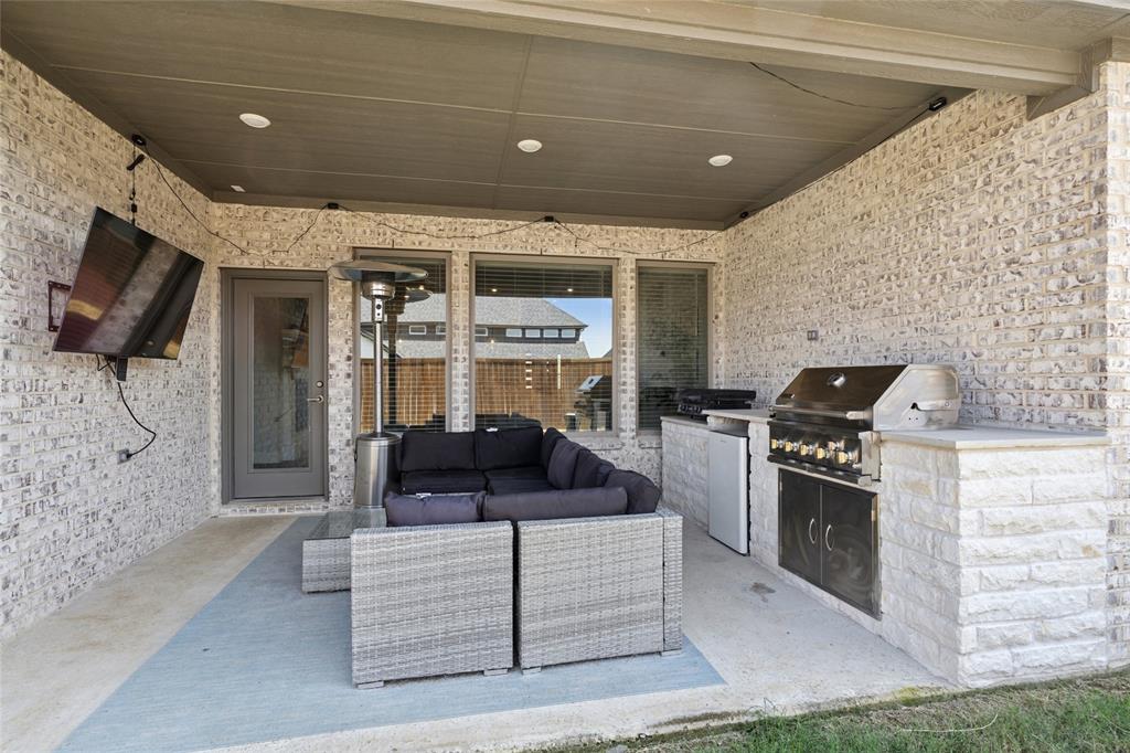 Welcome Home to this stunning 2024 over 60ft premium lot located in the heart of Oak Point, TX. This home is walking distance to the beautiful amenities of the club house, pool, workout facility. This beautifully upgraded home offers the perfect blend of modern elegance and everyday comfort , with over $55,000 in premium UPGRADES inside and out. Inside you will find an open concept design that seamlessly connects the living, dining and kitchen areas that create an inviting space for both entertaining and relaxation. The chef's kitchen is equipped with beautiful upgraded quartz counter tops, large eat-in island,large pantry, extended buffet and upgraded finishes. With 4 spacious bedrooms and 3 full baths there is plenty of room for friends and family to stay! Covered patio with $10k upgrade on outside grill and fridge. The home offers a 3-car tandem garage with plenty of space for cars and storage. The home includes a spacious walk in laundry room with plenty of space for storage. Refrigerator stays. TV, Couch, and patio furniture are negotiable. Buyers and Buyers agent to verify all information provided.