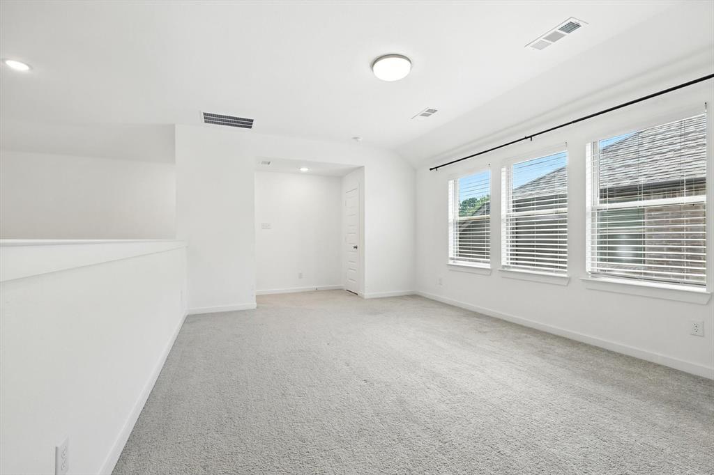 Beautiful Highland Home with Greenbelt Views! This stunning 2-story home greets you with high ceilings in the entryway and the family room, filling the home with natural light and an open feel. The gourmet kitchen boasts quartz countertops, a subway tile backsplash, gas cooktop, and a spacious walk-in pantry perfect for cooking and entertaining. The first floor offers both a private guest suite with full bath and the luxurious owner’s retreat. The primary suite showcases a charming bay window, spa-like bath with garden tub, separate shower, dual sinks, and a generous walk-in closet. Two additional bedrooms on the second floor along with a nice living game room area. Enjoy peaceful evenings in the private backyard or just take a nice walk to the pond across the street. This home is exactly what you were looking for.