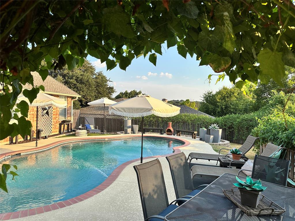 Don't miss this opportunity to be in the amazing Eagle Mountain subdivision of Woodlake AND at a fantastic price! This is a must-see property with a wonderful floor plan and spectacular backyard oasis! A one story, full of charm and ready to make your own. With the flow and privacy of split bedrooms, two living areas, and two dining areas, this checks all the boxes. The formal dining room, currently being used as a music room, is a flex room of your choice. Once with a doorway to the entryway, it can easily be opened up again. The eat-in kitchen is cozy and conveniently located between the family and dining rooms. Double oven and plenty of natural light. All bedrooms have new carpet and are freshly painted. The two full bathrooms are freshly painted as well. Out front, an electric gate leads to a rear-entry, 2 car garage and an abundance of parking space. Gorgeous grapevine adorns an arched, gated arbor and leads you to an absolutely stunning pool and grounds for swimming, BBQing, relaxing and summertime enjoyment! Covered patio is perfect for morning coffee, al fresco dinners, and watching glorious sunsets. Roof is approximately 4 yrs old. HVAC system; lower fan, condenser fan, and outdoor compressor all replaced within the last 6 months. PebbleTec pool re-surfaced and pool pump replaced 4 years ago. This little slice of heaven won't last long!! Showings start Saturday, Aug 23rd.