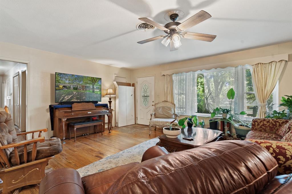 Tucked into a quiet Weatherford neighborhood with a brand new roof and gutters, and just minutes from H-E-B, Costco, and quick freeway access, this classic brick home blends convenience with a relaxed, outside-the-city-limits lifestyle. Mature trees shade the front porch and welcome you into a light-filled living room with a big picture window and warm, original hardwoods. An expansive kitchen offers abundant cabinetry, long countertops, and a handy pass-through to the dining area—perfect for everyday meals or entertaining. A second living room anchors the back of the home with a brick fireplace, built-ins, and exposed beams for cozy movie nights. Spacious bedrooms enjoy generous natural light, and an enclosed sunroom-mudroom provides extra storage or a hobby space. Out back, the fully fenced yard boasts sprawling shade from multiple pecans, deer sightings, and a patio ready for grills and gatherings. Keep all the toys protected in the RV-boat barn set inside the fence—ideal for a camper, boat, or workshop. With the feel of country living and the convenience of town at your fingertips, this property is a rare Weatherford find—bring your vision and make it your own!