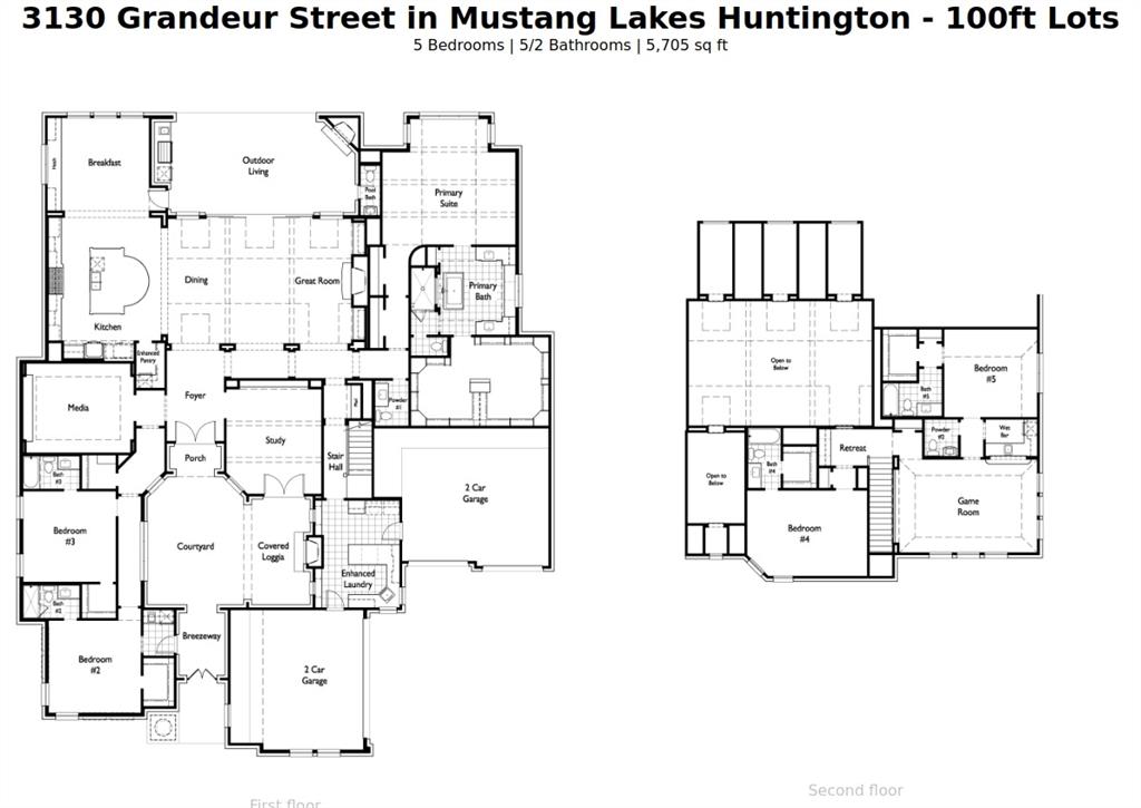MLS# 21039091 - Built by Huntington Homes - November completion! ~ This exquisite 5-bedroom estate offers 5,705 square feet of sophisticated living and a 4-car garage. Enter through a breezeway into a serene Courtyard and covered Loggia, where a designer fireplace sets the stage for refined outdoor entertaining. The gourmet kitchen is a culinary masterpiece, featuring Wolf and Sub Zero appliances, bespoke cabinetry, an enhanced pantry, and a sunlit breakfast alcove. Host with elegance in the outdoor living area, complete with a full kitchen and fireplace for year-round ambiance. The opulent Primary Suite boasts vaulted ceilings with exposed beams and custom California Closets, creating a haven of luxury. Upstairs, discover two private suites, a Game Room with Wet Bar, and a tranquil Retreat with built-in desk. Premium finishes elevate every space.