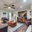 Inside, the open layout makes gathering easy, with a cozy wood-burning fireplace as the heart of the living room. The kitchen features granite countertops, stainless steel appliances, and flows seamlessly into the living and dining spaces. Plantation shutters throughout add timeless style, while the Philips Hue smart lighting system and Bluetooth canister lighting bring modern convenience and customizable ambiance throughout the home.