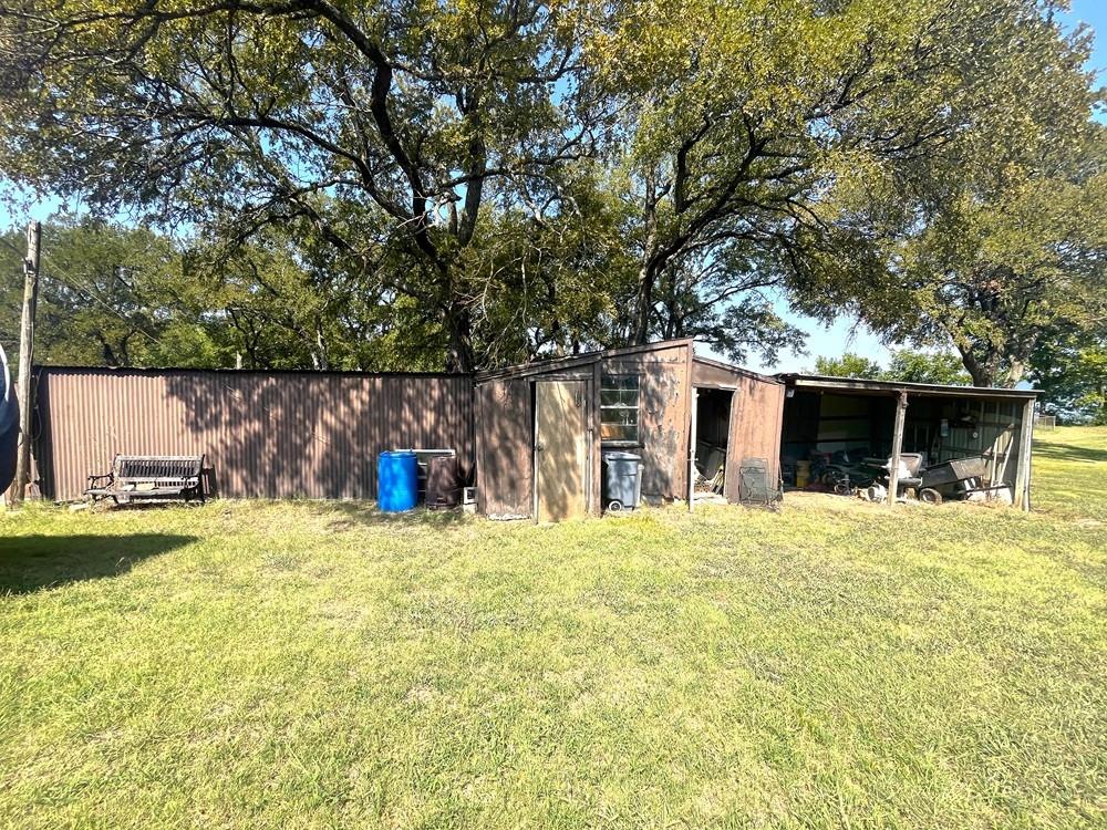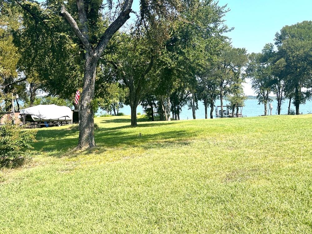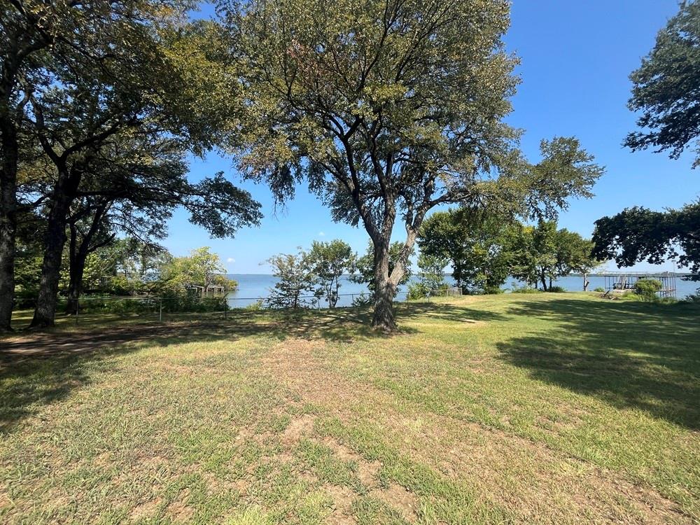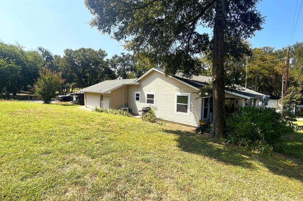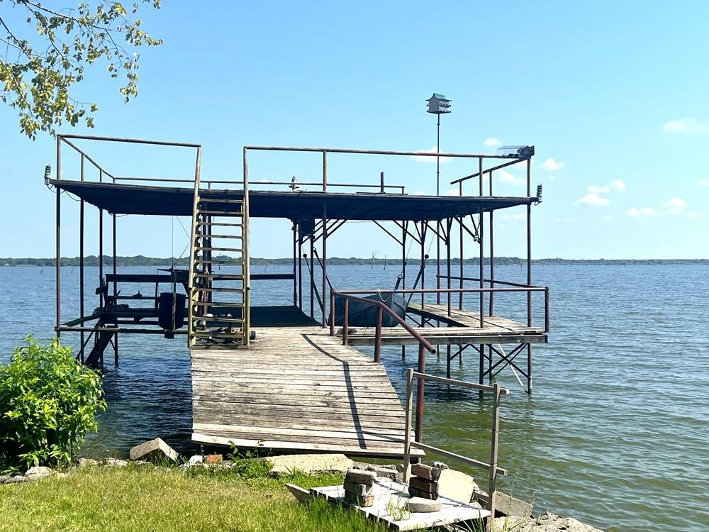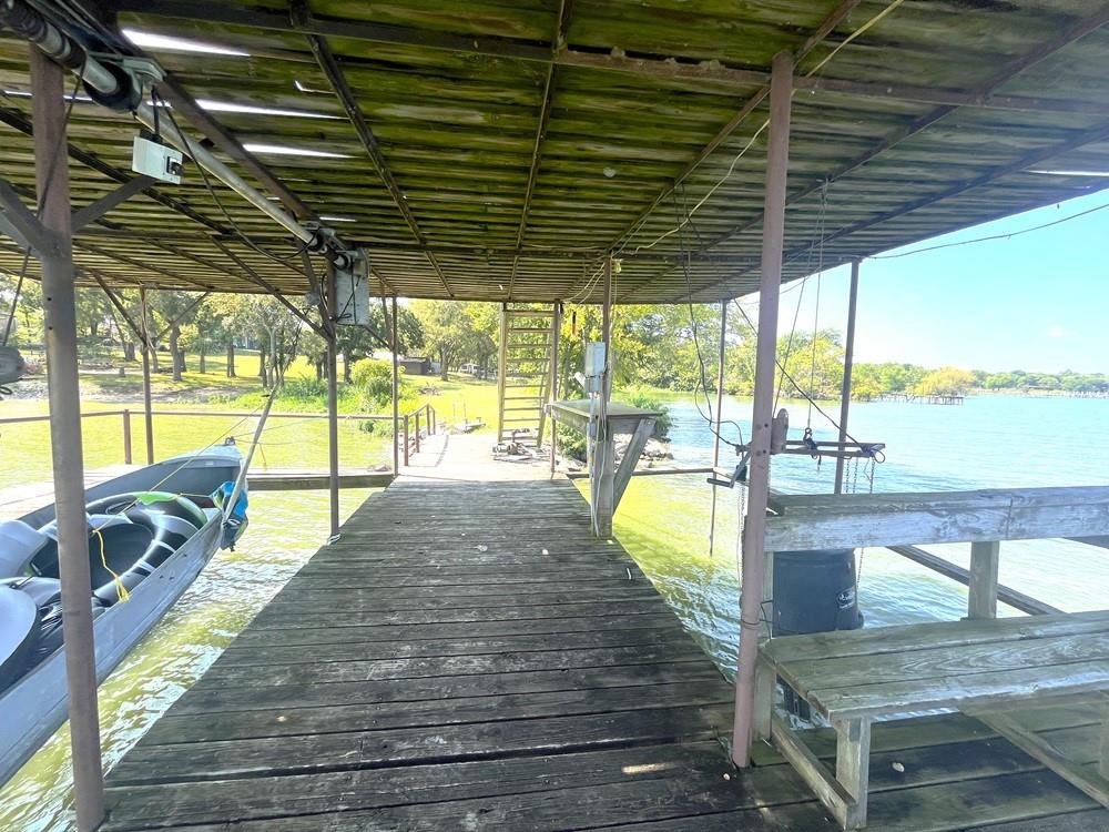 Lakefront Charmer on Tawakoni! Property offers 2 bedrooms-2 bathrooms-2 car attached garage on 2 lake front lots with a covered dock-pier combo with a lift on open water not too far from the main body of the lake! Great drive up appeal, corner treed lot with a covered back porch to view the nature and water views, open living and dining area, galley kitchen with electric stove and dishwasher, full size laundry area inside the garage, primary bedroom has his and her vanity sinks, storage building near the lake with a covered carport, city water and sewer, paved roads all the way down to the subdivision, next to the community park, near marinas, shopping, and Tawakoni Golf Course! Needs updating and a little TLC but has tons of potential as a short-long term rental or weekend getaway! 2nd lot is vacant-possible to build another home or guest house or shop! Estate Sale-selling As-Is Where Is. 0.25 deeded acres and the rest of the back yard is leaseback thru Sabine River Authority for an additional $100+- per year. Sellers have an existing survey of deeded acreage.