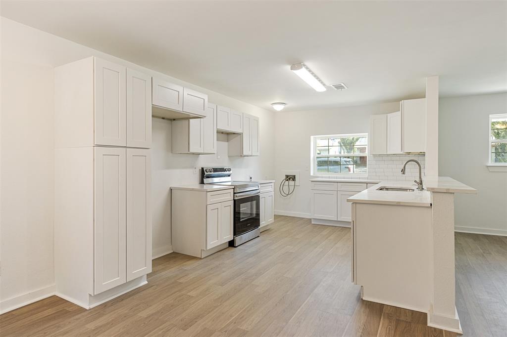 Beautifully remodeled 3 Bedroom, 1 Bath Home with Open floor plan. Step in to the large flexible living space with vinyl plank flooring and wood burning fireplace with gas starter. Kitchen Features new Shaker Style cabinets with Large Pantry, Granite Countertops, updated appliances, breakfast bar and hookups for washer and dryer. All bedrooms have new carpet and doors. Updated bath with new fixtures and beautiful tile surround on tub-shower. All new windows. Updated Electrical and light fixtures. Updated Fixtures and Plumbing in bath and kitchen. New Duct Work in attic for AC and new vents. Interior and Exterior paint. Large tree shaded back yard. Fresh landscaping in front.