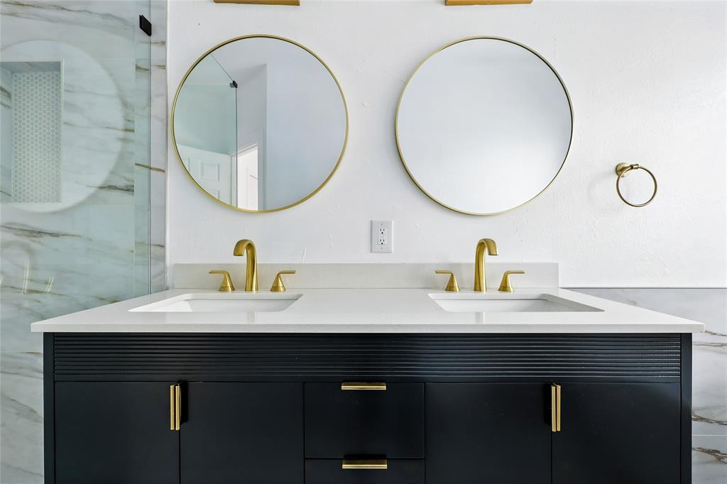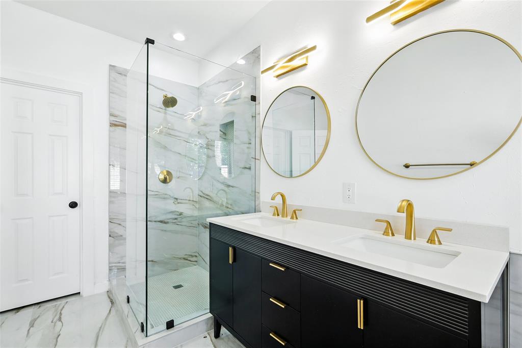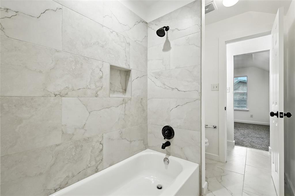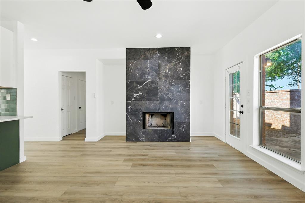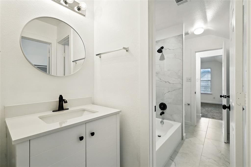 Welcome to 1800 Hyde Park Ct, a beautifully remodeled 3-bedroom, 2.5-bath, 2-story home hidden away in a private cul-de-sac with no HOA, offering peace, privacy, and freedom in Flower Mound. The heart of the home is a stunning designer kitchen featuring two-tone cabinetry, brushed gold hardware, quartz countertops with elegant gray veining, and a bold green subway tile backsplash that adds the perfect pop of color. Stainless steel appliances, stylish pendant lighting, and open flow into the living area make this space ideal for entertaining. Anchored by a dramatic black marble fireplace, the living room is filled with natural light from oversized windows. The spacious primary suite provides a serene retreat with tall ceilings and wide-plank flooring. Its spa-inspired en-suite bath showcases a sleek dual vanity with gold accents, a walk-in glass shower wrapped in marble tiling, and a freestanding soaking tub beneath a sunlit window. Two additional bedrooms are generously sized and paired with updated jack & jill baths featuring modern finishes. Throughout the home, attention to detail shines — from designer fixtures and lighting to seamless flooring that unites every space. Outside, the low-maintenance yard offers a private brick-walled patio shaded by mature trees — perfect for entertaining or relaxing without the upkeep. This property sits in the highly sought-after Flower Mound ISD and is just minutes from Grapevine Lake, Parker Square, DFW Airport, and local dining and shopping, giving you the ideal blend of tranquility and convenience. Don’t miss your chance to own this one-of-a-kind home where thoughtful design, location, and lifestyle converge. Be sure to check out the virtual tour and come see it for yourself!