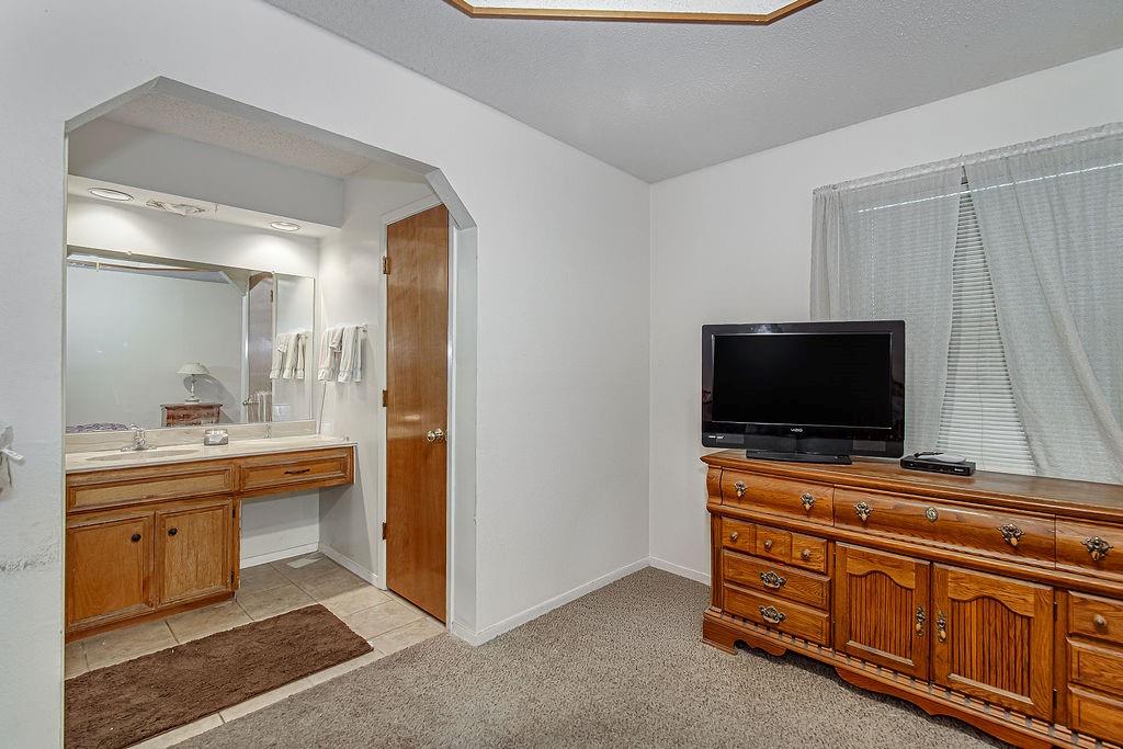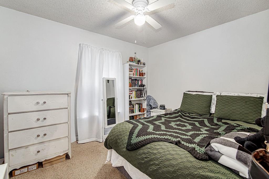 Tucked just off the living area, the cozy primary suite includes an ensuite bathroom for added privacy and convenience. Two additional bedrooms with generous closet space share an adjacent full bathroom. Step outside to enjoy the covered back patio, overlooking a large, privacy-fenced backyard.