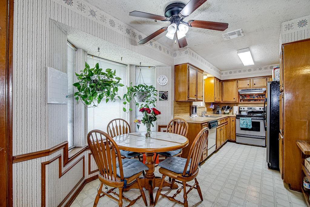 Charming 3-Bedroom, 2-Bathroom Home in Burleson ISD featuring a brand-new roof, new gutters, and a freshly repainted exterior. Inside, you’ll find a spacious living area right off the entry, leading to the kitchen and dining space. The kitchen and dining spaces are seamlessly connected, offering ample counter and cabinet storage along with plenty of room for meals and entertaining.