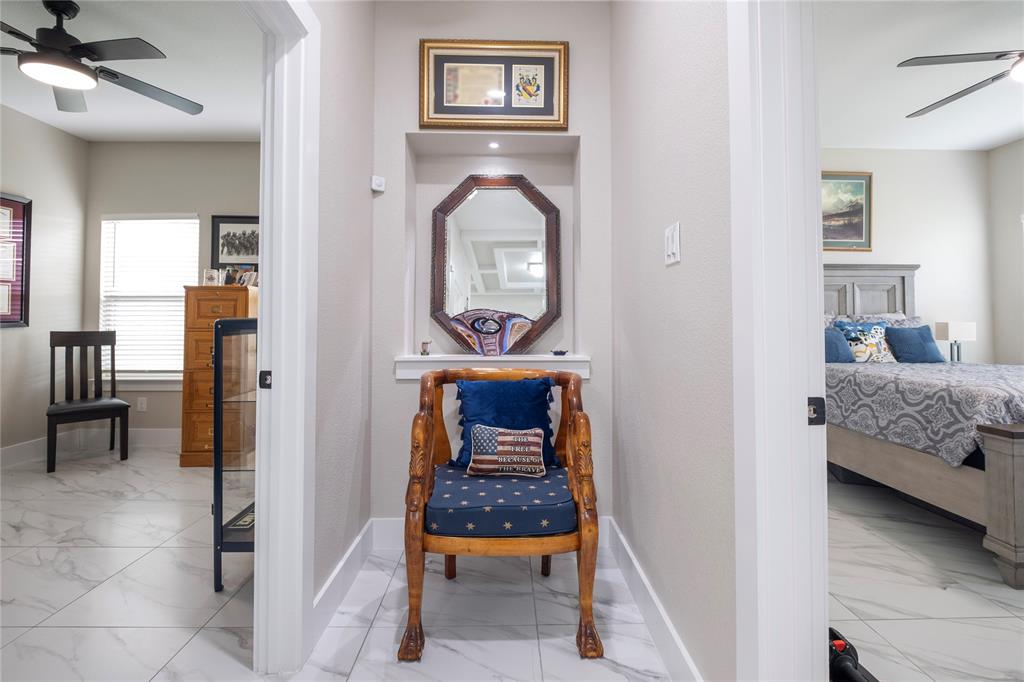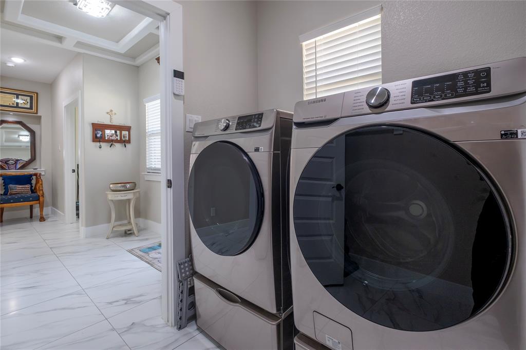 This stunning property offers two master suites, perfect for multi-generational living. The main master retreat features a custom ceiling design, a freestanding tub, walk-in shower, and spacious closet. A second master bedroom with a private bath sits on the opposite side of the home for added privacy.