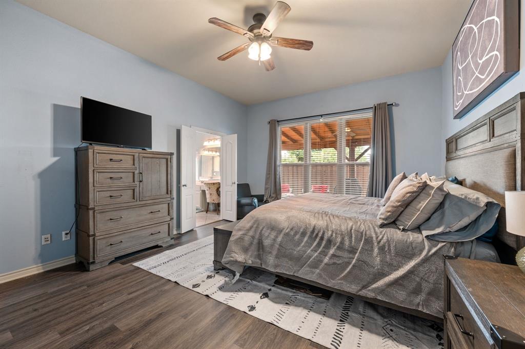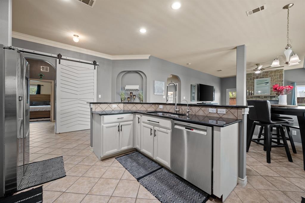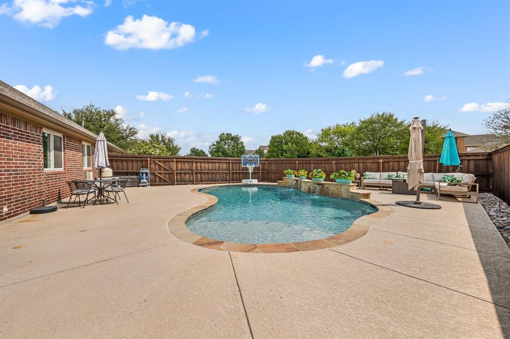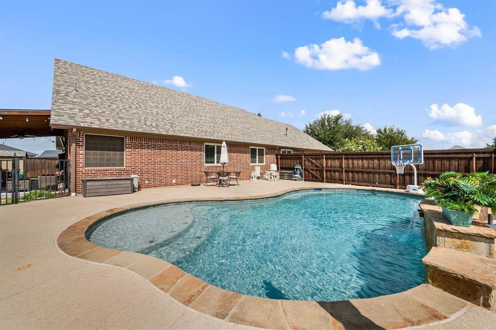 Beautifully updated home offering 3 bed, 2.5 bath, office, flex space, and formal dining located on a large corner lot with pool!! The open concept layout features a spacious kitchen with updated range, abundant prep space, walk-in pantry, and excellent storage throughout. The living area flows seamlessly to the backyard retreat. Backyard is complete with a massive covered patio, large side yard, and a sparkling play pool with tanning ledge, waterfalls, updated equipment, cool deck, and a safety fence for peace of mind. A freshly stained board-on-board privacy fence adds charm and privacy. Primary suite is thoughtfully situated away from secondary rooms and includes large walk in closets and functional bathroom, secondary bedrooms are split with a versatile flex space between them. Recent updates include new HVAC, Low-E windows, whole-home reverse osmosis and water filtration system, new flooring and fixtures, plus a new roof, as well as generator ready with safety switch installed. Side swing garage is also cooled, making it a great place for activities. Across from the home, enjoy serene green space views. Neighborhood offers pools, parks, fishing ponds, and trails for miles that conveniently connect to the Betsy Price community center for added lifestyle perks! Minutes from alliance shops& restaurants. Don’t miss this opportunity to own one of the best homes in Eagle-MT ISD!
