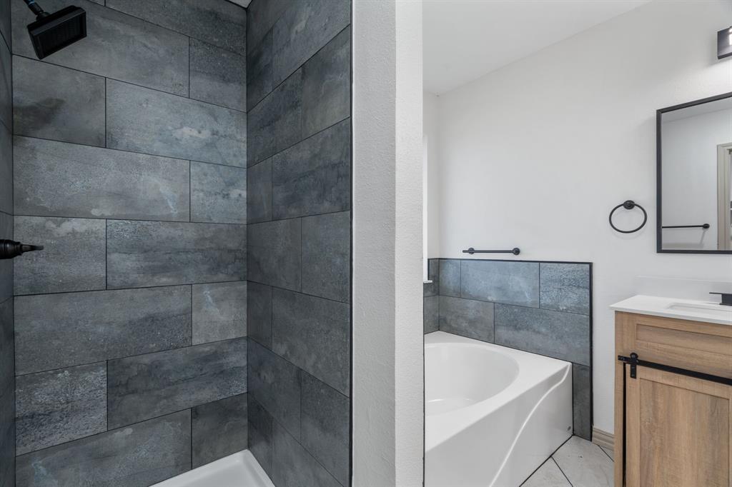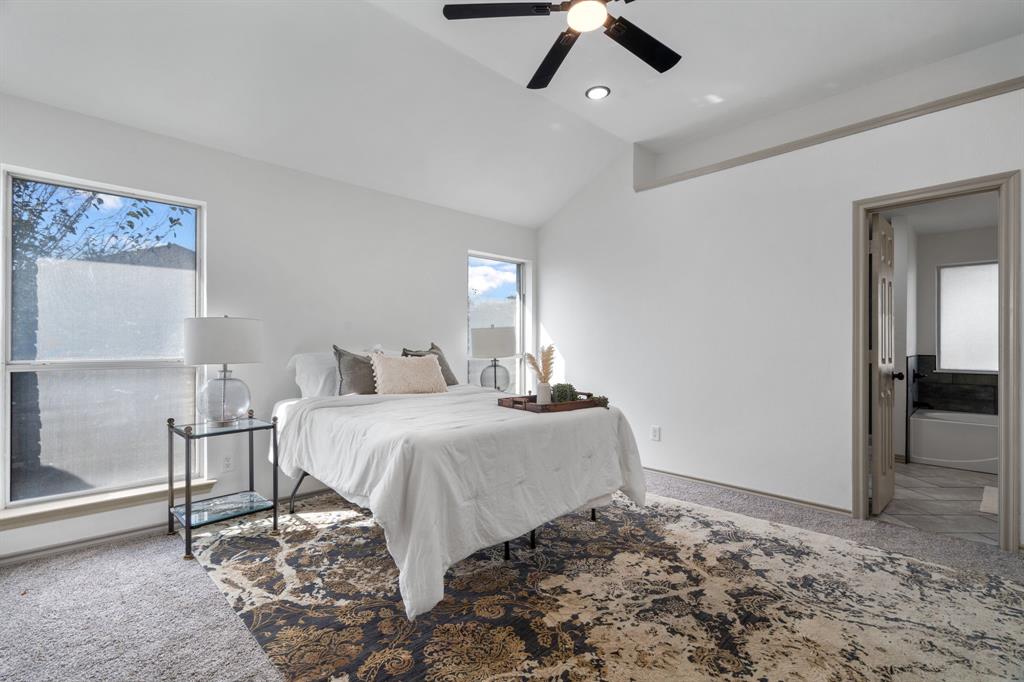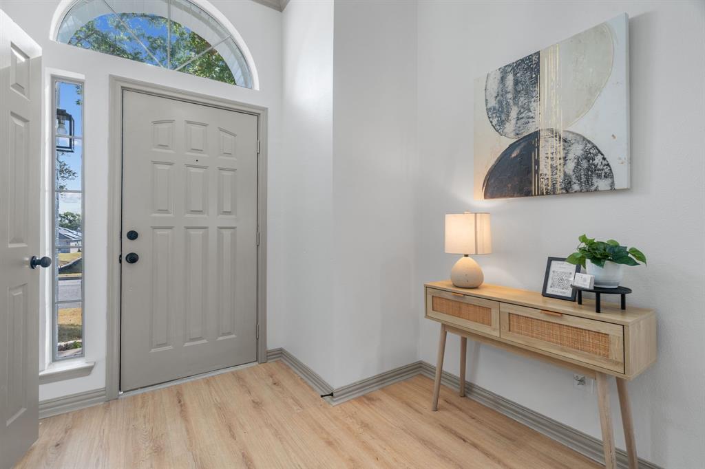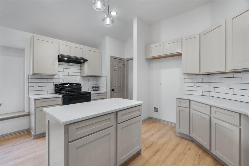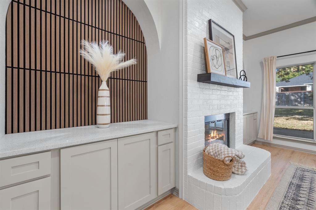 Welcome to your next home — a charming brick beauty with fresh updates inside and out! From the moment you arrive, the inviting curb appeal and mature shade tree set the tone for what’s inside. Step into the spacious living room where tall ceilings, wood-look floors, and natural light create an open, airy feel. The white brick fireplace, framed by custom built-ins with bold blue cabinetry, makes the perfect centerpiece.The kitchen is a true showstopper, featuring modern blue cabinets, quartz countertops, subway tile backsplash, and a large island that doubles as a prep space and gathering spot. Sleek black fixtures and pendant lighting give it a modern touch while keeping it warm and functional. The generous bedrooms provide comfort and privacy. The updated bathrooms and large walk-in closet offer style and convenience, making everyday living feel just a bit more luxurious. Outside, you’ll enjoy a private backyard with plenty of room for barbecues, play, or simply relaxing under the shade. The attached two-car garage provides secure parking and extra storage space.