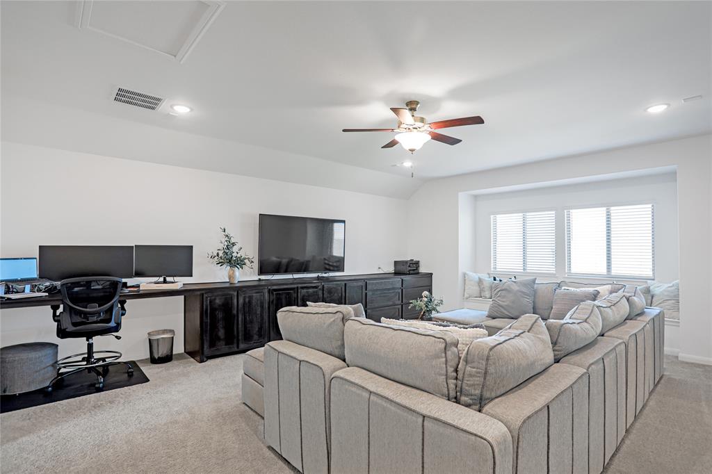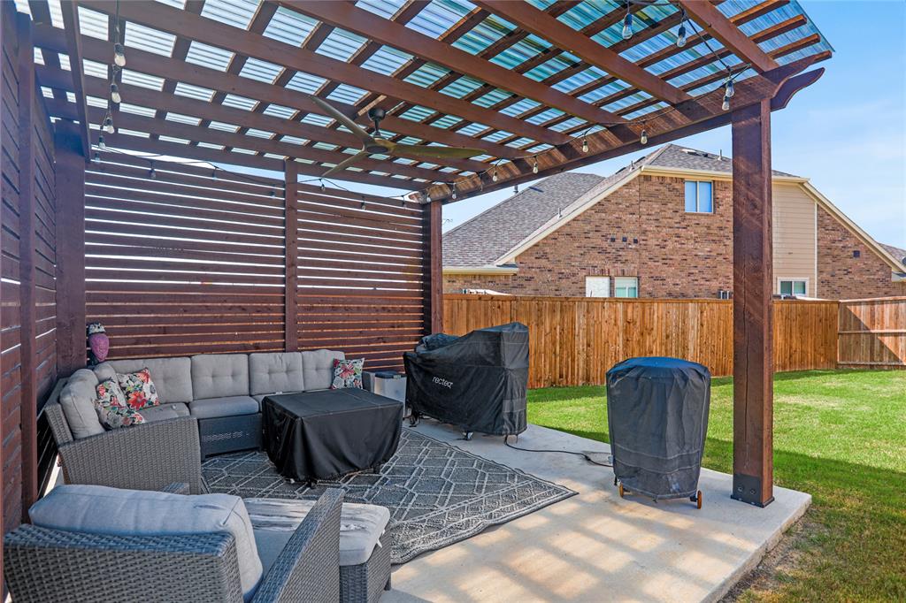 Additional highlights include a 3-car tandem garage, back porch also has Klipsch speakers, stamped concrete walkway in backyard leading to a custom-built 15x15 pergola that creates the perfect backyard retreat. The home is located near the end of a cul-de-sac for added privacy, yet is within walking distance of neighborhood amenities, schools, and green spaces.