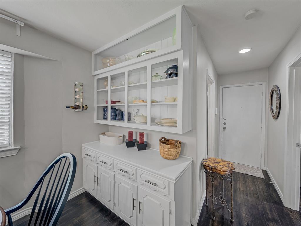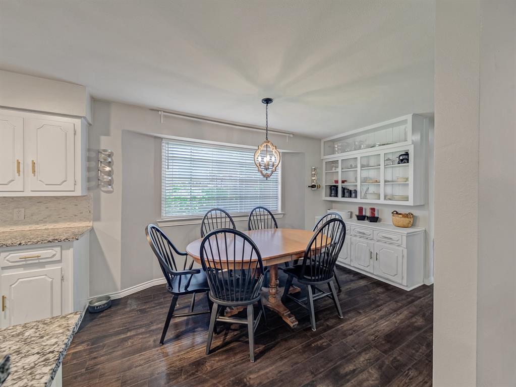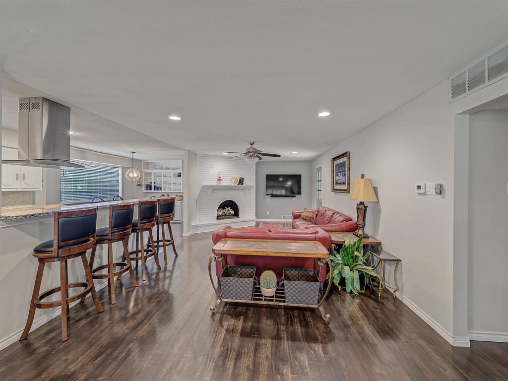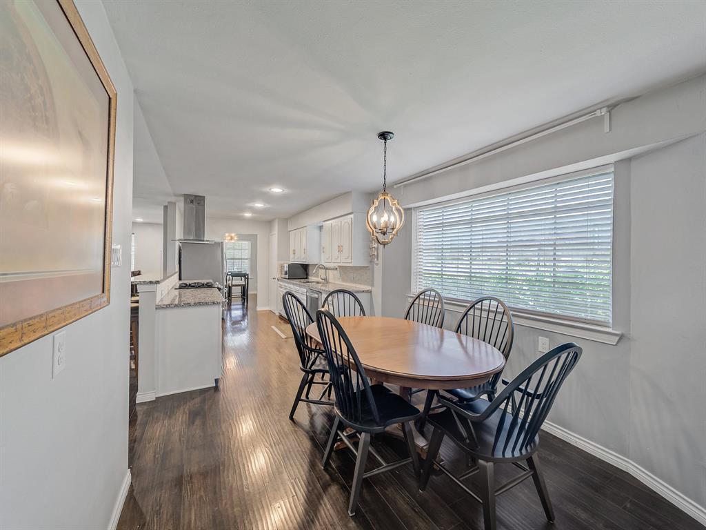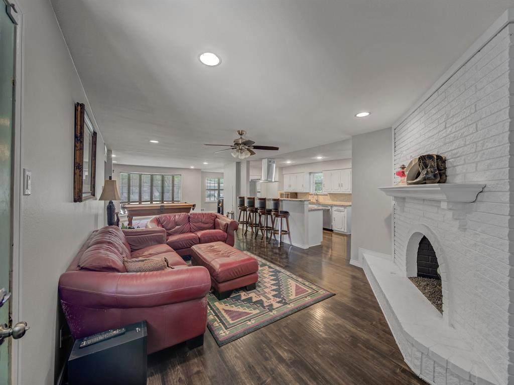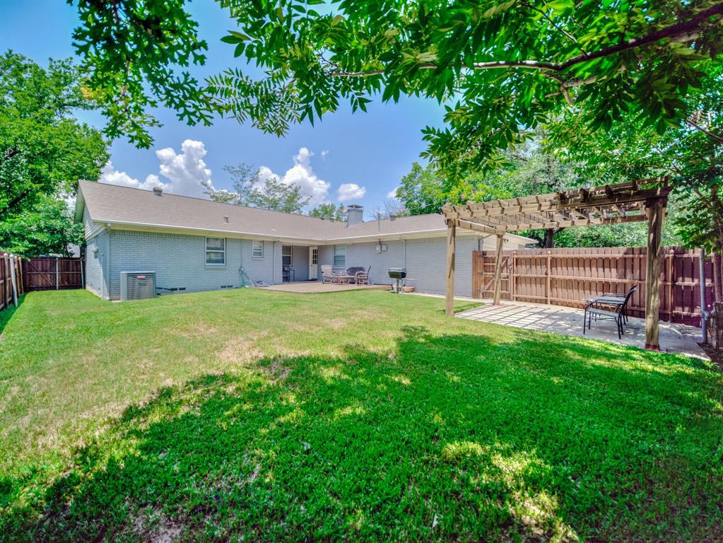 Located in sought-after Buckner Terrace, this one-story 3-bedroom, 2.1bath home offers timeless updates and thoughtful touches throughout. Step inside to an airy, open floor plan filled with natural light. Wood flooring flows through the main areas, complemented by upgraded LED lighting and stylish modern fixtures. The living area features a freshly painted white brick fireplace with gas logs, a classic arched firebox, and a clean-lined mantle—ready to be enjoyed year-round. The updated kitchen is both functional and elegant, offering granite countertops, a gas cooktop, stainless steel appliances, and a sleek vent hood with stainless and glass finishes. Crisp white cabinetry and a spacious bar area make it easy to entertain, while the adjoining breakfast nook includes custom built-ins for added charm and storage.The spacious primary suite has been beautifully remodeled with marble tile, a walk-in shower behind glass doors, and a separate soaking tub. Additional bedrooms are generously sized with wood flooring and flexible layouts to suit your needs. The home also includes two full bathrooms and one half bath, each with granite counters and updated fixtures. Step outside to a private backyard retreat featuring multiple sitting areas, a wooden deck, and a pergola—perfect for enjoying warm evenings or morning coffee in a peaceful setting. Bonus: No HOA and a two-car garage add to the ease of ownership in this well-loved home. Transferable Home warranty to the buyer through 01.08.2027 with Choice Home Warranty!