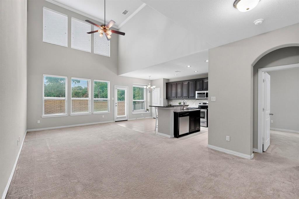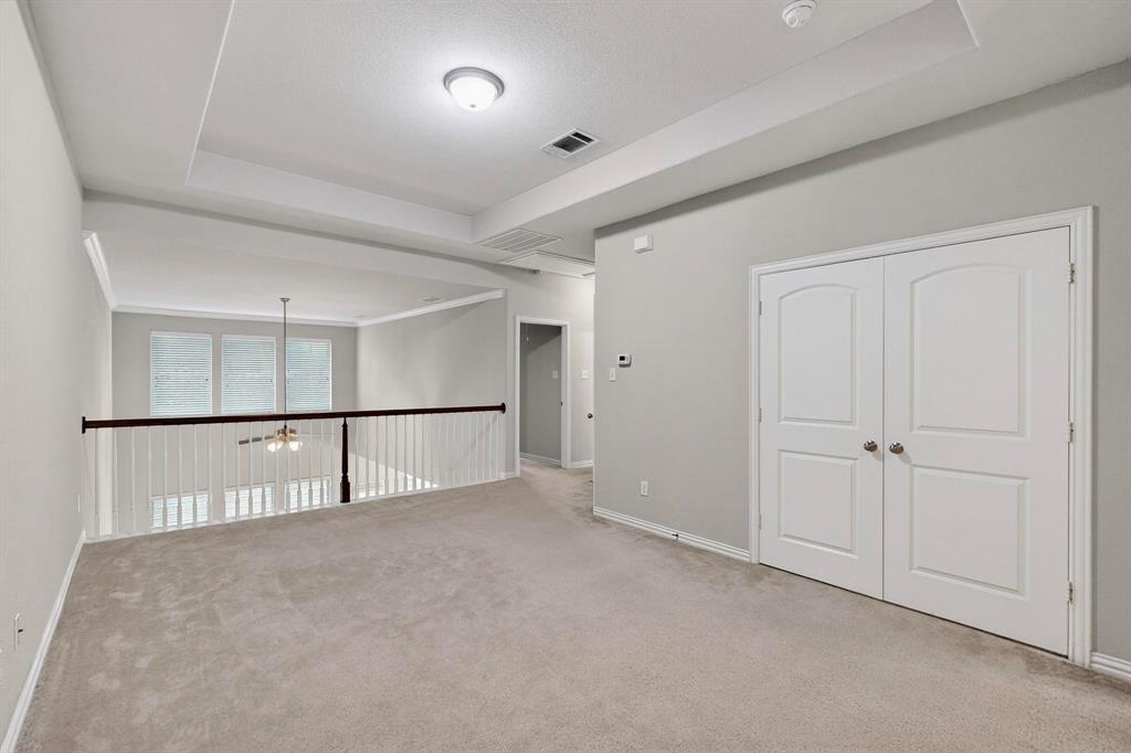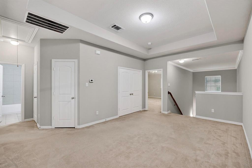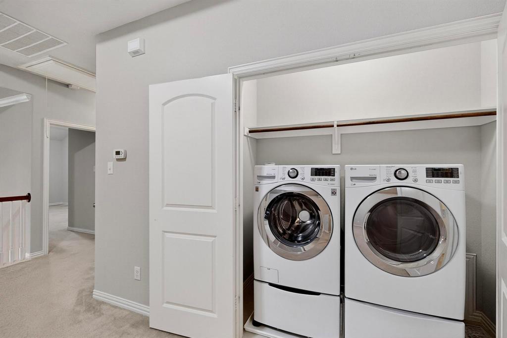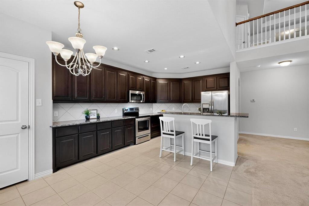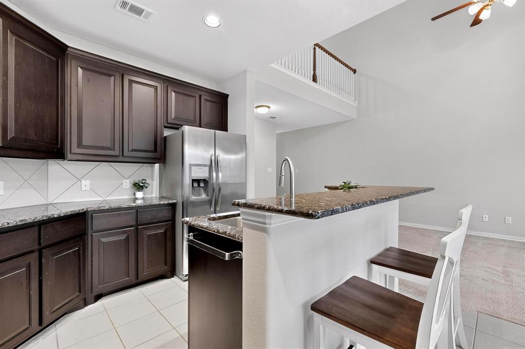 Pride of ownership shines in this beautifully maintained 3-bed, 3-bath, 2-car garage townhome located in the desirable Las Brisas subdivision, just minutes from DFW Airport, Las Colinas and major employers. This home offers a bright, open layout with vaulted ceilings, abundant natural light, spacious living and dining areas, and a kitchen featuring 42-inch cabinetry, stainless steel appliances, and ample counter space. The flexible floor plan includes one downstairs bedroom, perfect for guests or a home office. Upstairs you'll find a generous game room and a spacious primary suite with an ensuite bath featuring a corner tub, dual sinks, separate shower, and a large walk-in closet, along with a secondary bedroom and full bath. Energy efficient features include R-13 wall and R-38 ceiling insulation, Low-E double-pane windows and new a AC coil. Step outside and enjoy the private backyard with a patio and grass area. Refrigerator, washer, and dryer convey with the home.