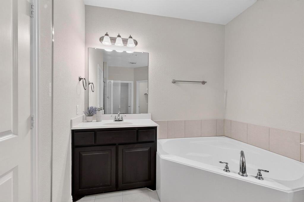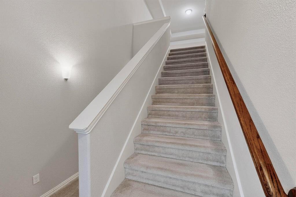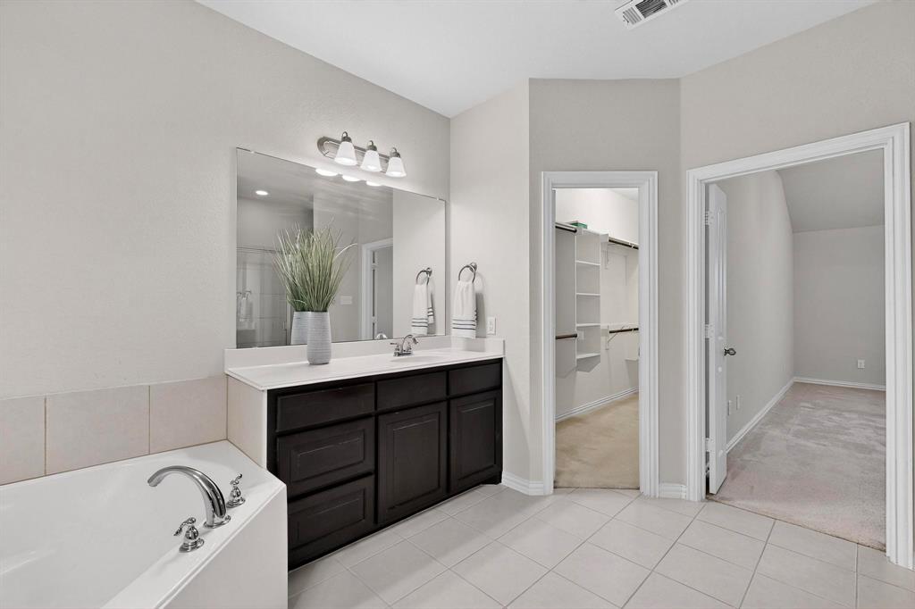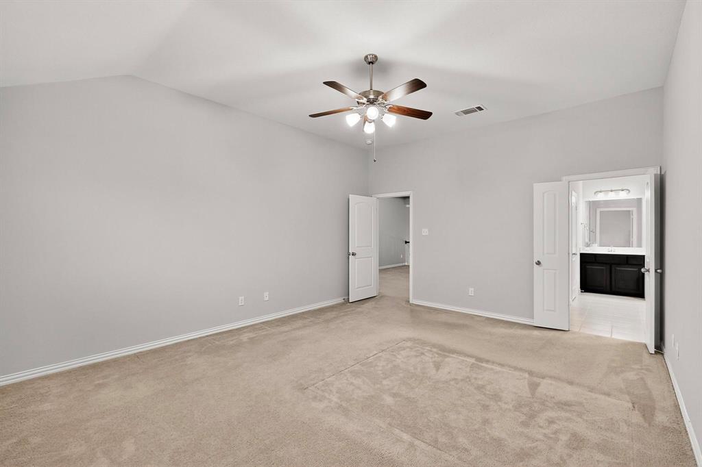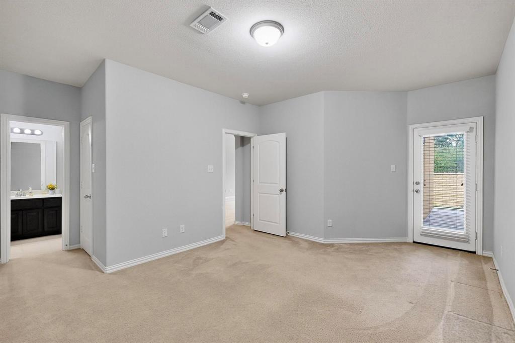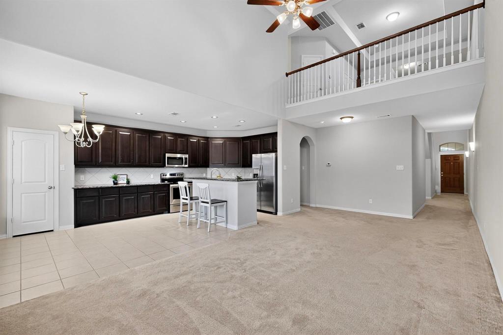Pride of ownership shines in this beautifully maintained 3-bed, 3-bath, 2-car garage townhome located in the desirable Las Brisas subdivision, just minutes from DFW Airport, Las Colinas and major employers. This home offers a bright, open layout with vaulted ceilings, abundant natural light, spacious living and dining areas, and a kitchen featuring 42-inch cabinetry, stainless steel appliances, and ample counter space. The flexible floor plan includes one downstairs bedroom, perfect for guests or a home office. Upstairs you'll find a generous game room and a spacious primary suite with an ensuite bath featuring a corner tub, dual sinks, separate shower, and a large walk-in closet, along with a secondary bedroom and full bath. Energy efficient features include R-13 wall and R-38 ceiling insulation, Low-E double-pane windows and new a AC coil. Step outside and enjoy the private backyard with a patio and grass area. Refrigerator, washer, and dryer convey with the home.