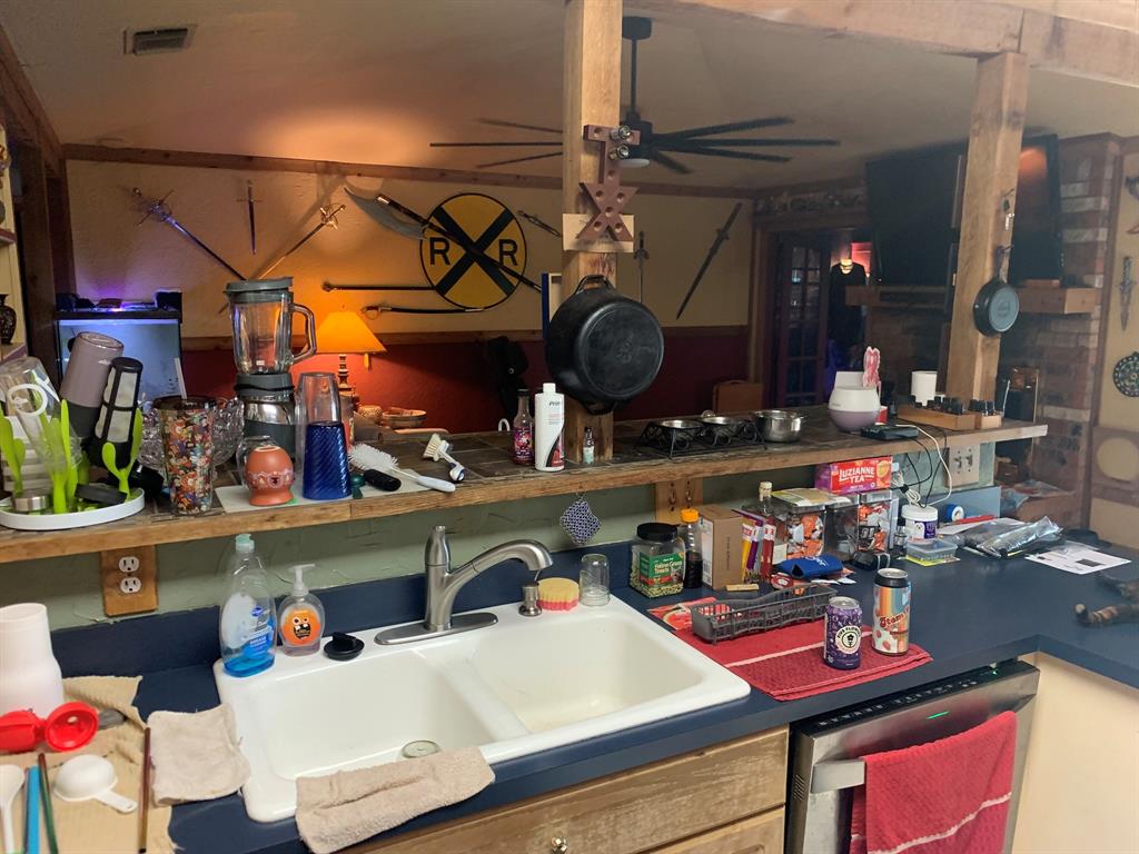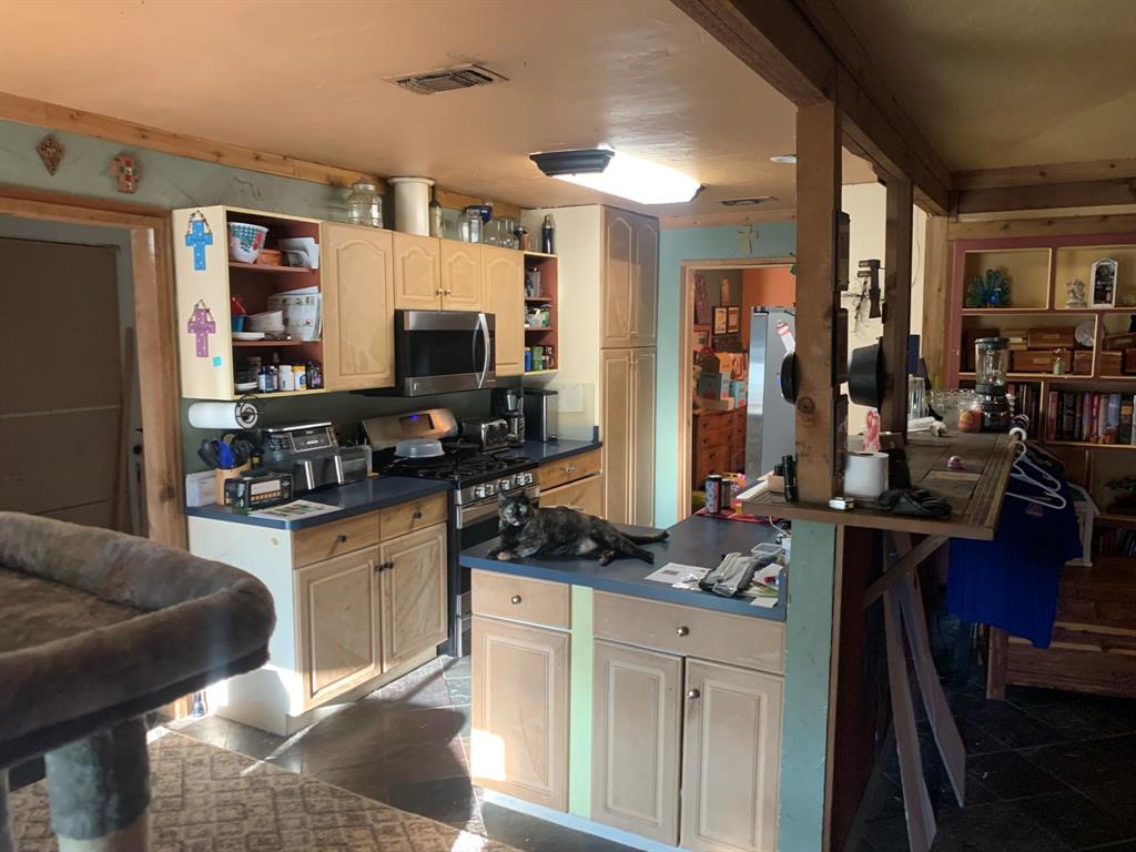 Step inside to find a spacious living area with plenty of natural light, highlighted by custom wood accents and thoughtful details throughout. The kitchen opens to the living space, making it perfect for entertaining, and features ample counter space, stainless steel appliances, and rustic finishes.
