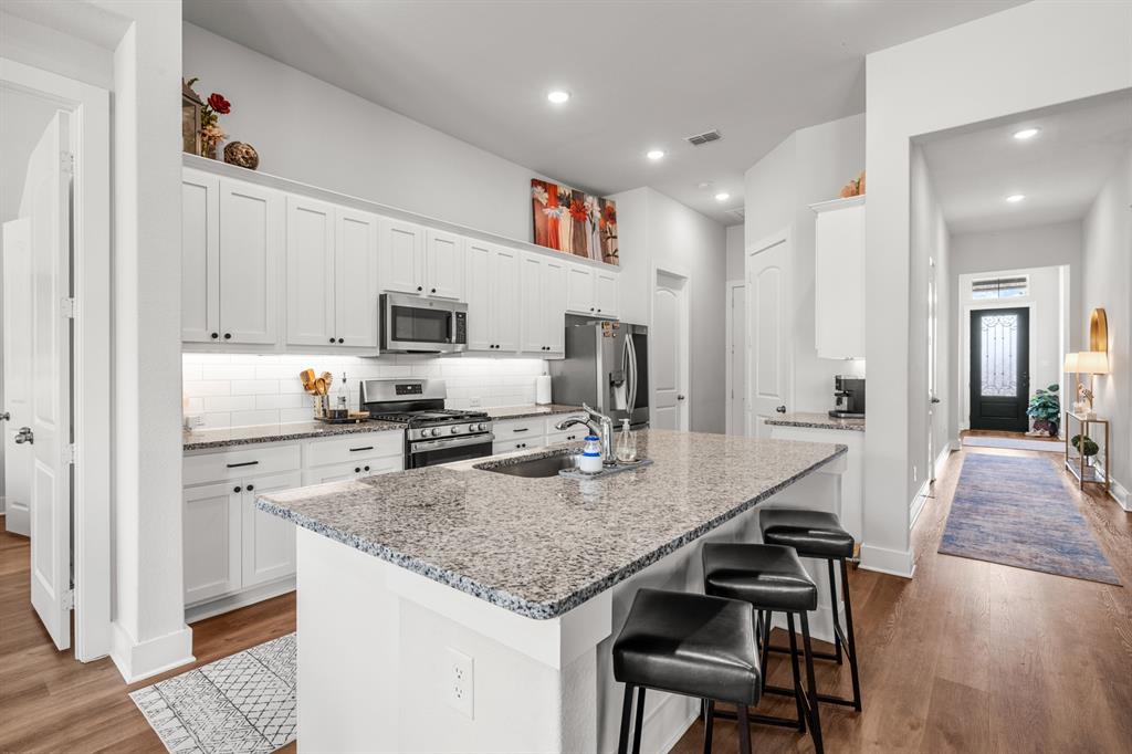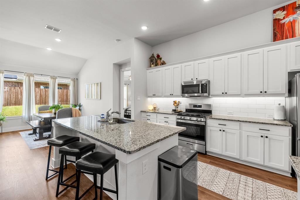 The kitchen is thoughtfully updated with granite countertops and ample cabinetry, making it a perfect space for everyday meals or hosting family gatherings.