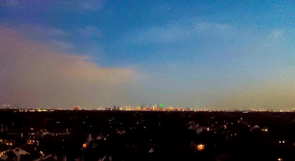 Welcome to the Athena, a full-service high-rise condominium and distinguished luxury landmark. Unit #918 offers a sweeping 180-degree south-facing view of Park Cities with the Downtown Dallas Skyline as a backdrop. This custom unit features two spacious bedrooms, two and a half bathrooms, two expansive living areas complete with a classic bar, two dining spaces and a laundry area. Extensive custom built-ins, cabinetry and closets provide exceptional storage throughout. The building is conveniently located near retail centers, restaurants, Park Cities, and downtown Dallas. The Athena maintains a smoke-free environment and does not permit pets. HOA dues cover comprehensive utilities, plus internet and WiFi access throughout the property, cable television, security, concierge staff, grand lobby, assigned garage parking and storage unit, gym facilities, a large indoor heated saltwater pool, entertainment rooms, and additional amenities. Please note that estimated taxes are shown without exemptions. This prized unit offers tranquil living and impressive views, particularly at sunset...recent sunset photos taken by owner from 918's living room.