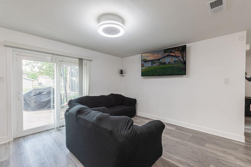 Wonderfully kept home with lots of updates, ready for new owners! Blocks to elementary, middle schools, and Bradford Recreation Center and Park. Located in the award winning GISD with choice of school. This would be a nice first time home to start a family or needing to downsize. This home offers an open layout connecting the living, dining, and kitchen areas. The kitchen features updated appliances and everything stays, including fridge, washer and dryer. Garage has been converted and holds the laundry room, but is still currently being used as storage. Ready to be made into an extra bedroom, family room, or game room. With major upgrades for peace of mind already done for you. roof deck replaced with radiant barrier roof sheeting panels, insulation, and roof shingles replaced with 35 yr in 2020. siding replaced with fiber cement hardie trim, home security installed, Christmas lights installed multiple light settings, water heater 2022, and multiple others. Won't last long, come see it.