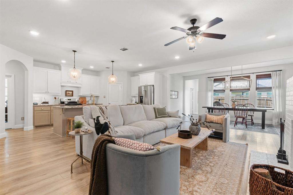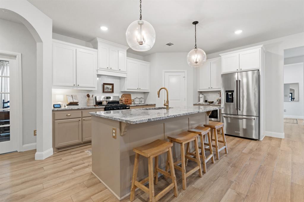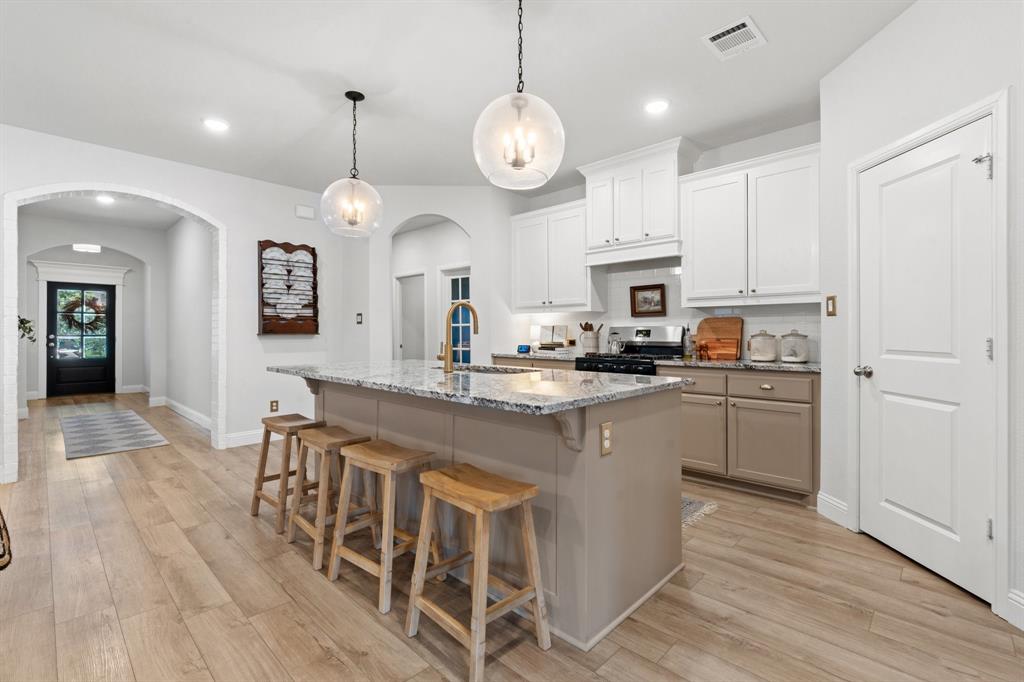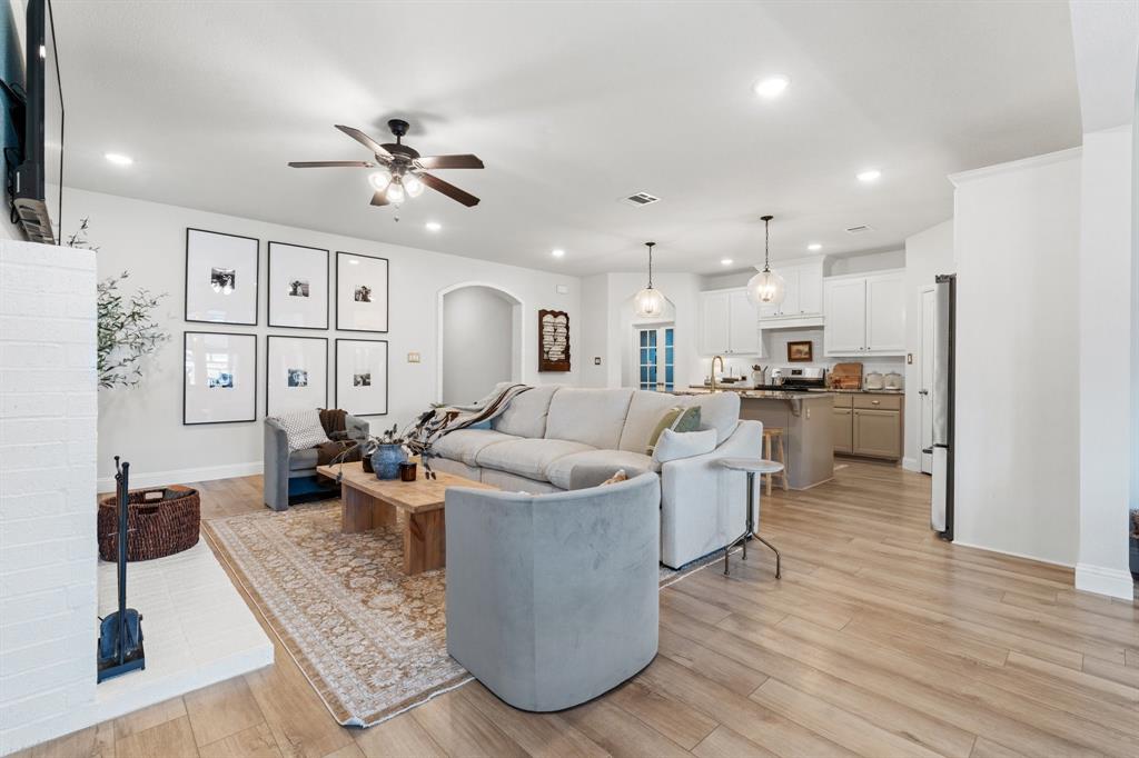 Built in 2022, this breathtaking 3-bedroom, 2-bathroom home with a dedicated office showcases timeless design, modern elegance, and countless high-end upgrades. From the moment you step inside, you’ll notice the thoughtful details that set this home apart from builder-grade—bricked archways, oversized windows, custom window coverings, and a striking fireplace that anchors the open-concept living space. The kitchen is truly a showstopper, complete with upgraded cabinetry, sleek gold hardware, and an expansive island—perfect for both entertaining and everyday living. The oversized dining area flows seamlessly into the living room, filling the space with natural light for that airy, classic feel. The private primary suite is a luxurious retreat featuring double vanities, a soaking tub, a walk-in shower, and a spacious closet. Outside, enjoy evenings on the covered patio while overlooking your backyard. Located in a highly sought-after neighborhood within Godley ISD and just minutes from the toll road, this home combines style, comfort, and convenience. If you’re looking for a home that is truly unique, filled with upgrades, and designed with timeless elegance—this one is a must-see.
