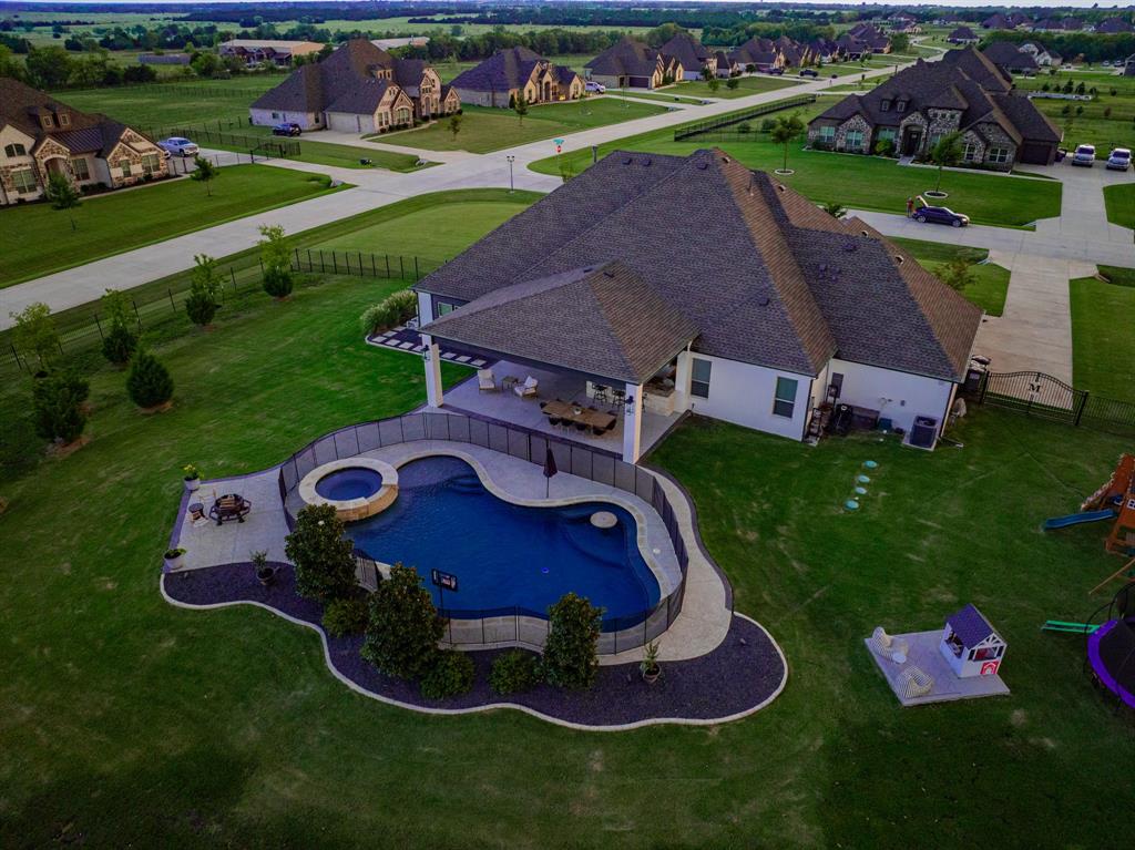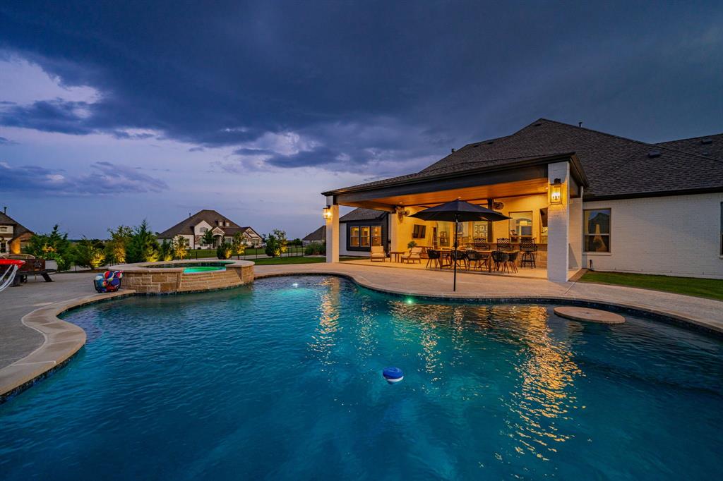 Luxury Living on 1.5 Acres in Rockwall! This stunning single-story residence offers over 3,000 sq. ft. of elegant living space on a beautiful corner lot spanning 1.5 acres. Designed for both entertaining and everyday comfort, with a custom patio, full outdoor kitchen, heated swimming pool, hot tub and lush landscaping. Inside, the gourmet kitchen is a chef’s dream featuring double ovens, custom cabinetry, undermount cabinet lighting and upper cabinet lighting, large walk in pantry and expansive counter space. The open-concept layout flows seamlessly into the spacious living areas, while a game room, private study, and formal dining room provide versatile spaces for work, play, and hosting. With 4 bedrooms, 3.5 baths, Study, Game Room, Formal Dining and a 3-car garage, this home is thoughtfully designed to balance privacy and convenience. The primary suite offers a luxurious retreat, while the additional bedrooms provide plenty of space for family or guests. Located in highly acclaimed Rockwall-Heath schools within Rockwall County, this property benefits from a low tax rate, NO MUD tax—a rare combination of luxury and value. Pool has a custom safety fence as shown in one of the pictures, in ground landscape surround sound speakers, up lighting at trees, tankless hot water heater, rounded corners, crown molding, custom built in at game room and more! Whether relaxing poolside, entertaining in the outdoor kitchen and living area or enjoying the quiet beauty of your own private acreage, this property truly has it all. OPEN HOUSE SEP 7th SUNDAY 3:00-5:00PM Football games will be on the patio to enjoy while you tour!