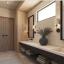 A serene primary suite featuring an above-counter travertine sink and spa-like layout
