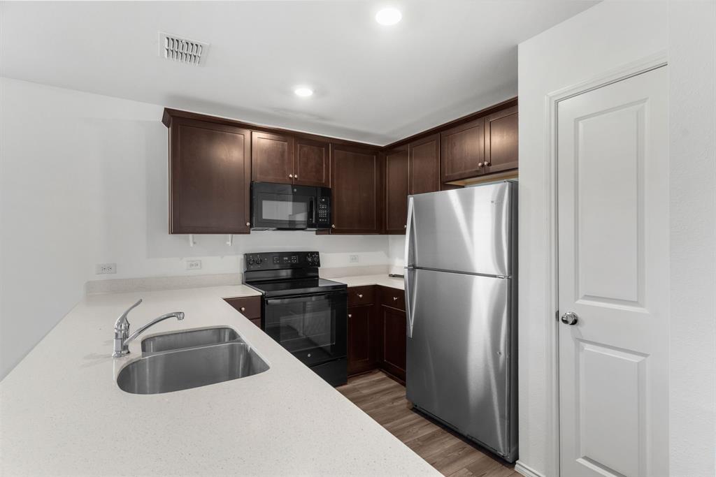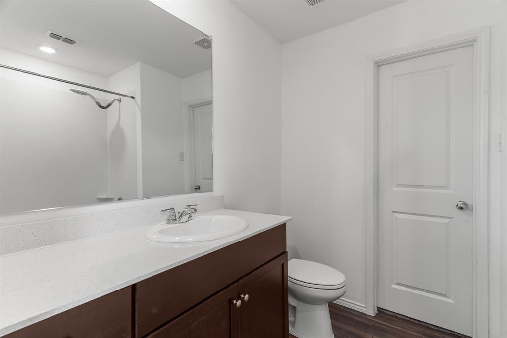 Charming 3-bedroom, 2-bathroom home on a desirable corner lot in the master-planned Bridgewater Community! Just minutes from Lake Lavon, this vibrant community offers resort-style amenities including a sparkling pool, fitness center, sand volleyball court, basketball courts, sport court with mini golf, dog park, fishing lake, scenic trails, and more. Inside, this move-in ready home shines with fresh paint and an open, inviting floor plan. Durable vinyl flooring flows seamlessly through the main living areas, creating a cohesive look. The kitchen is a showstopper with sleek quartz countertops, sleek appliances, and a layout that opens effortlessly to the dining and living spaces, perfect for entertaining! The private primary suite features a spa-like ensuite bath with an oversized vanity and a spacious walk-in closet. Two secondary bedrooms are thoughtfully split at the front of the home, offering flexibility for guests, family, or a home office. A large backyard completes the package, providing plenty of space to relax or play.