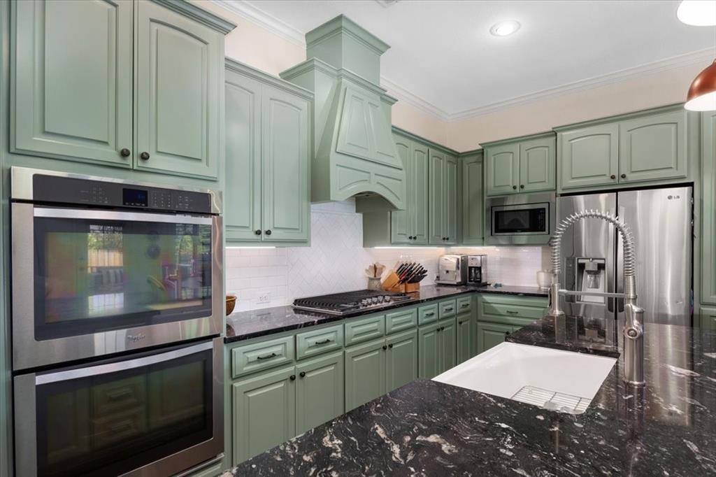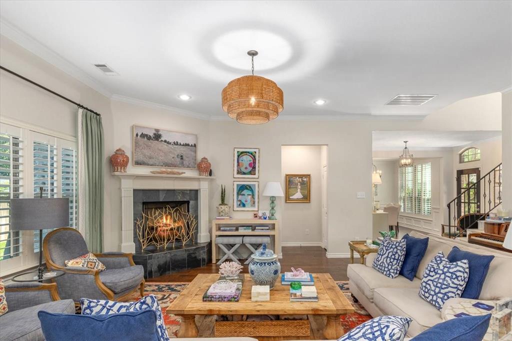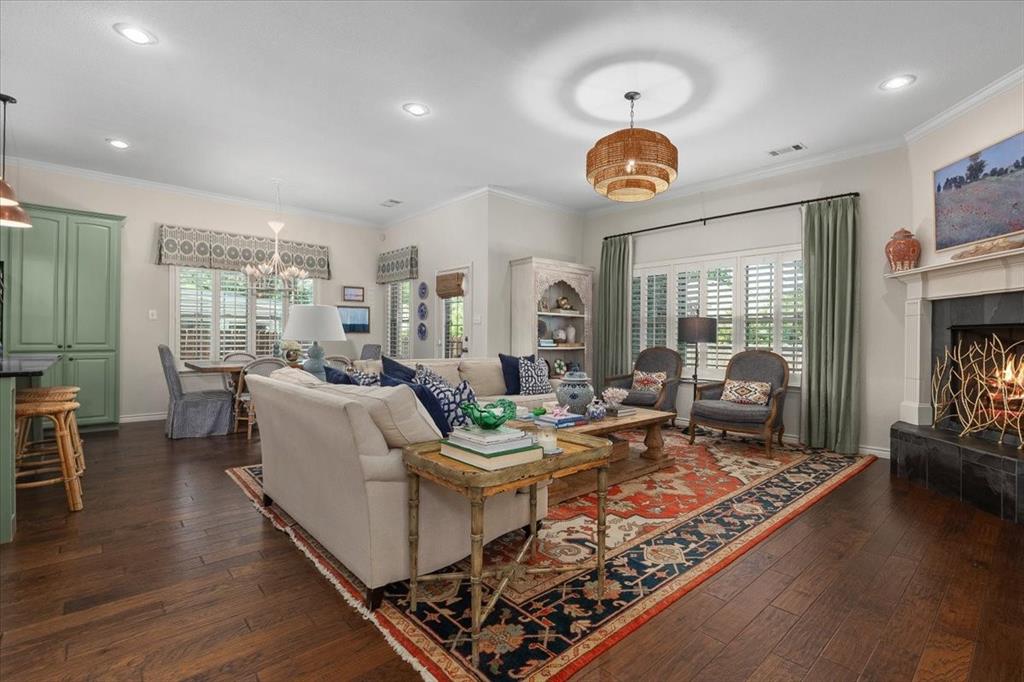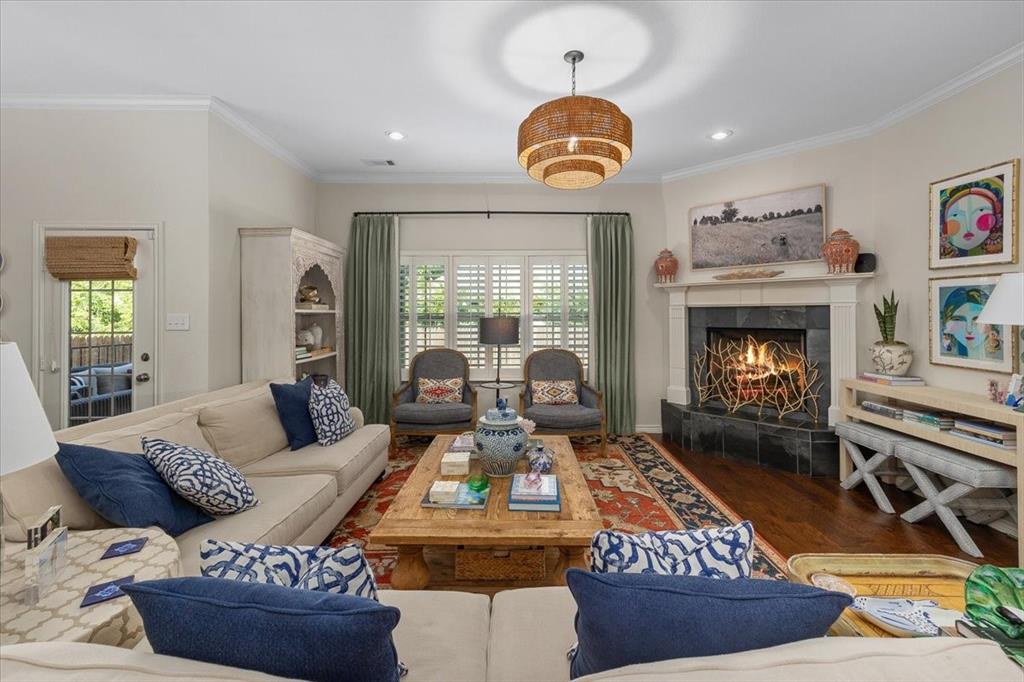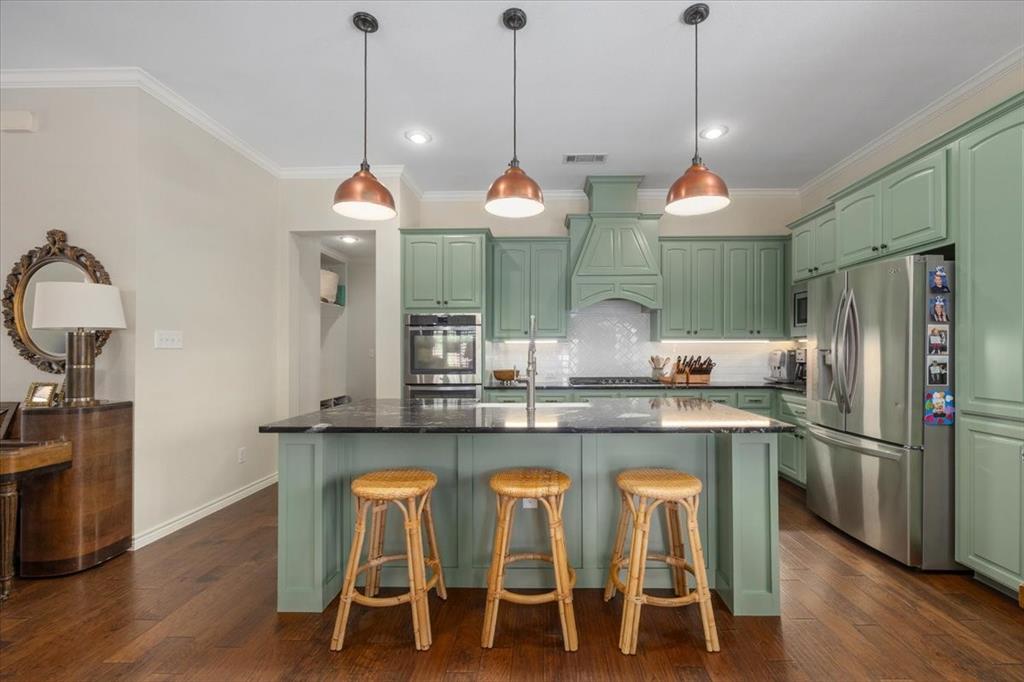 Beautifully built in 2015, this Crestwood home combines timeless design with thoughtful upgrades. The main level features hardwood floors, plantation shutters, and an open floorplan anchored by a stylish kitchen with green custom cabinetry, black granite counters, double ovens, and a large island with copper pendant lighting. A light-filled breakfast nook and spacious family room flow seamlessly to the covered patio with fireplace and backyard putting green.The first floor includes a dedicated office with built-in cabinetry, a formal dining room, and a serene primary suite with a tray ceiling, spa-like bath, dual vanities, soaking tub, walk-in shower, and generous closet. Upstairs offers a large game room, three additional bedrooms, and two full baths. Other highlights include wood blinds upstairs, designer wallpaper accents, abundant storage, and a landscaped yard with mature trees. Conveniently located in the heart of Fort Worth, this home blends character, comfort, and convenience in one of Fort Worth’s most sought-after neighborhoods.