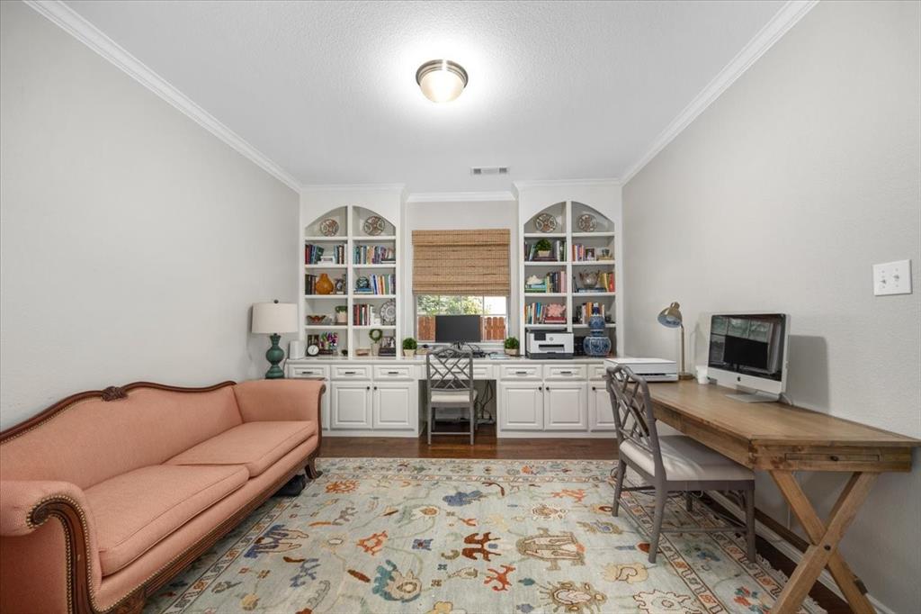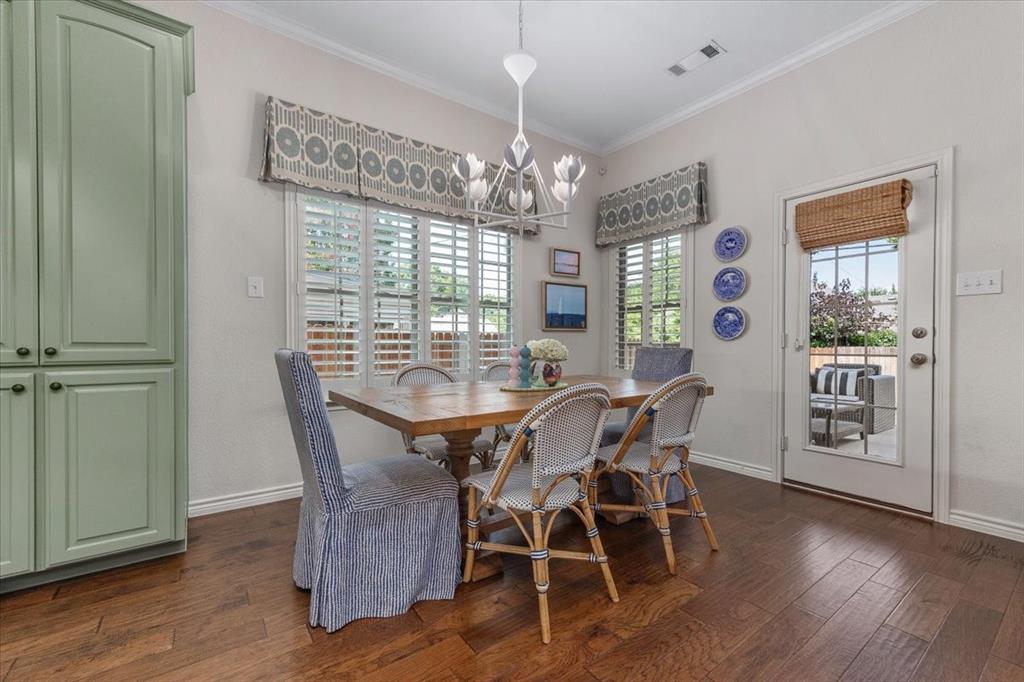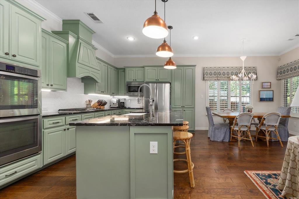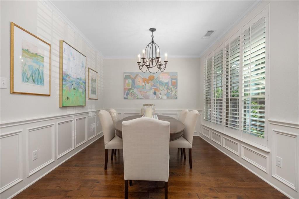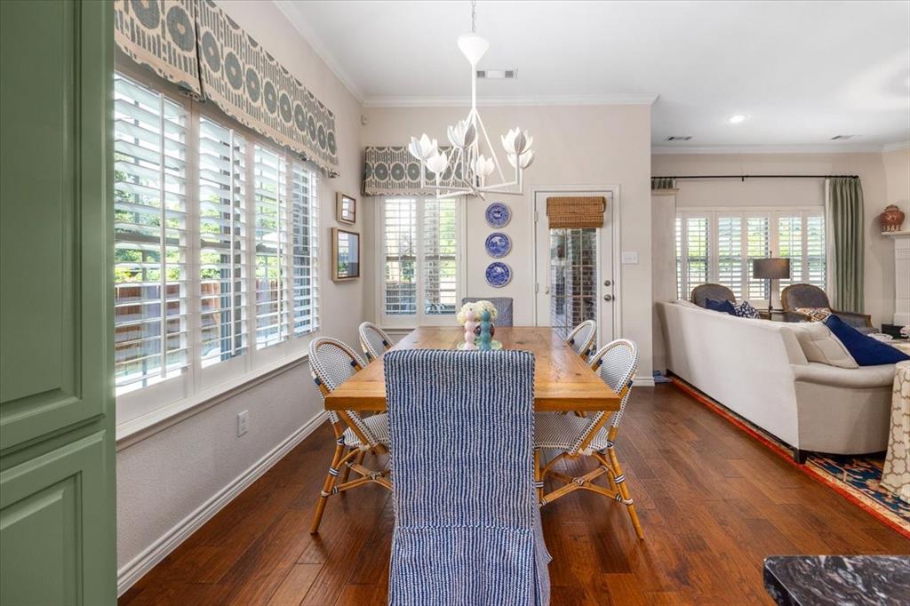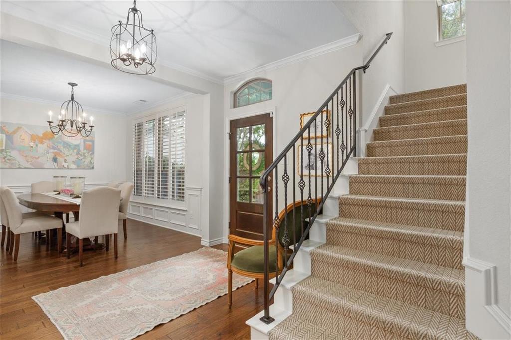 Beautifully built in 2015, this Crestwood home combines timeless design with thoughtful upgrades. The main level features hardwood floors, plantation shutters, and an open floorplan anchored by a stylish kitchen with green custom cabinetry, black granite counters, double ovens, and a large island with copper pendant lighting. A light-filled breakfast nook and spacious family room flow seamlessly to the covered patio with fireplace and backyard putting green.The first floor includes a dedicated office with built-in cabinetry, a formal dining room, and a serene primary suite with a tray ceiling, spa-like bath, dual vanities, soaking tub, walk-in shower, and generous closet. Upstairs offers a large game room, three additional bedrooms, and two full baths. Other highlights include wood blinds upstairs, designer wallpaper accents, abundant storage, and a landscaped yard with mature trees. Conveniently located in the heart of Fort Worth, this home blends character, comfort, and convenience in one of Fort Worth’s most sought-after neighborhoods.
