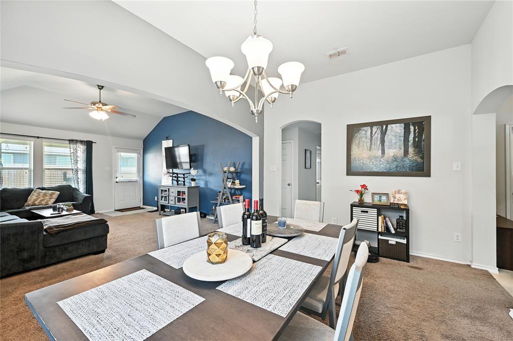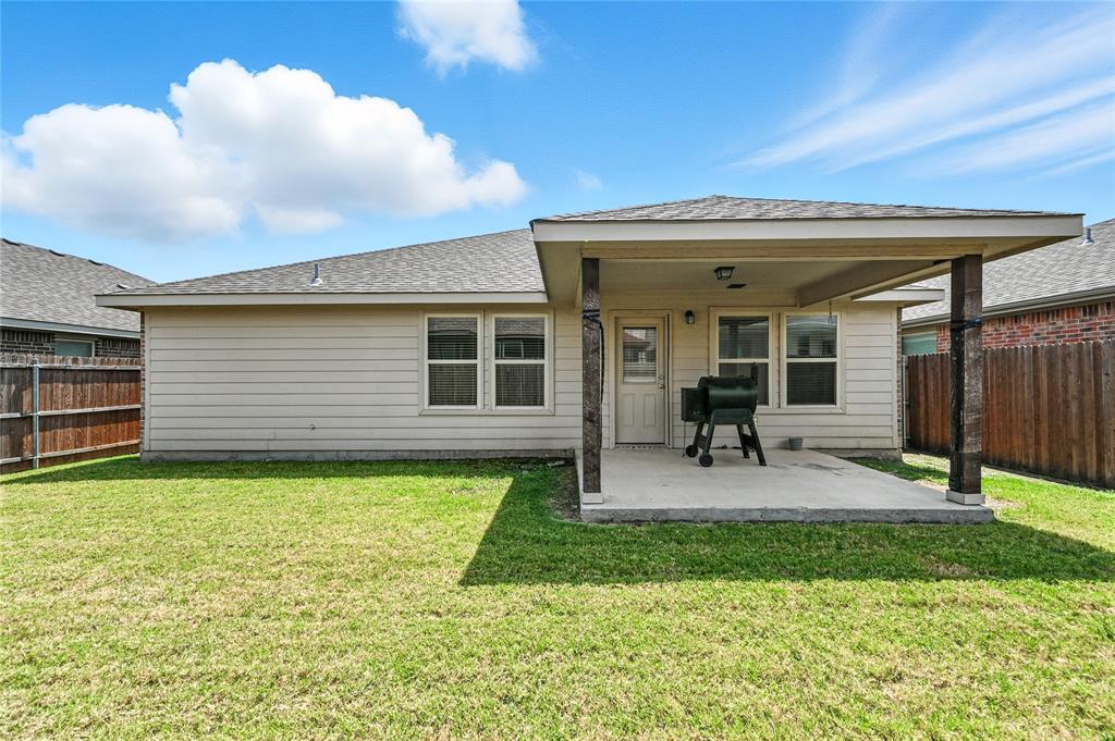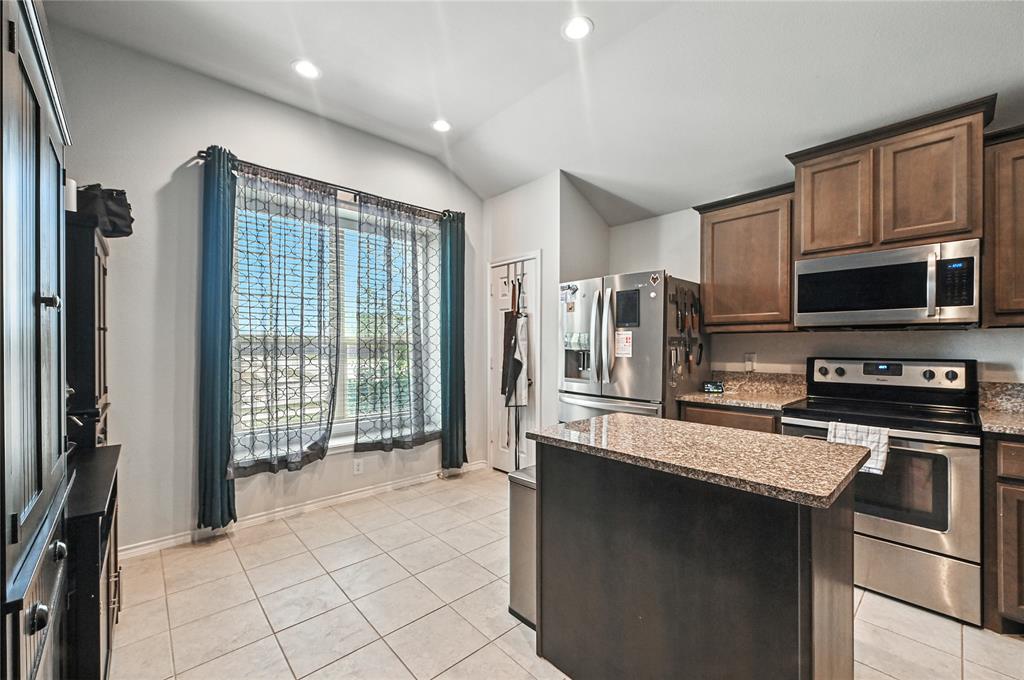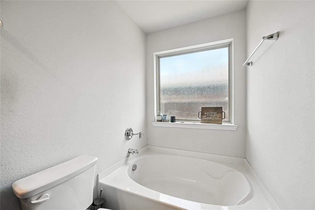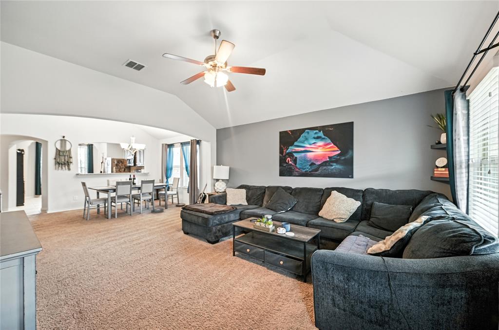 As soon as you pull up, the first thing you notice is the little greenbelt right across the street, a nice spot for kids to run around or to take the dog out. Walking inside, the kitchen immediately grabs your attention at the front of the home. It’s bright, open, and has plenty of room to cook and gather. You can sit down for a casual meal in the eat-in area or enjoy dinner in the dining room just outside the kitchen. From the kitchen, you can look straight into the living room, which is large enough to fit a big sectional, perfect for movie nights or hosting friends. The layout feels connected, but still gives each space its own purpose. The oversized primary suite is a perfect getaway with a soaking tub and separate shower. The two secondary bedrooms are just right for kids, guests, or even a home office. Step out back, and the yard is such a manageable size, enough room to enjoy without spending your whole weekend doing yard work. The patio is a great spot for grilling or relaxing at the end of the day. This home is easy to live in and easy to love.