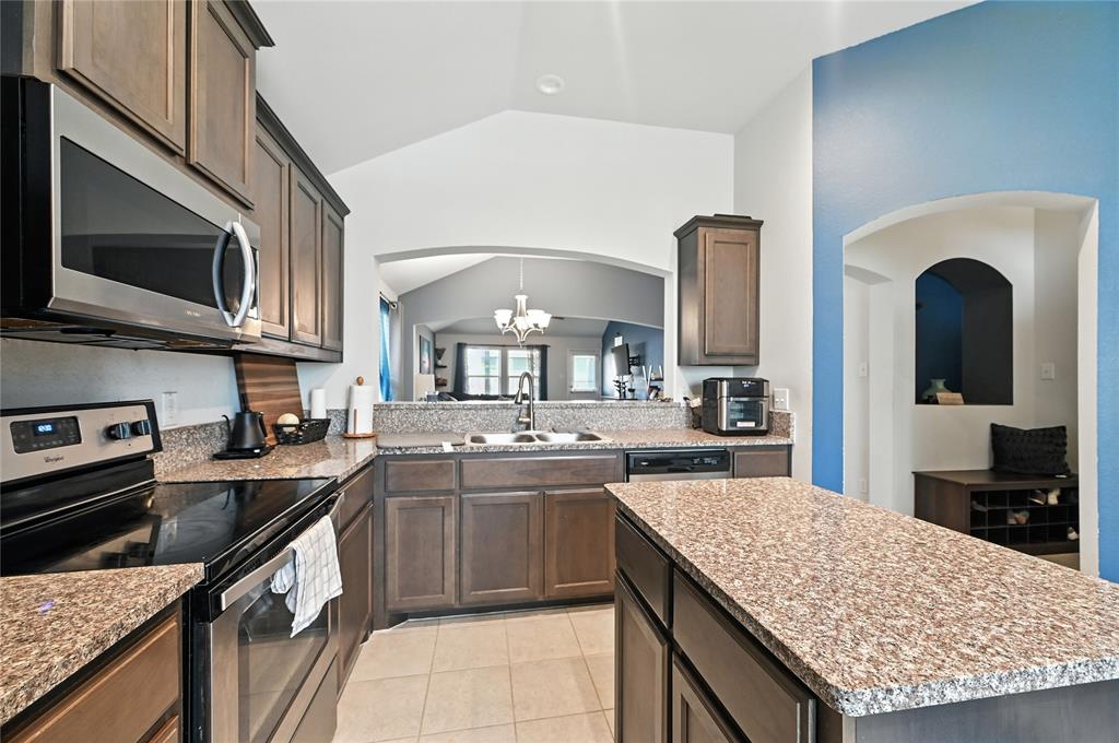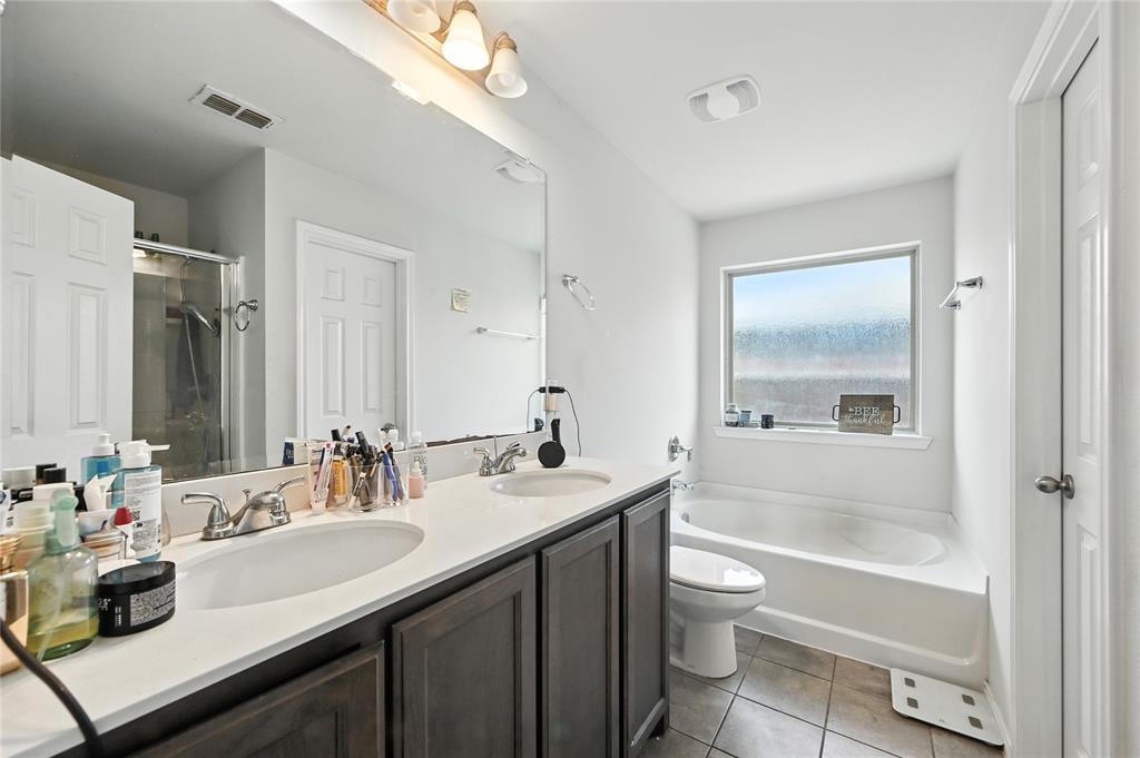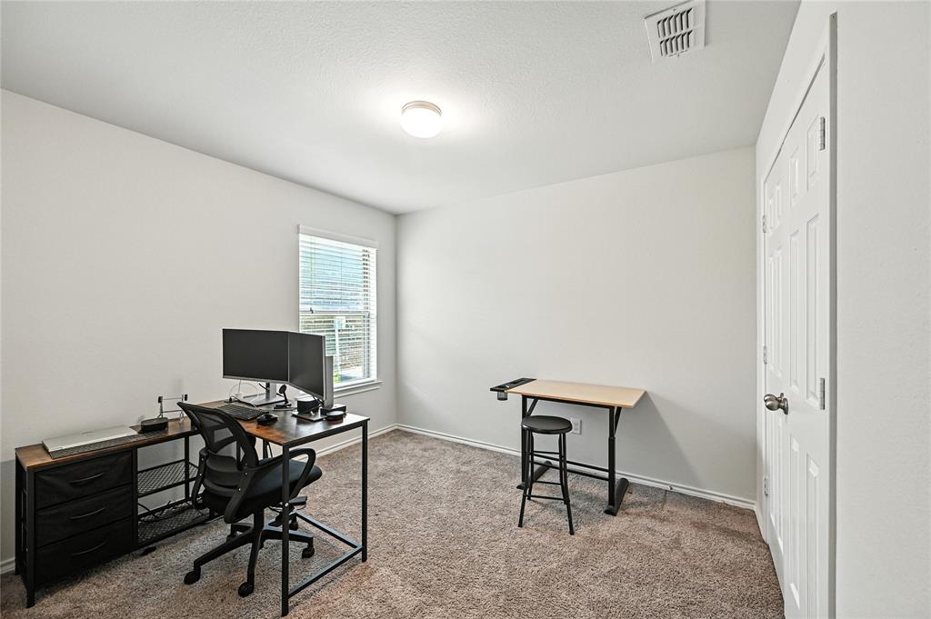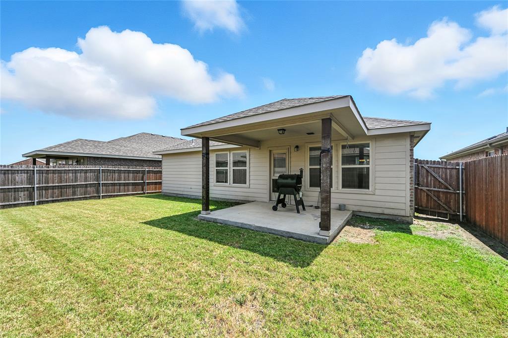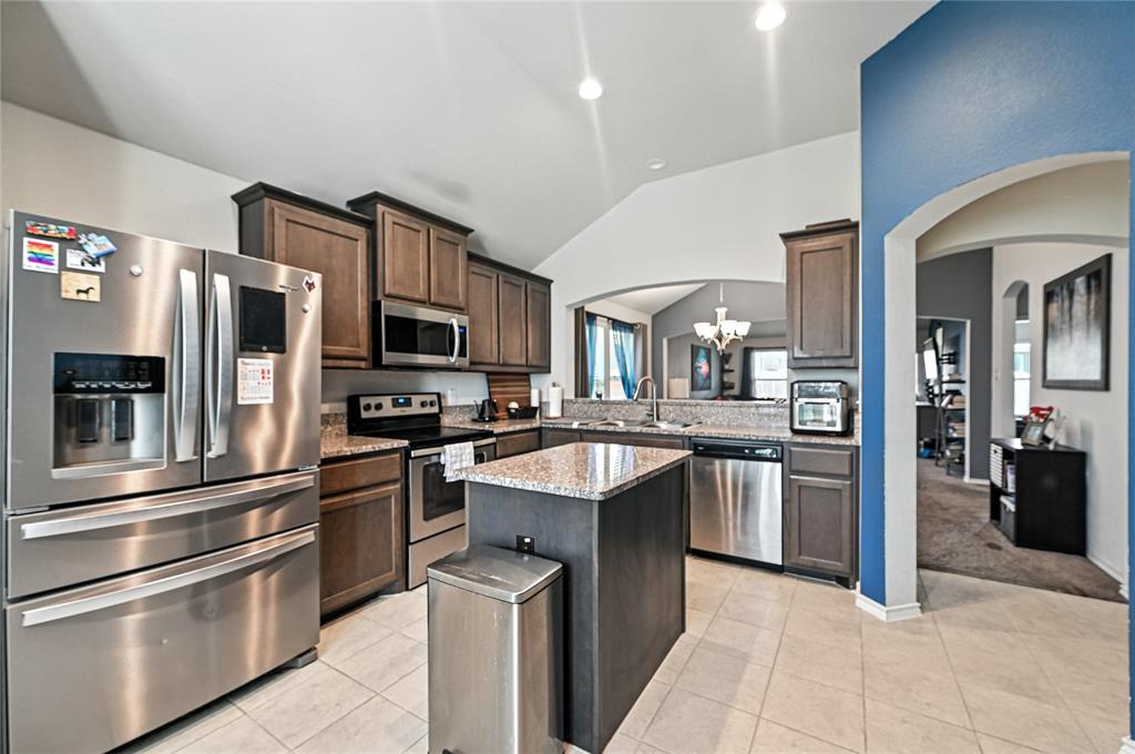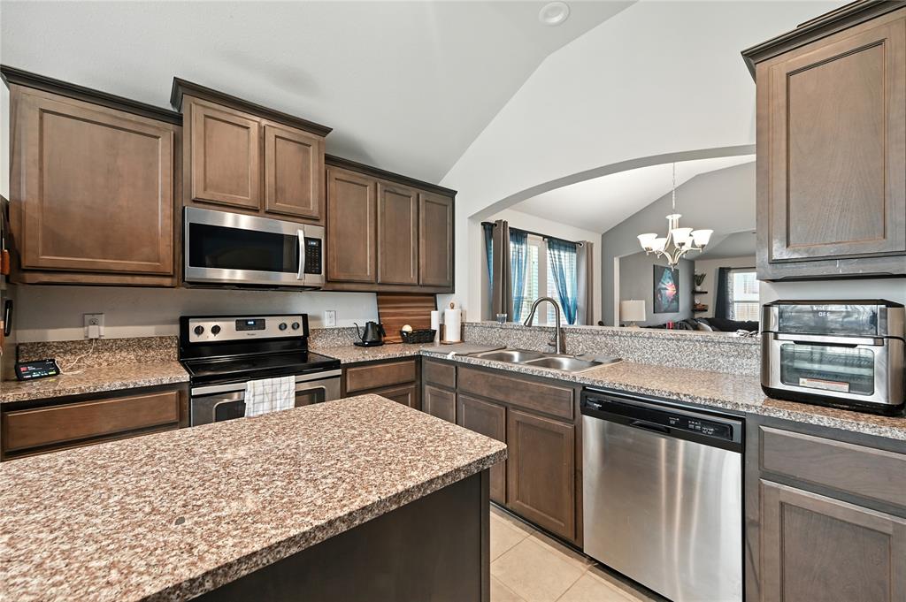 As soon as you pull up, the first thing you notice is the little greenbelt right across the street, a nice spot for kids to run around or to take the dog out. Walking inside, the kitchen immediately grabs your attention at the front of the home. It’s bright, open, and has plenty of room to cook and gather. You can sit down for a casual meal in the eat-in area or enjoy dinner in the dining room just outside the kitchen. From the kitchen, you can look straight into the living room, which is large enough to fit a big sectional, perfect for movie nights or hosting friends. The layout feels connected, but still gives each space its own purpose. The oversized primary suite is a perfect getaway with a soaking tub and separate shower. The two secondary bedrooms are just right for kids, guests, or even a home office. Step out back, and the yard is such a manageable size, enough room to enjoy without spending your whole weekend doing yard work. The patio is a great spot for grilling or relaxing at the end of the day. This home is easy to live in and easy to love.