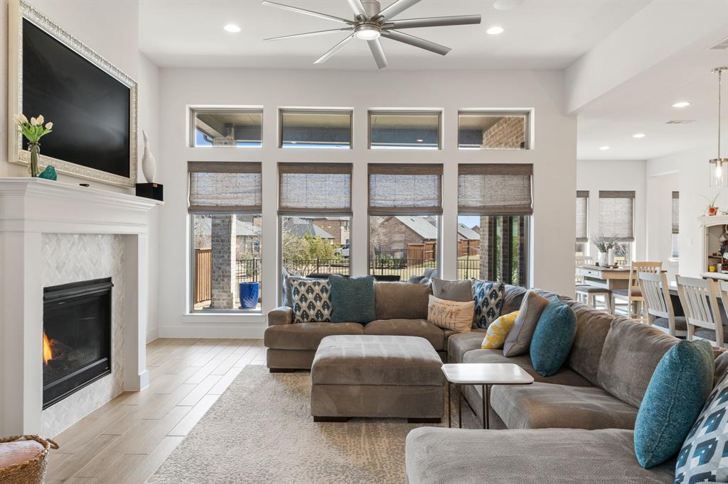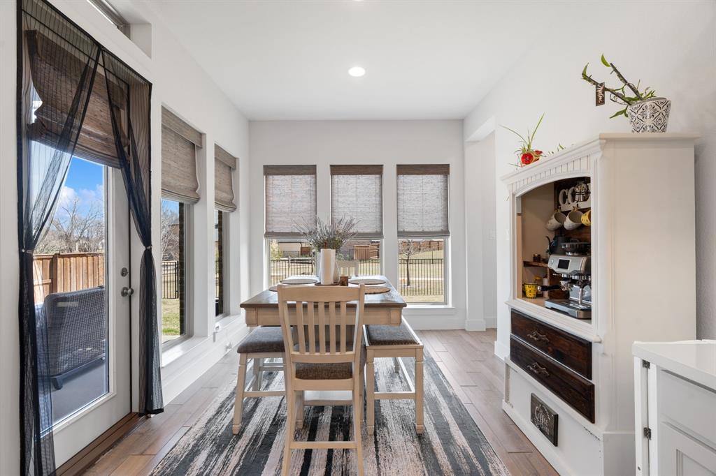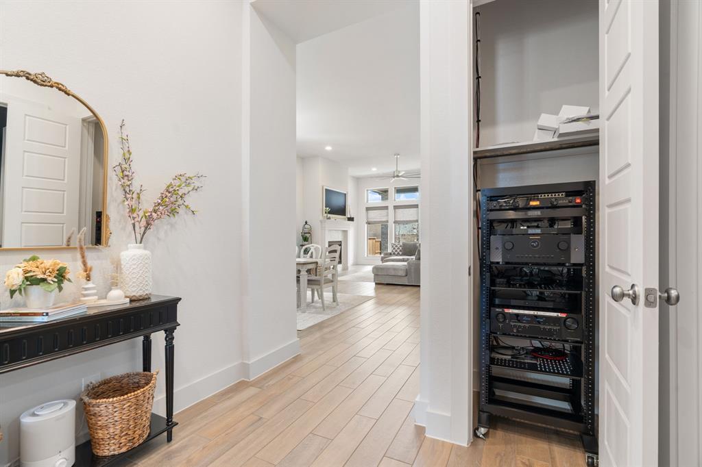 This stunning 4-bedroom, 3.5-bath home with an office and media room is truly better than new!!! So many upgrades and modern conveniences have been added throughout. The incredible media room comes complete with a 4K projector, screen, surround sound, media equipment, and cozy chairs. The living room features a Frame TV with built-in audio equipment and in-ceiling speakers, all included with purchase. High-end window coverings, including automated shades in the living, dining, and breakfast areas, add both elegance and function. Additional upgrades include custom cabinetry in the garage, laundry room, and bathrooms, upgraded door and drawer pulls, ceiling fans on the back porch and in guest bedrooms, and convenient under-eave plugs for holiday lights or security cameras. The spacious 3-car tandem garage stands out with built-in storage and a professionally installed epoxy floor. Located in Van Alstyne ISD, this home is situated in an amazing neighborhood that features a community pool, park, and walking trails, with convenient access to Highway 75 for an easy commute.