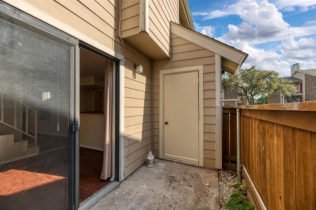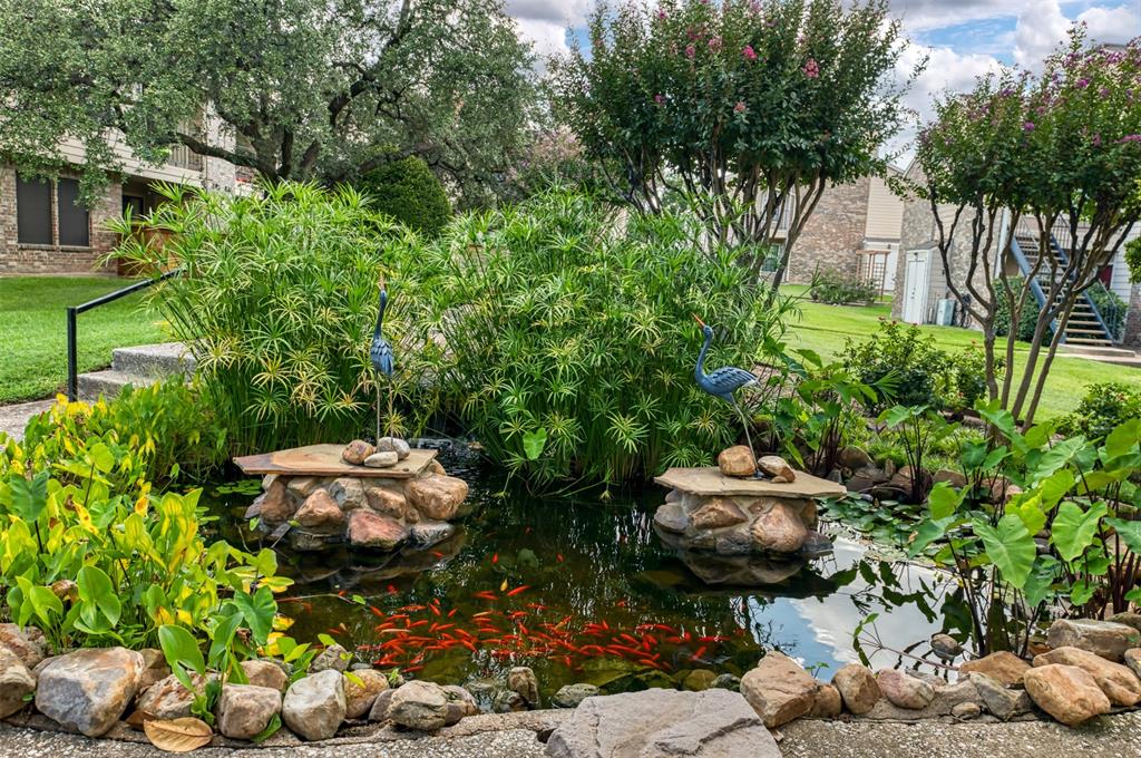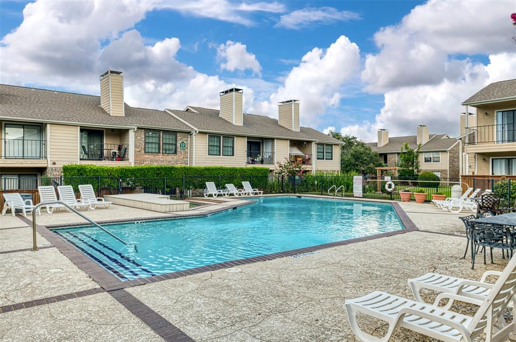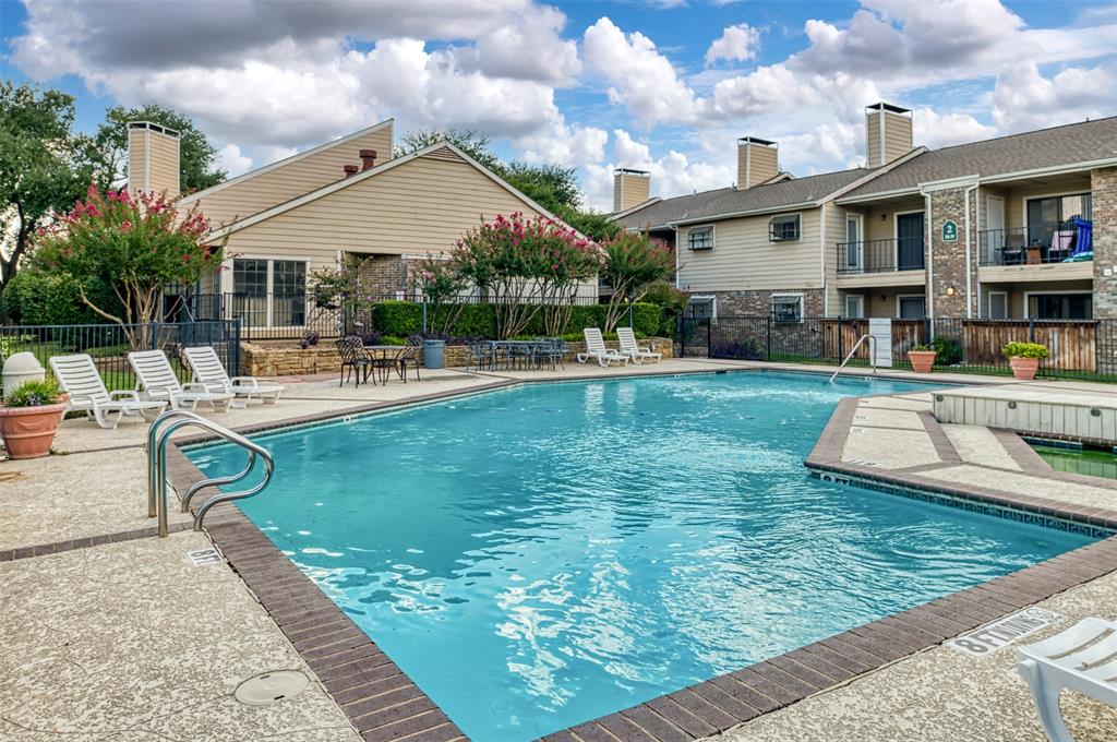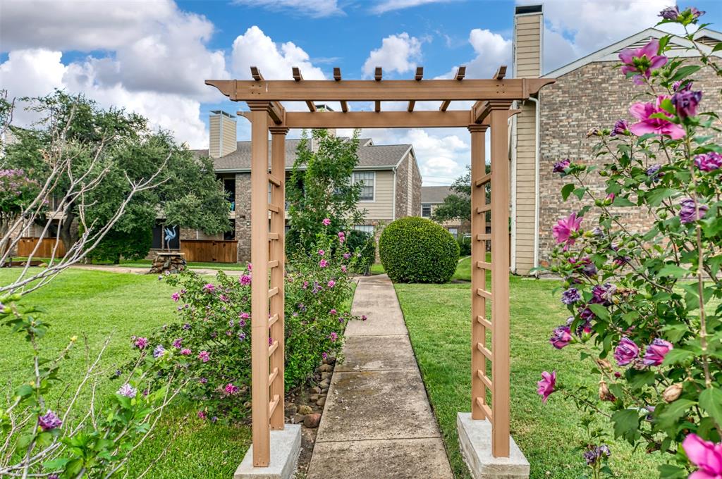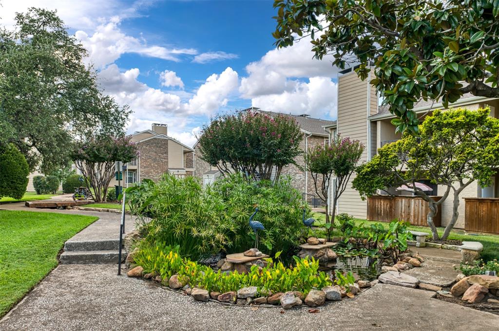 Updated North Dallas Condo with convenient location off Dallas North Tollway! Nestled inside a gated community with club house, pool, spa, and beautiful landscaped brook area, it is within Plano ISD. This two story condo rests on a grassed corner lot with plenty of guest parking available in front. Featuring a private primary bedroom with on suite bath and walk in closet! Kitchen, dining, living area with vaulted ceiling, and half bath conveniently located downstairs. Patio area has small fence with outside storage closet. Condo upgrades feature luxury vinyl plank flooring, granite counters in kitchen, new fixtures, Private luxury barn door to primary bedroom, freshly painted, shampooed carpet, and updated lighting features. Reserved carport parking number 180 conveys with condo. Washer, Dryer, and refrigerator also for sale. HOA covers Water, Sewer, clubhouse, pool and spa, and all common areas maintenance. Seller disclosure available on MLS Supplements.