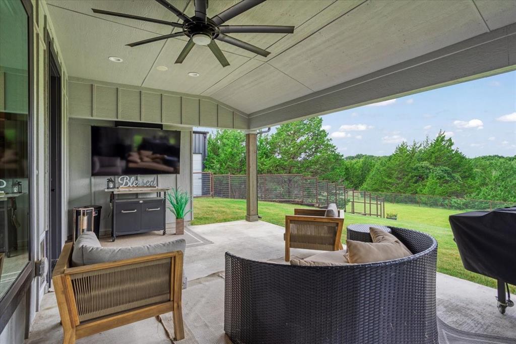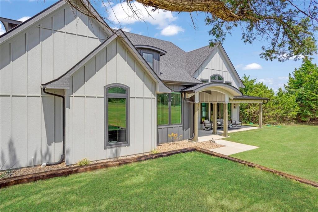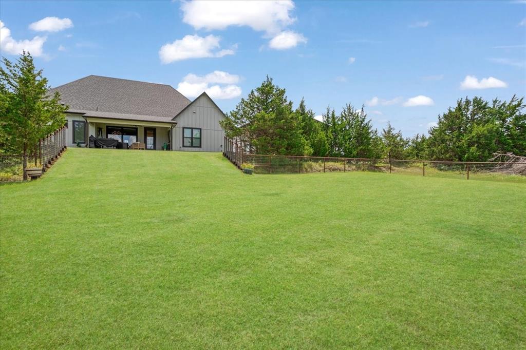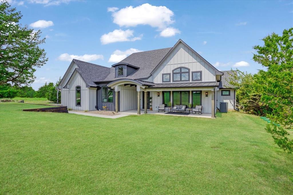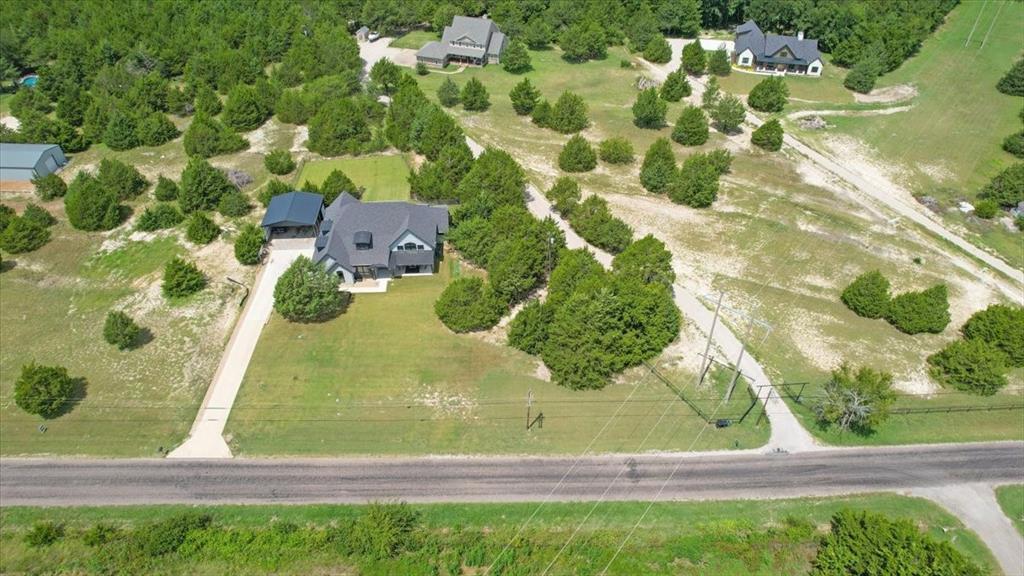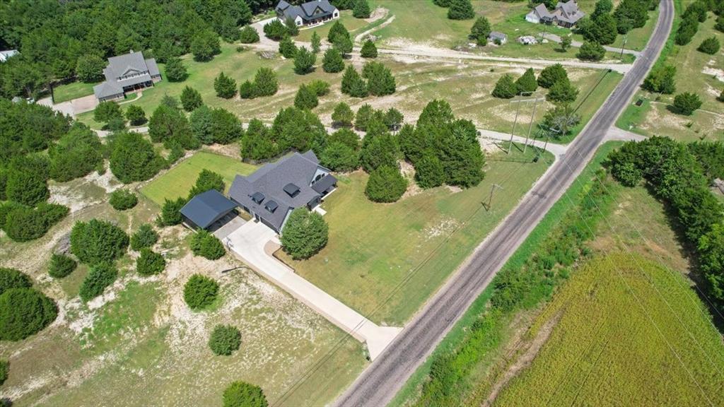 This remarkable floor plan and design combines both uniqueness and classic elegance. Upon entering, you'll be captivated by the stunning architecture and high-quality finishes. The backyard, framed by a backdrop of trees, enhances the home's ambiance and beauty. The back wall of the kitchen and dining area is mostly glass, providing a beautiful connection to the outdoors. This 2 year old Custom-built modern home is situated on a beautiful 1-acre lot, built by Fairview Custom Homes, a local luxury home builder. It has 2730 Sq Feet with a 30x21 attached garage. The family room features cathedral ceilings and a floor-to-ceiling tile fireplace. The spacious kitchen is the heart of the home. It is equipped with a gas range, stunning quartz countertops, and a large wrap-around eating bar. It also includes lighted custom cabinets, a butler's pantry, and a juice bar. The walk in pantry is hard to beat. This kitchen and dining space is really special and is STUNNING!. The lighting, the views and the flow. You will never want to leave! The primary ensuite is spacious and is separate from the other bedrooms. The bath is luxurious, yet functional. The Primary bedroom has it's own private backporch. The other two bedrooms are 12x12 with walk in closets and they have accompanying full baths that are lovely. The 12x12 office is located 3 steps up from the main floor and it has a Murphy bed! The 31x20 game room is located upstairs. Lots of storage and walk in attic space as well.The attached garage has a 2-car door, but the garage measures at 30 ft wide and 21 feet deep with a workbench. The carport affords you covering for 3 more cars or your camper. The carport has an attached 20x10 shop. There are so many extras in this home: automated shades, spray foam insulation in the attic and walls, tons of piers in the foundation, reverse osmosis water system, smart thermostat, whole house audio and lighting controls. The lighting is absolutely stunning. VAISD. No MUD, NO CITY TAXES.