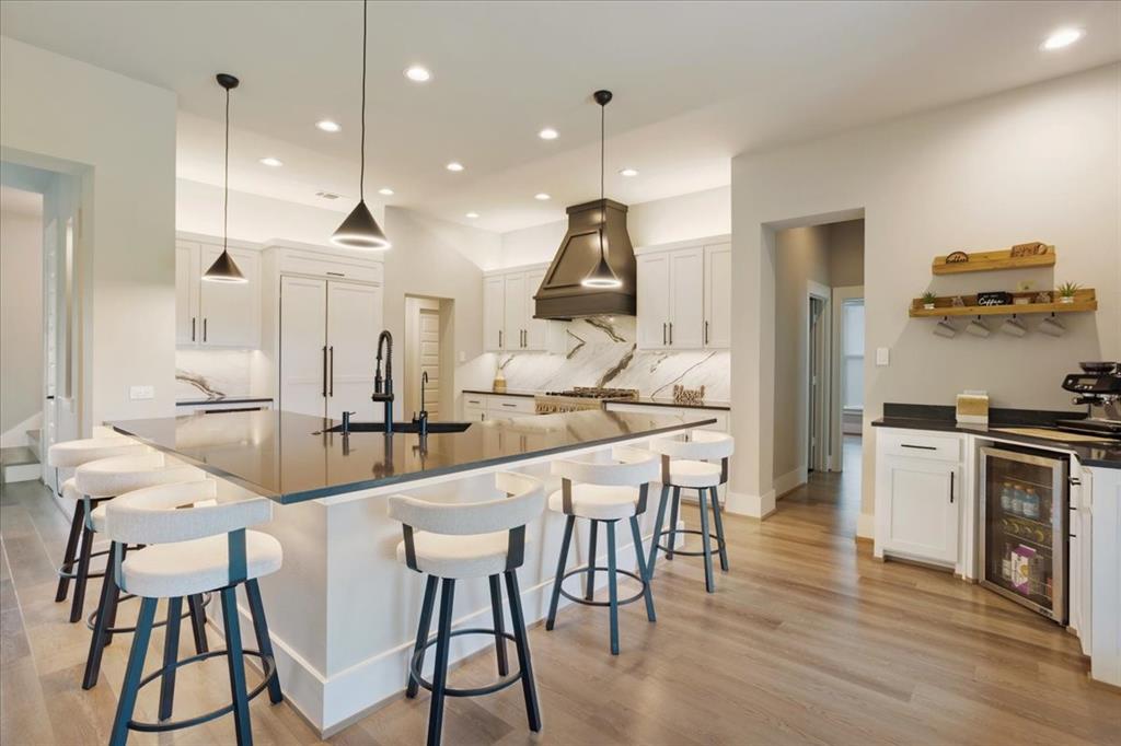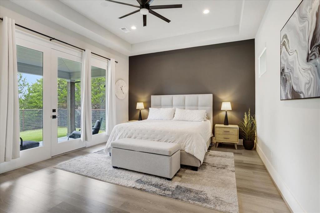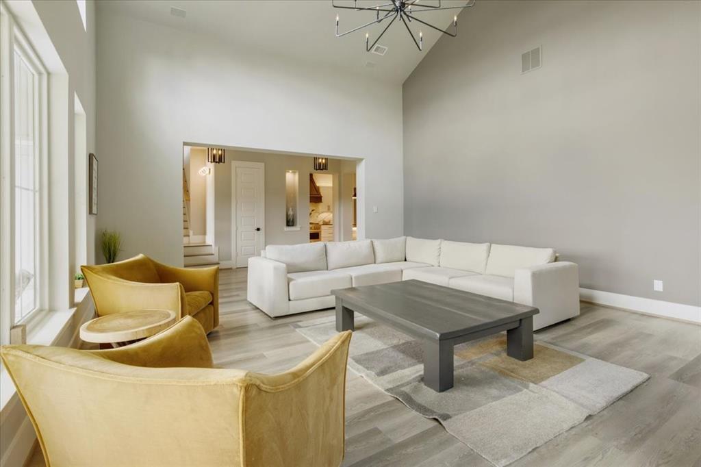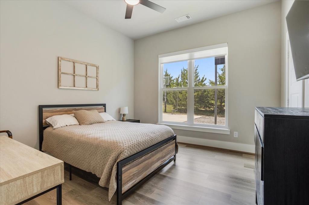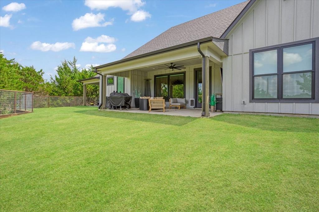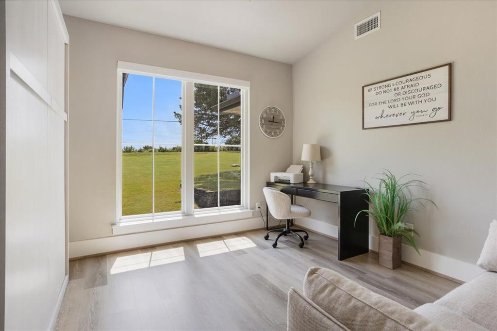 This remarkable floor plan and design combines both uniqueness and classic elegance. Upon entering, you'll be captivated by the stunning architecture and high-quality finishes. The backyard, framed by a backdrop of trees, enhances the home's ambiance and beauty. The back wall of the kitchen and dining area is mostly glass, providing a beautiful connection to the outdoors. This 2 year old Custom-built modern home is situated on a beautiful 1-acre lot, built by Fairview Custom Homes, a local luxury home builder. It has 2730 Sq Feet with a 30x21 attached garage. The family room features cathedral ceilings and a floor-to-ceiling tile fireplace. The spacious kitchen is the heart of the home. It is equipped with a gas range, stunning quartz countertops, and a large wrap-around eating bar. It also includes lighted custom cabinets, a butler's pantry, and a juice bar. The walk in pantry is hard to beat. This kitchen and dining space is really special and is STUNNING!. The lighting, the views and the flow. You will never want to leave! The primary ensuite is spacious and is separate from the other bedrooms. The bath is luxurious, yet functional. The Primary bedroom has it's own private backporch. The other two bedrooms are 12x12 with walk in closets and they have accompanying full baths that are lovely. The 12x12 office is located 3 steps up from the main floor and it has a Murphy bed! The 31x20 game room is located upstairs. Lots of storage and walk in attic space as well.The attached garage has a 2-car door, but the garage measures at 30 ft wide and 21 feet deep with a workbench. The carport affords you covering for 3 more cars or your camper. The carport has an attached 20x10 shop. There are so many extras in this home: automated shades, spray foam insulation in the attic and walls, tons of piers in the foundation, reverse osmosis water system, smart thermostat, whole house audio and lighting controls. The lighting is absolutely stunning. VAISD. No MUD, NO CITY TAXES.