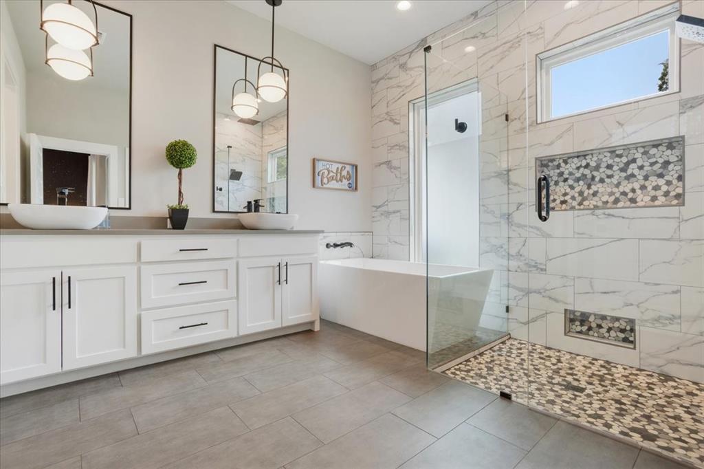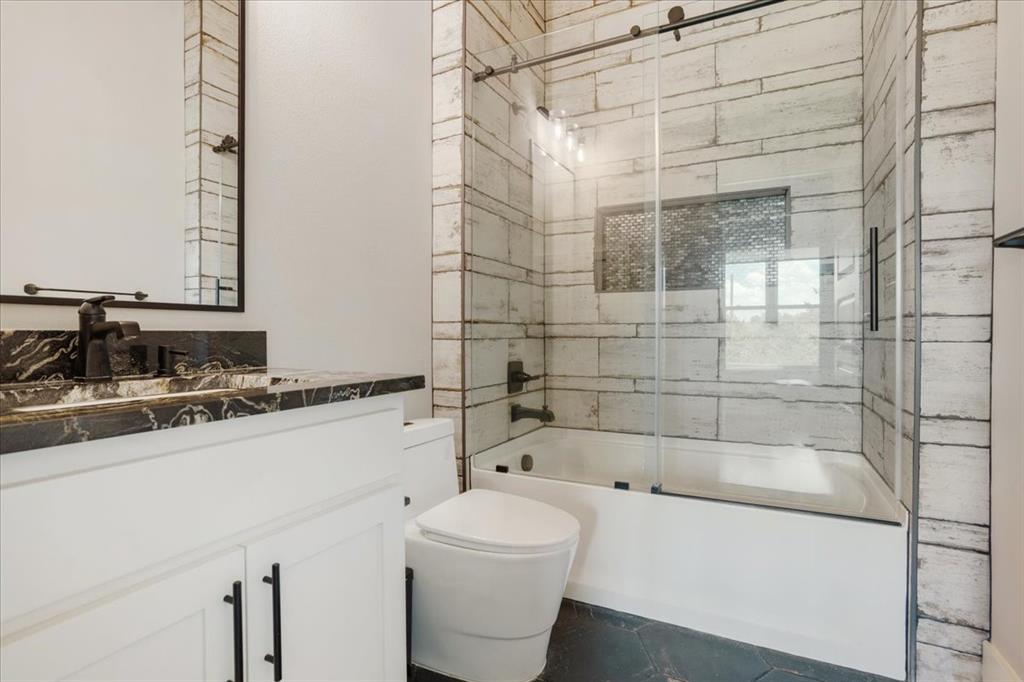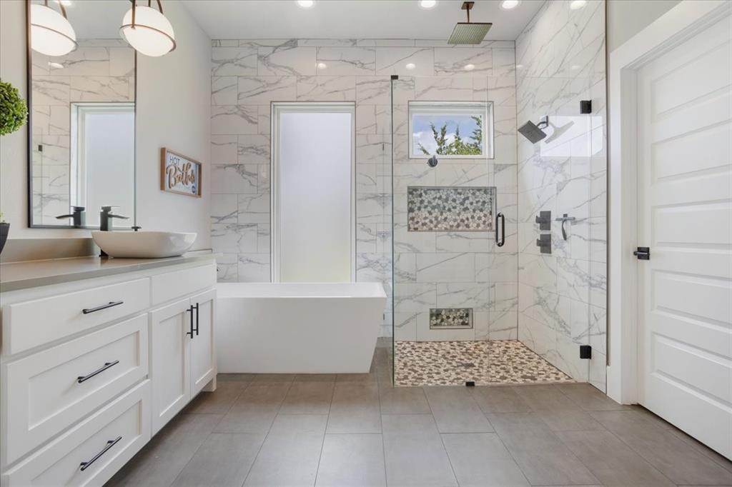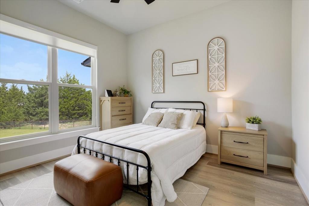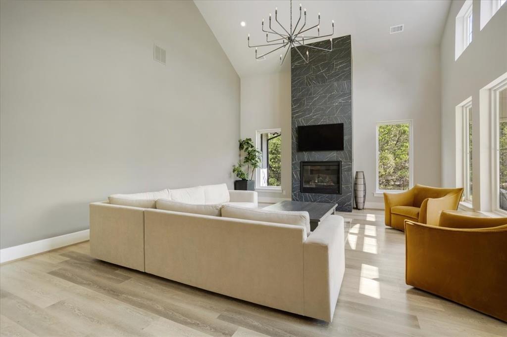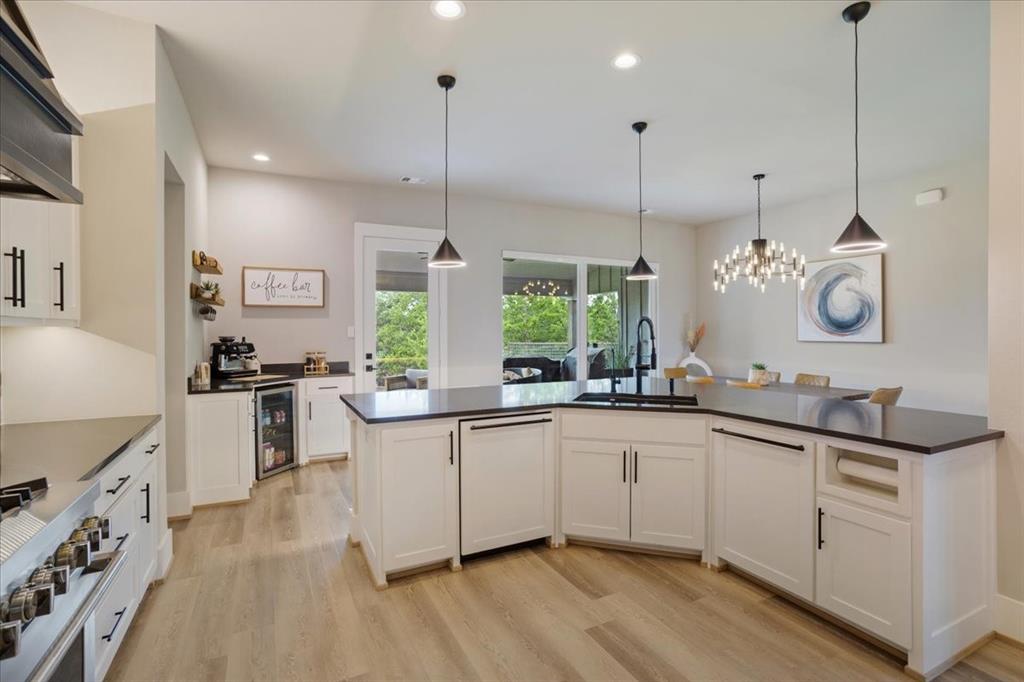 This remarkable floor plan and design combines both uniqueness and classic elegance. Upon entering, you'll be captivated by the stunning architecture and high-quality finishes. The backyard, framed by a backdrop of trees, enhances the home's ambiance and beauty. The back wall of the kitchen and dining area is mostly glass, providing a beautiful connection to the outdoors. This 2 year old Custom-built modern home is situated on a beautiful 1-acre lot, built by Fairview Custom Homes, a local luxury home builder. It has 2730 Sq Feet with a 30x21 attached garage. The family room features cathedral ceilings and a floor-to-ceiling tile fireplace. The spacious kitchen is the heart of the home. It is equipped with a gas range, stunning quartz countertops, and a large wrap-around eating bar. It also includes lighted custom cabinets, a butler's pantry, and a juice bar. The walk in pantry is hard to beat. This kitchen and dining space is really special and is STUNNING!. The lighting, the views and the flow. You will never want to leave! The primary ensuite is spacious and is separate from the other bedrooms. The bath is luxurious, yet functional. The Primary bedroom has it's own private backporch. The other two bedrooms are 12x12 with walk in closets and they have accompanying full baths that are lovely. The 12x12 office is located 3 steps up from the main floor and it has a Murphy bed! The 31x20 game room is located upstairs. Lots of storage and walk in attic space as well.The attached garage has a 2-car door, but the garage measures at 30 ft wide and 21 feet deep with a workbench. The carport affords you covering for 3 more cars or your camper. The carport has an attached 20x10 shop. There are so many extras in this home: automated shades, spray foam insulation in the attic and walls, tons of piers in the foundation, reverse osmosis water system, smart thermostat, whole house audio and lighting controls. The lighting is absolutely stunning. VAISD. No MUD, NO CITY TAXES.