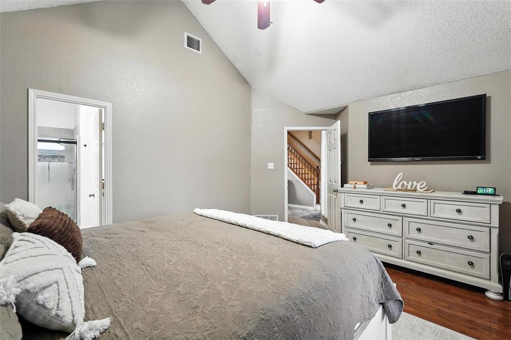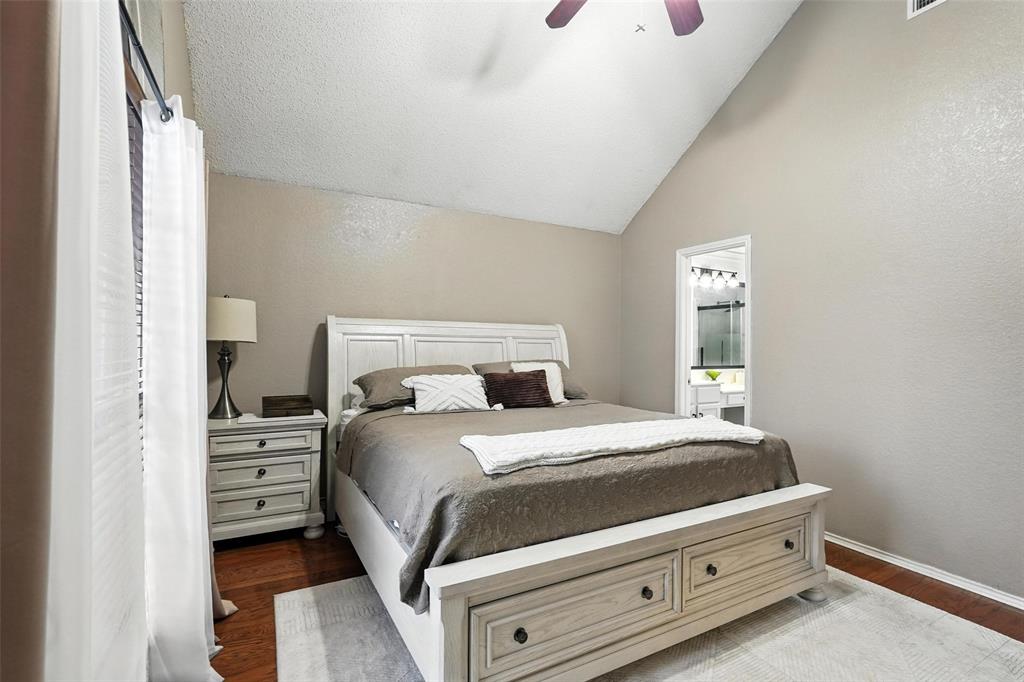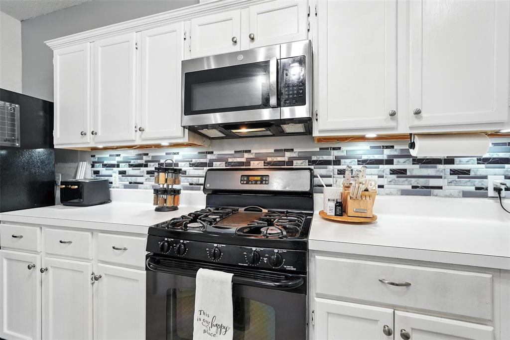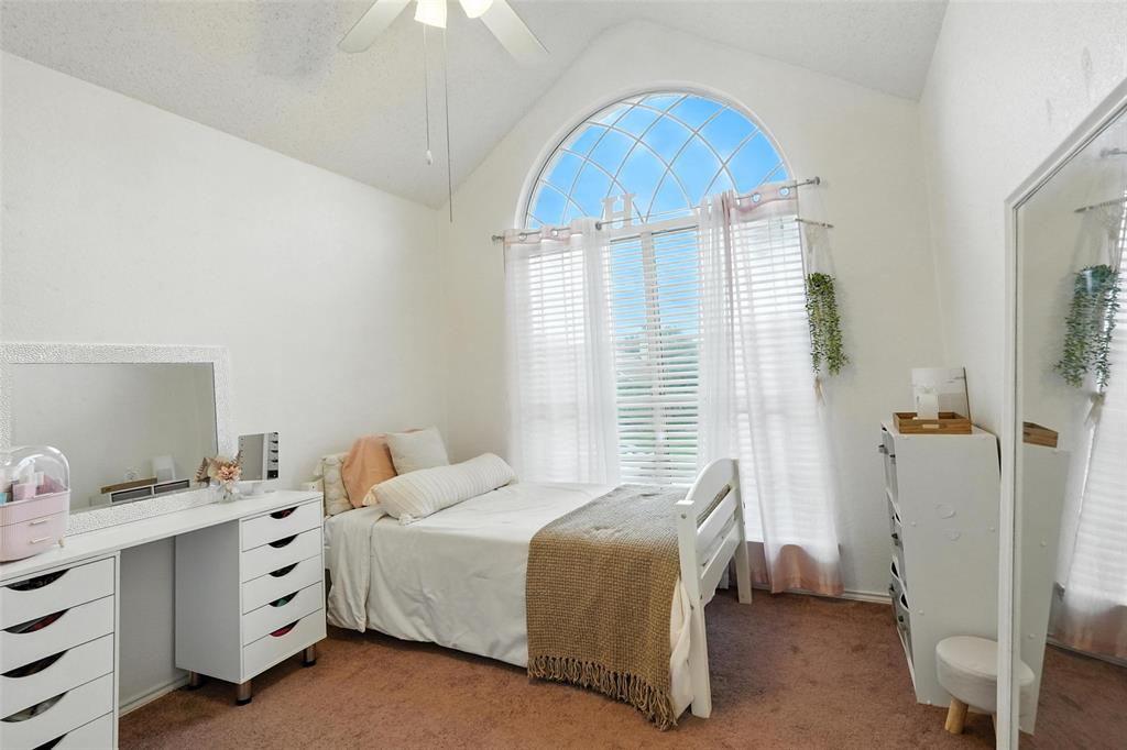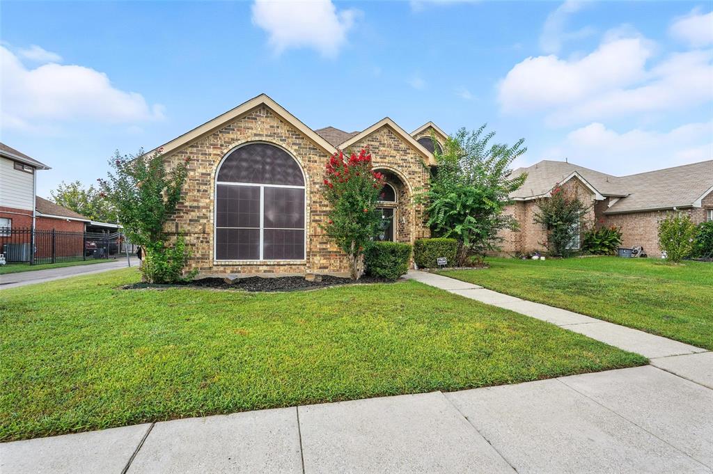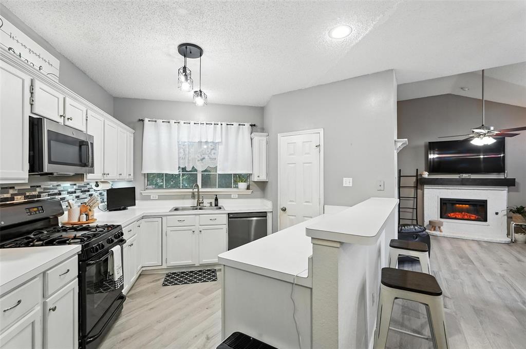 Welcome to this charming two-story home in the desirable Creek Crossing Estates community of Mesquite. Featuring 4 spacious bedrooms, 2.5 baths, and a 2-car garage, offering both comfort and functionality. The bright and open living area boasts vaulted ceilings, a cozy fireplace, and large arched windows that allow for abundant natural light. The updated kitchen includes white cabinetry, a tile backsplash, stainless-steel appliances, and a breakfast bar that opens to the dining area. The private primary suite offers soaring ceilings, a beautifully remodeled bath with dual vanities, and a walk-in shower. Additional bedrooms provide plenty of space for family, guests, or a home office. Enjoy outdoor living in the fenced backyard with a patio, perfect for entertaining, relaxing, or weekend gatherings. Conveniently located near local parks, schools, shopping, and dining. Come take a look today!