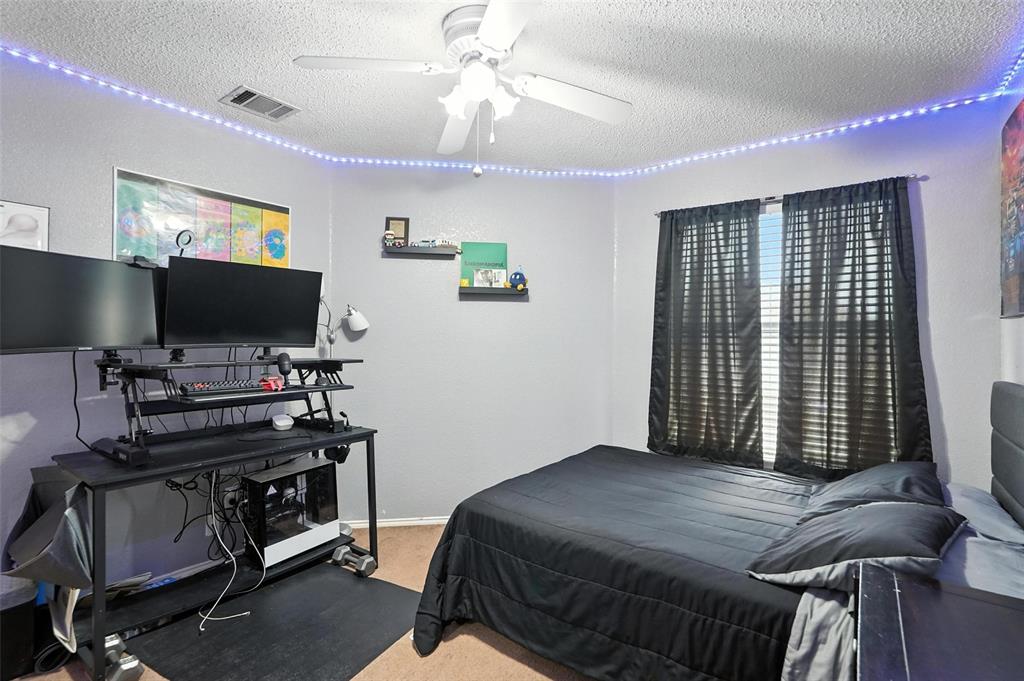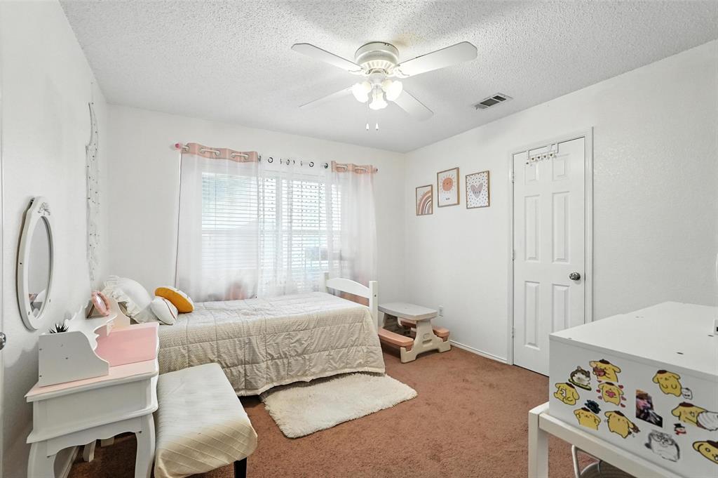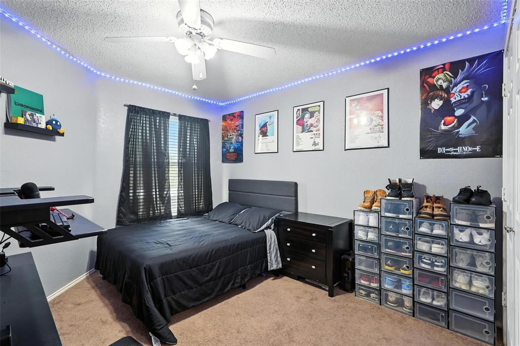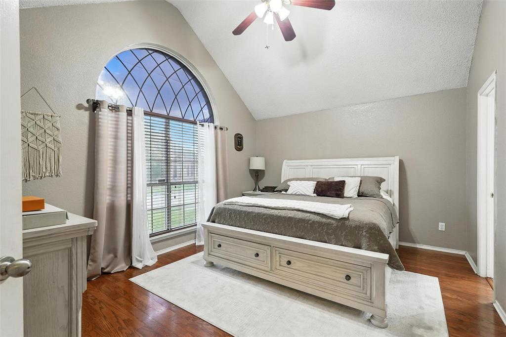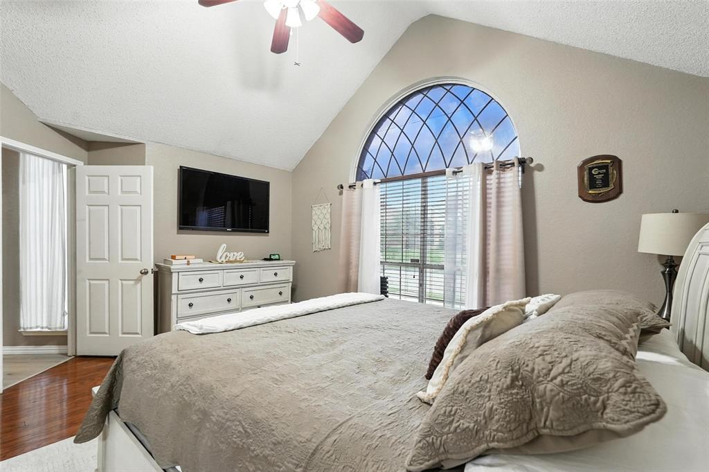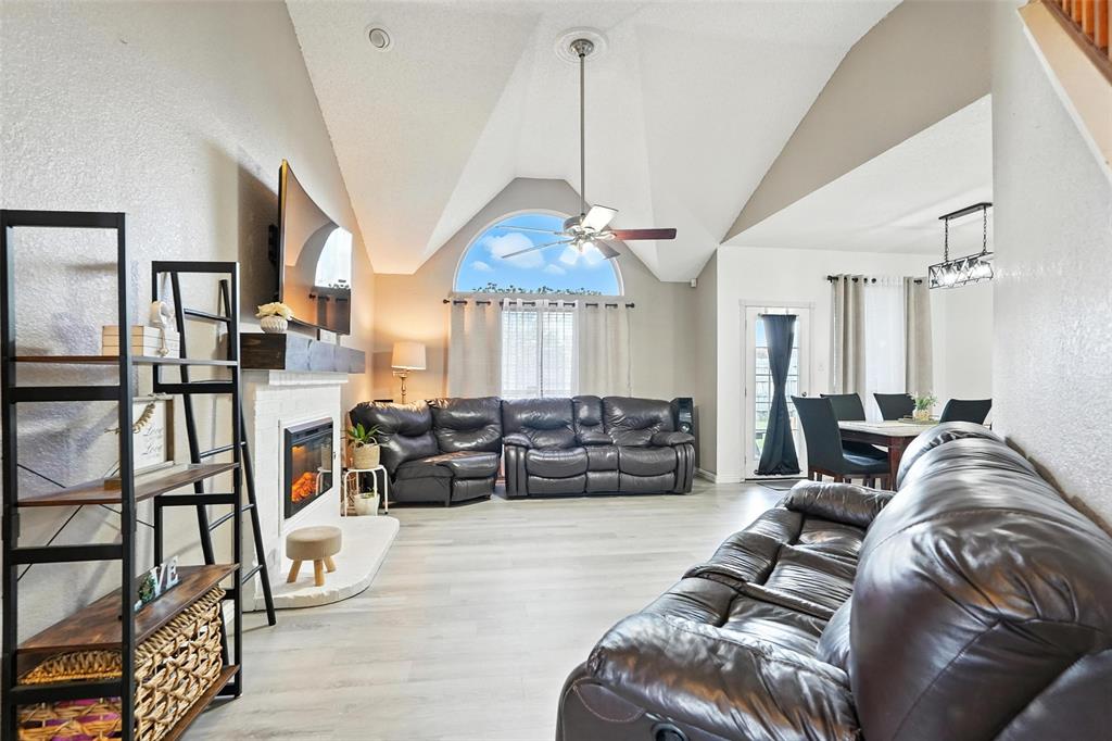 Welcome to this charming two-story home in the desirable Creek Crossing Estates community of Mesquite. Featuring 4 spacious bedrooms, 2.5 baths, and a 2-car garage, offering both comfort and functionality. The bright and open living area boasts vaulted ceilings, a cozy fireplace, and large arched windows that allow for abundant natural light. The updated kitchen includes white cabinetry, a tile backsplash, stainless-steel appliances, and a breakfast bar that opens to the dining area. The private primary suite offers soaring ceilings, a beautifully remodeled bath with dual vanities, and a walk-in shower. Additional bedrooms provide plenty of space for family, guests, or a home office. Enjoy outdoor living in the fenced backyard with a patio, perfect for entertaining, relaxing, or weekend gatherings. Conveniently located near local parks, schools, shopping, and dining. Come take a look today!
