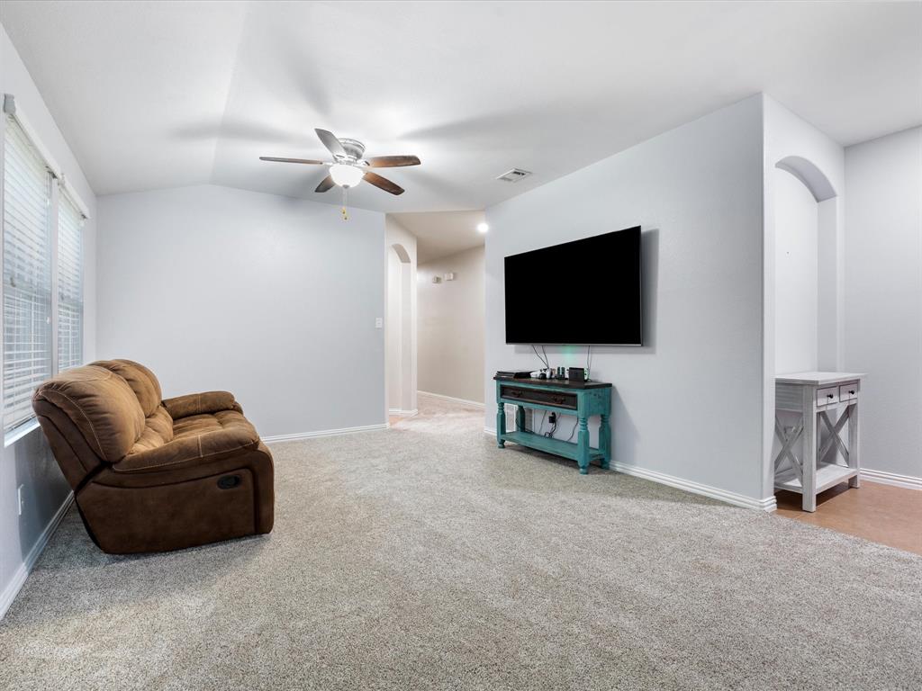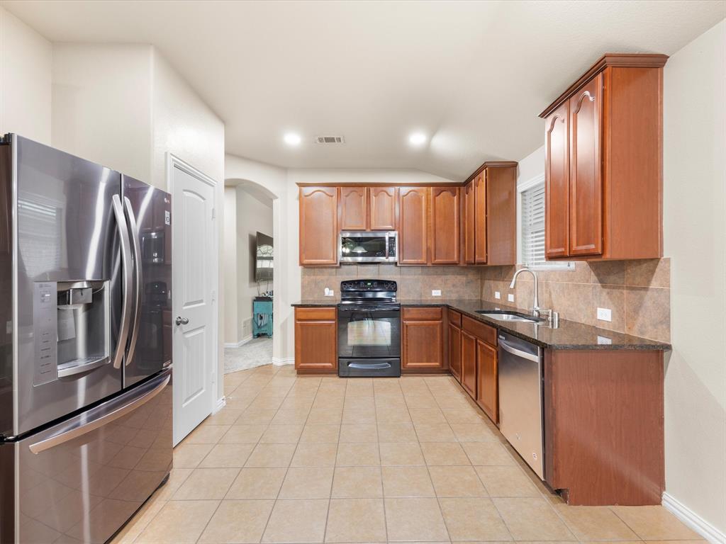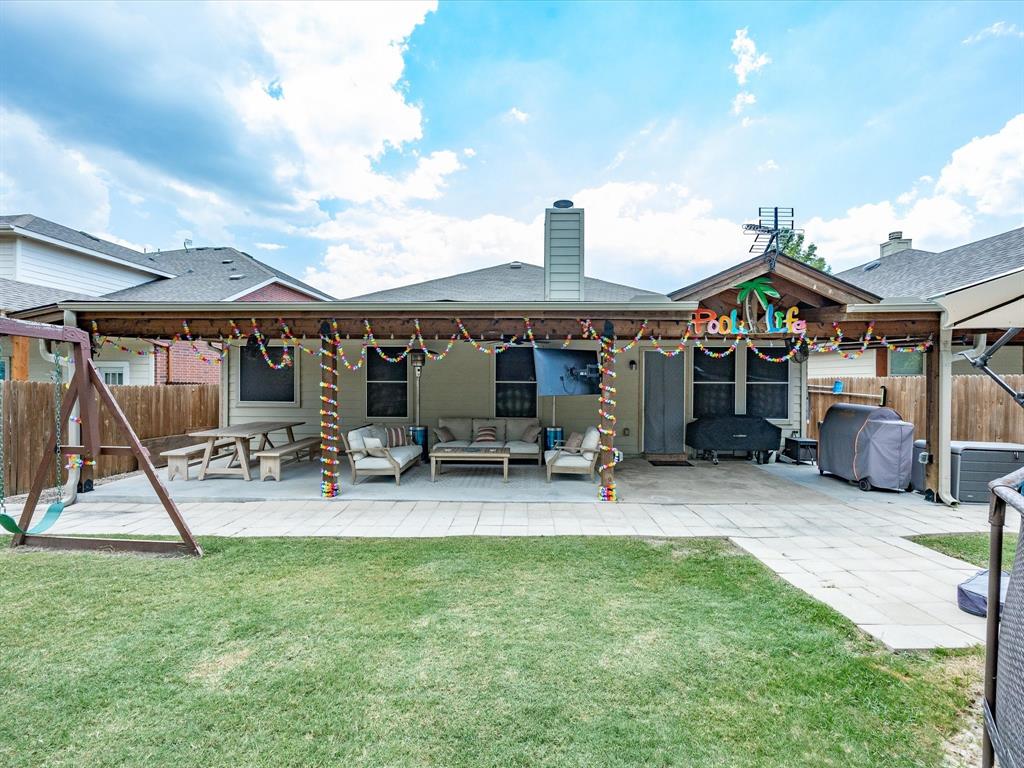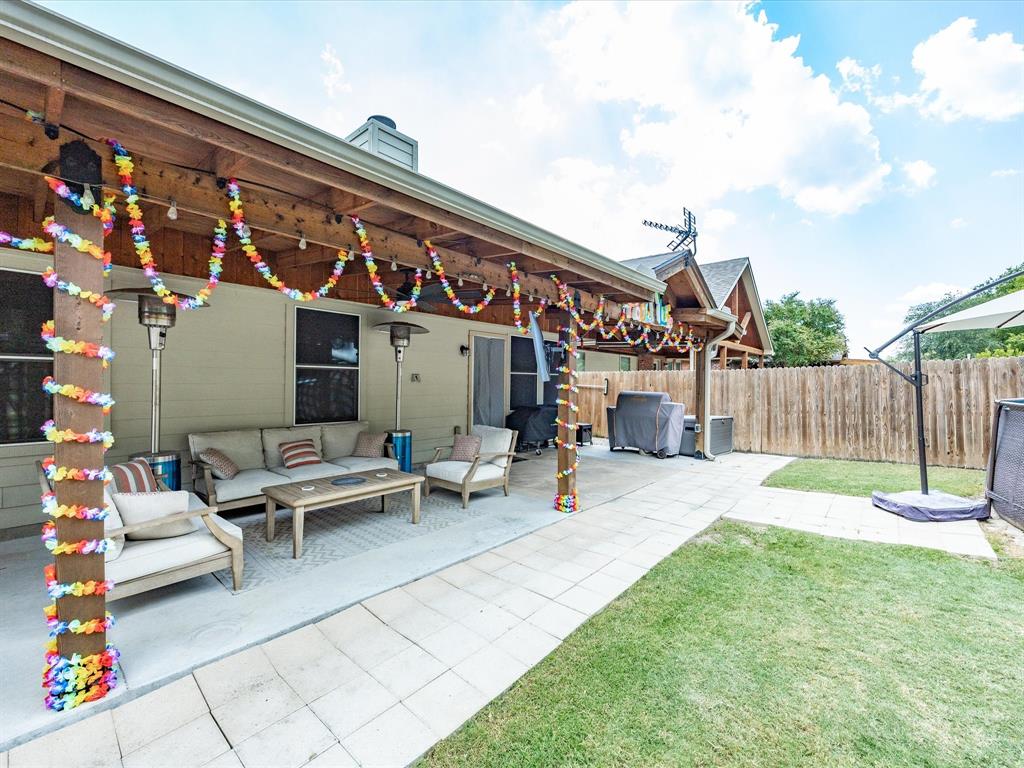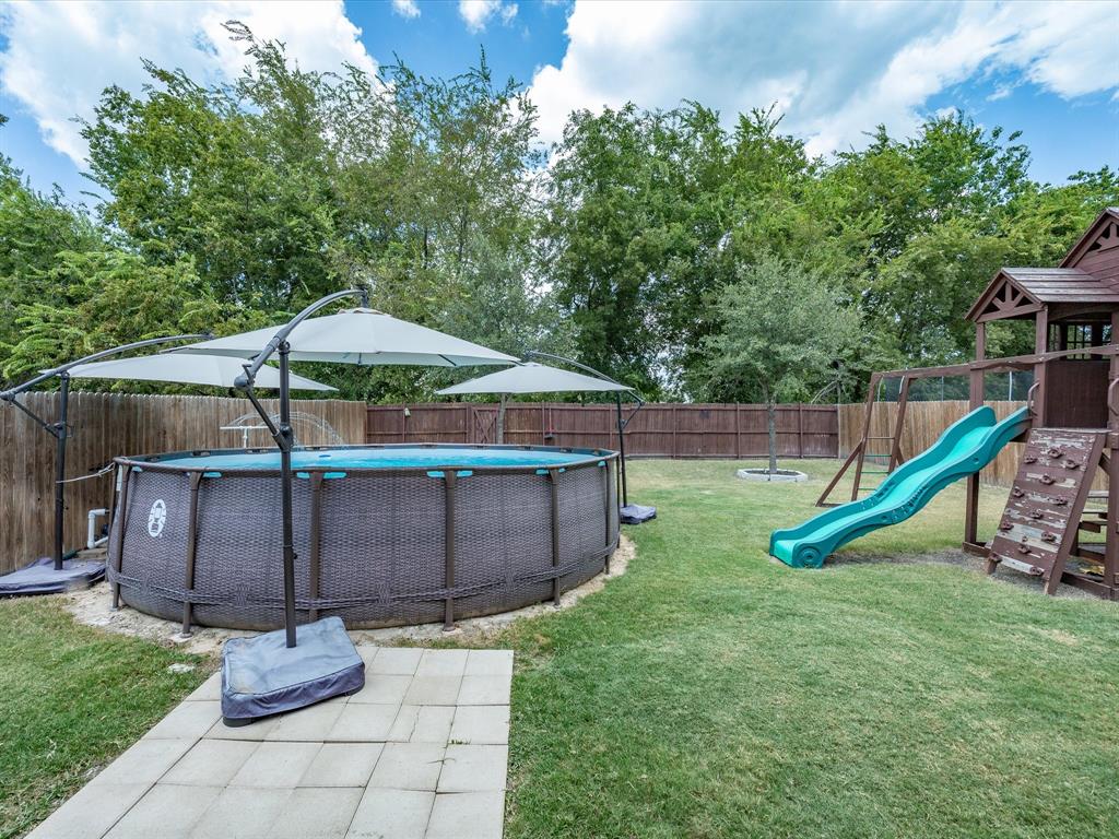 Step outside and you’ll find a covered porch that creates an ideal setting for entertaining or simply enjoying the Texas evenings. The above-ground pool, which stays with the property, adds to the appeal and makes this backyard a destination of its own to enjoy year round.