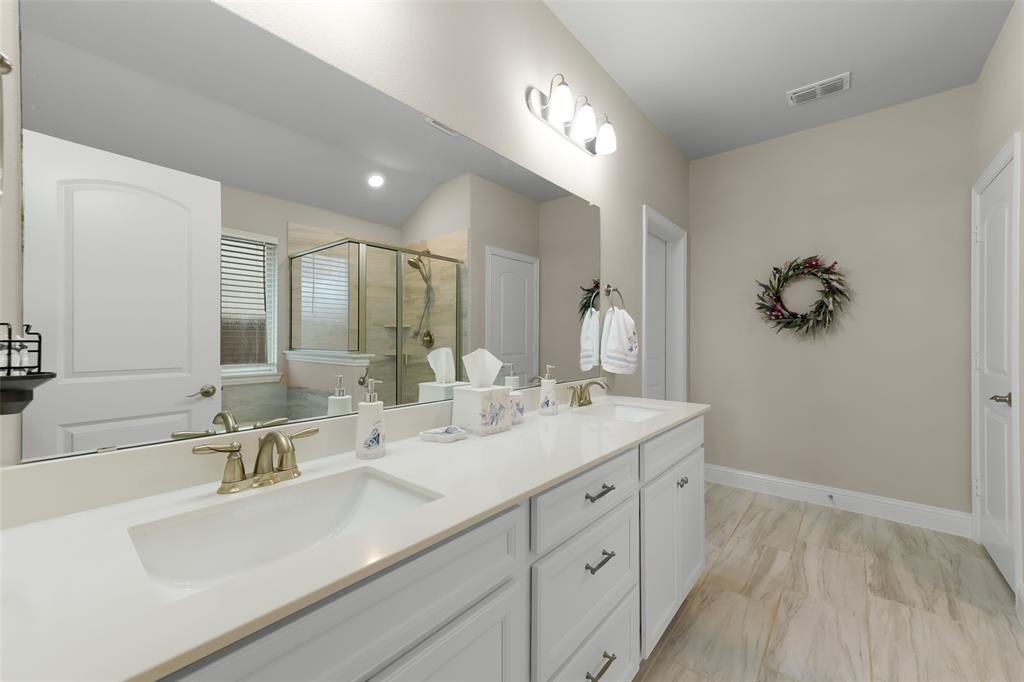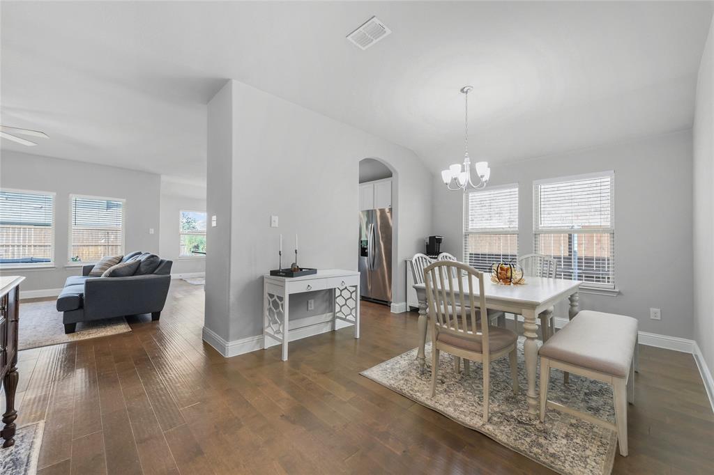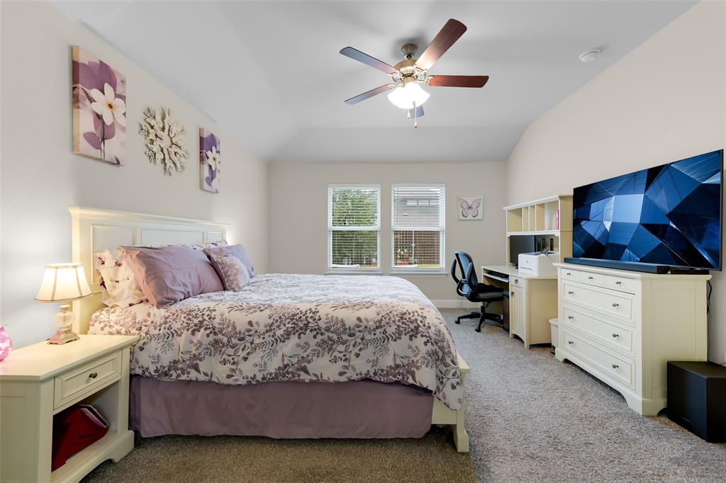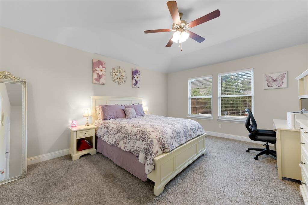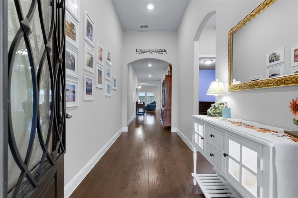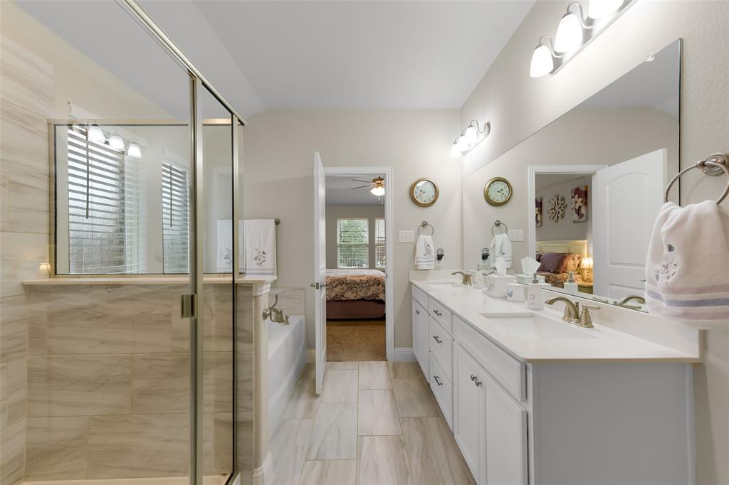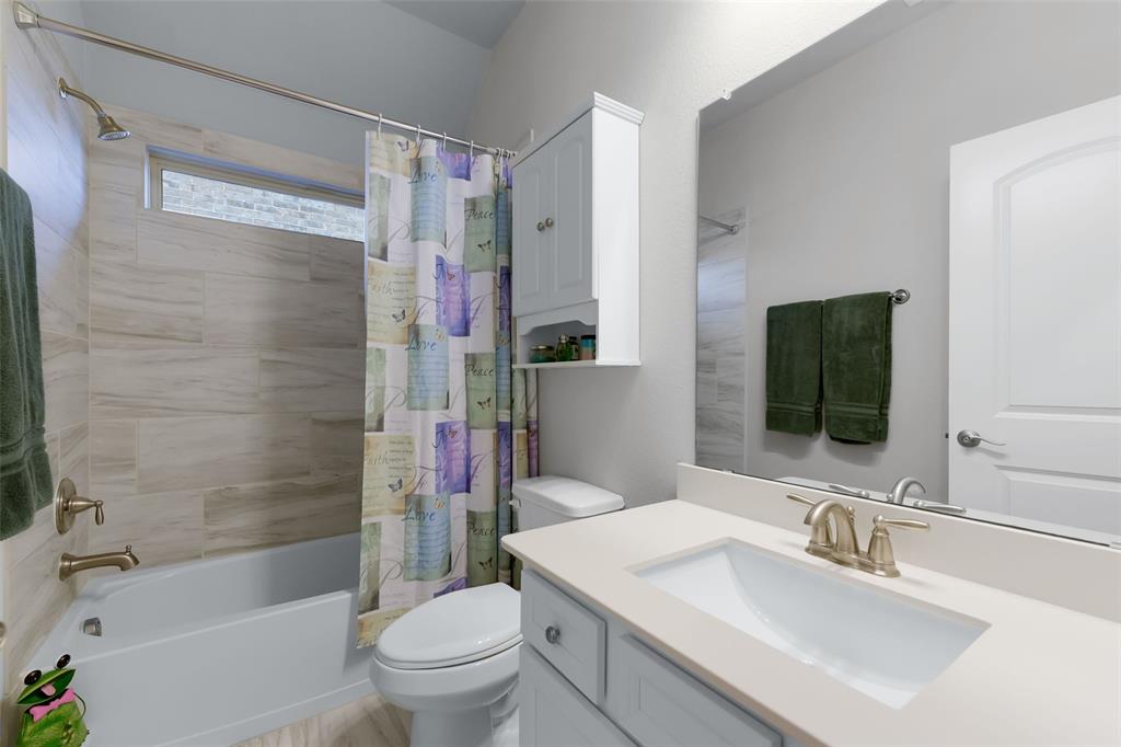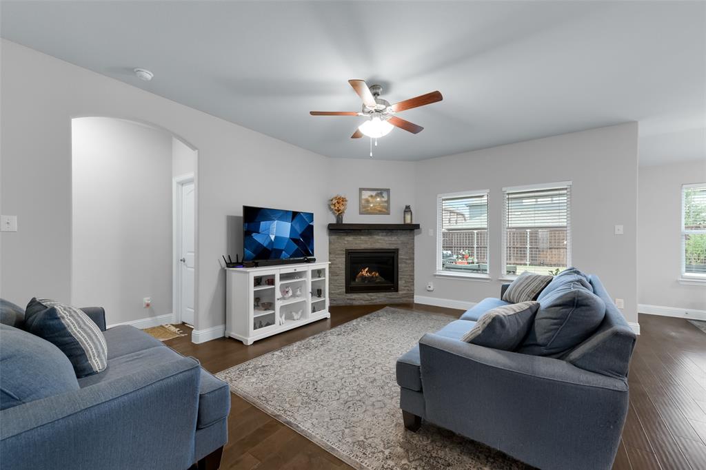 SELLER OFFERING $5,000 IN CONCESSIONS, WHICH IS A GREAT DEAL ON THE LOWEST PRICED HOME IN THE NEIGHBORHOOD! Welcome to this beautiful single story home featuring 4 bedrooms, 2.5 baths, plus a versatile flex space perfect for a dining room, playroom, or second living area. The exterior showcases charming brick and stone accents with a landscaped flower bed for great curb appeal. From the moment you enter, you’ll be greeted by tall ceilings and an open entry hallway that flows into a light filled layout with abundant windows and natural light. The chef’s kitchen is designed to impress with crisp white cabinets, a large island, quartz countertops, and a gas cooktop. The spacious primary suite offers a true retreat with a luxurious bathroom complete with double sinks, a garden tub, a separate shower, and large walk in closet. The split bedroom design includes generous sized bedrooms, ample storage space, a spa like secondary bathroom, plus a powder bath for guests. The spacious backyard provides plenty of room to play or garden. Located in the desirable Wellington community that features a resort style pool, parks, a playground, and miles of scenic walking trails. Within walking distance to highly rated Northwest ISD schools! This location is perfect for commuting, close to Hwy 287 and 35W. A short drive from Presidio Towne Crossing and Alliance Town Center which offer a plethora of restaurants, shopping, entertainment, and nightlife! Don't miss out an opportunity for a great home in a wonderful community at an unbeatable price!