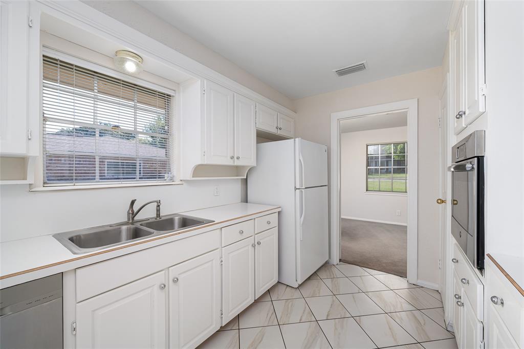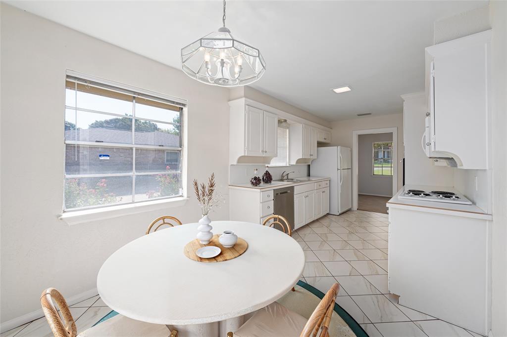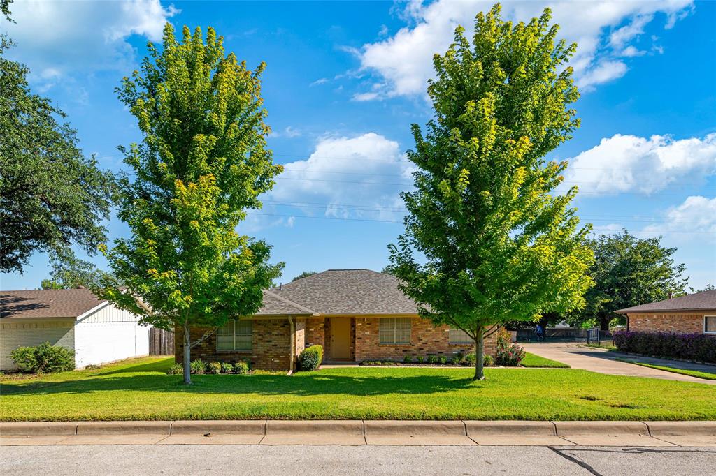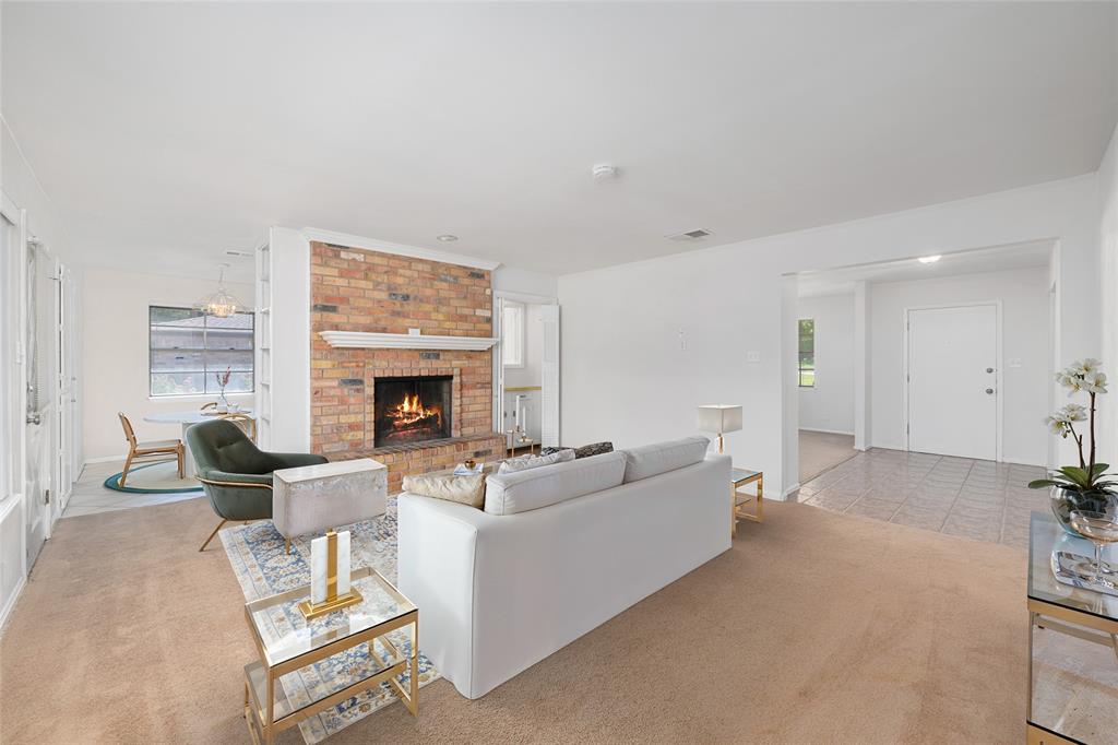 Charming single-story home on an oversized lot in one of the area’s most desirable neighborhoods—just minutes from schools, shopping, and dining. Freshly painted inside and out, this residence blends comfort with thoughtful updates. Step inside to a flexible living and dining space, then move toward the heart of the home where a cozy family room awaits, complete with a brick wood-burning fireplace, wall of windows, and a dry bar that opens to the kitchen. The updated kitchen shines with crisp white cabinetry, new tile, an electric cooktop, separate oven, and a sunny breakfast area.