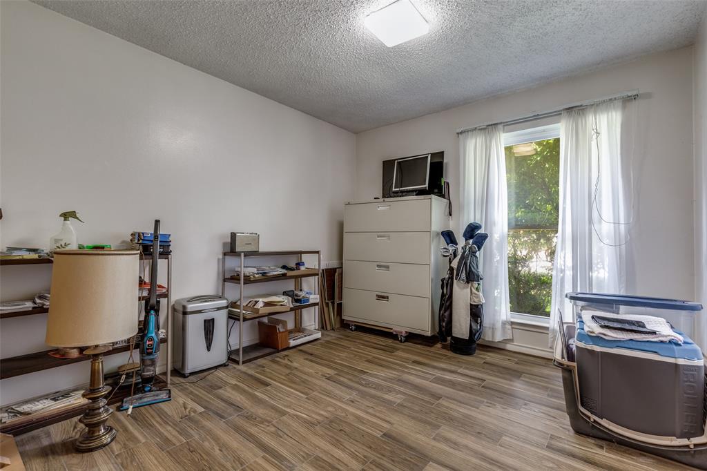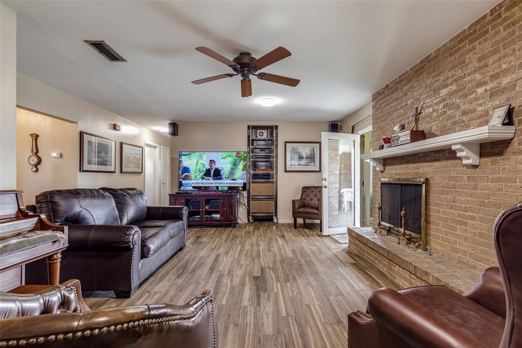 This Wonderful house has three bedrooms plus an office and an enclosed back patio. Beautiful porcelain tile floors that look like wood floors. The kitchen is enhanced with granite countertops, great looking cabinets, microwave, dual ovens and handsome porcelain tile flooring that looks like wood floors. Spacious den features a nice fireplace and terrific looking porcelain tile flooring that looks like wood flooring. Living room and dining room both have terrific looking porcelain tile flooring that look like wood flooring. The windows have been replaced with dual pane glass for energy efficiency. The office has an abundance of built-in shelves, there is an updated patio door that has dual pane glass for energy efficiency, the patio door opens to the backyard. Over-sized garage for extra storage. Solar panels are owned by the seller. Sprinkler system. Updated breaker box. The seller says that the house is larger than the Dallas County Tax records.
