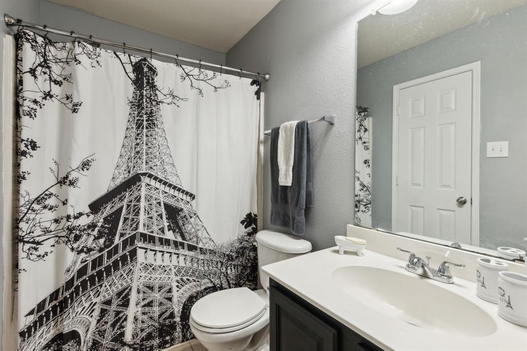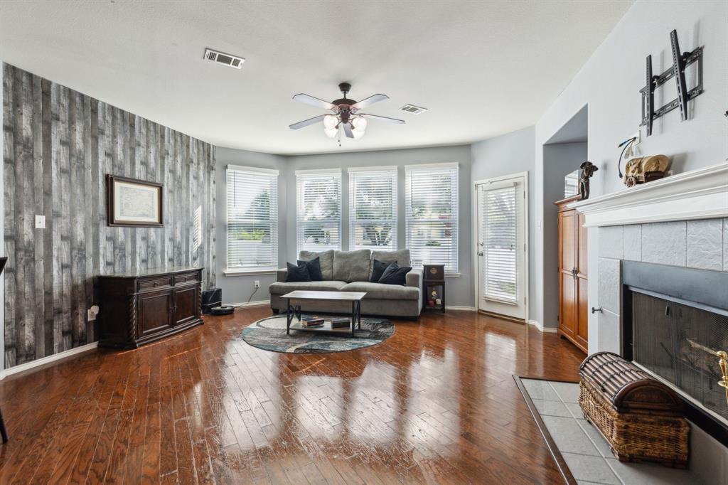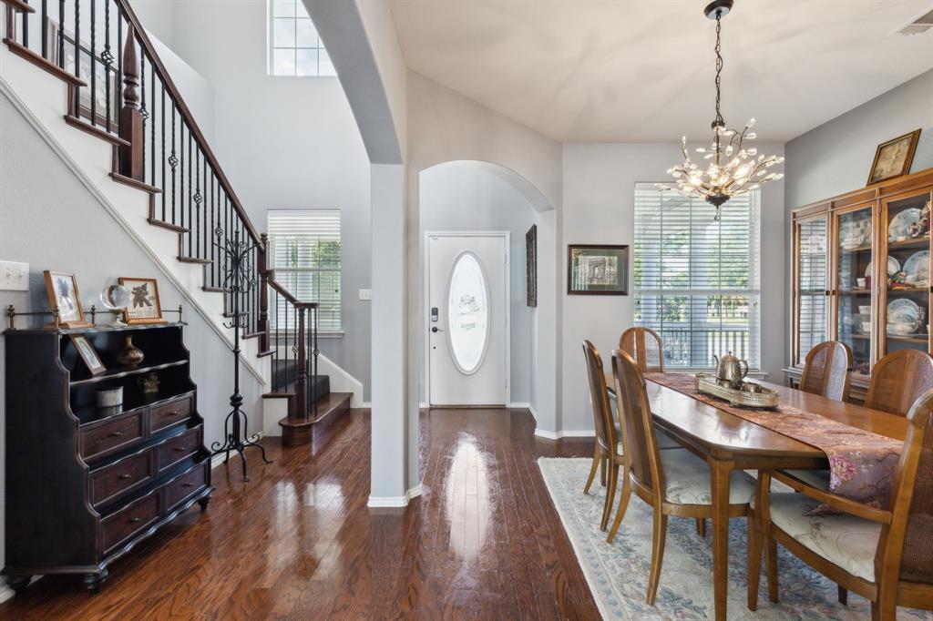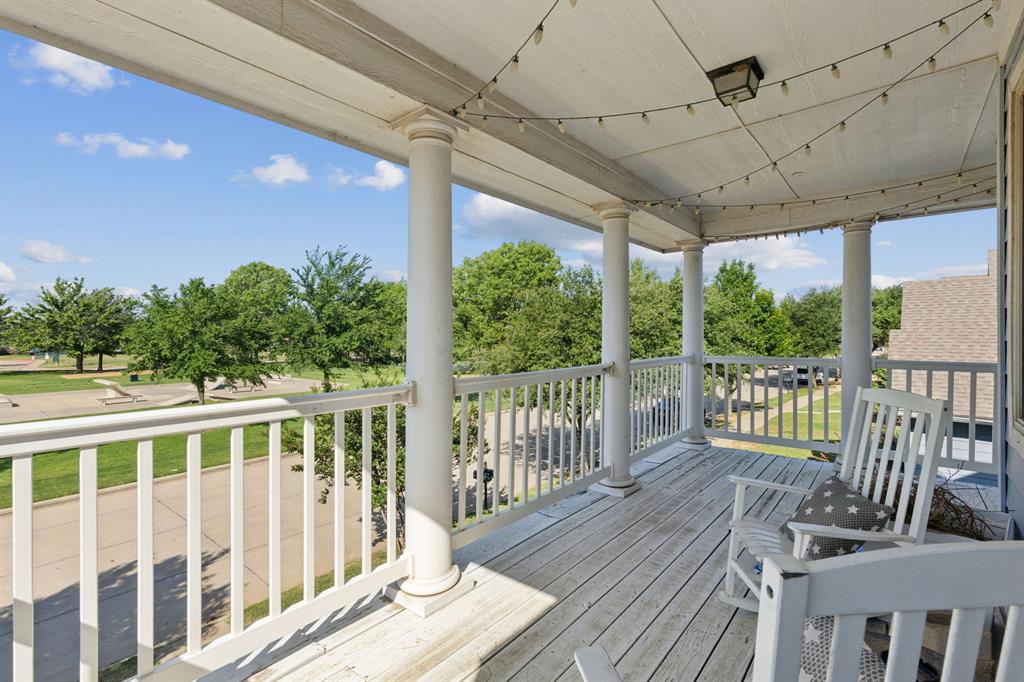 Majestic Charleston-style home in Providence Village, on an absolutely prime lot just across the street from recreation and a lake, with sparkling pool and awaiting new owners! Maximizing walkable amenities and a few minute walk from Monaco Elementary, you couldn't ask for more convenience. Huge front patio with funky string lights is perfect for entertaining and tranquil sounds of nearby fountain. Inside features soaring ceilings, hardwoods downstairs, entry leading to dining and large living room with wood-burning gas-starter fireplace. Kitchen boasts granite countertops, stainless appliances including 5-burner stove with griddle and built-in microwave. Full-size rear-entry garage. Master bedroom down, with cozy sitting area, separate shower and jetted tub, double vanity and walk-in closet. New HVAC units with heat pump. 10 year transferable warranty installed 08-25.Upstairs is a wonder for entertaining; large game room with engineered wood flooring, huge media room. 4 bedrooms including ensuite upstairs, serviced by full bath. Backyard is an oasis; sparkling pool with upgraded equipment, no-maintenance turf lawn, framed by picturesque vinyl fence. A delight in Providence Village!