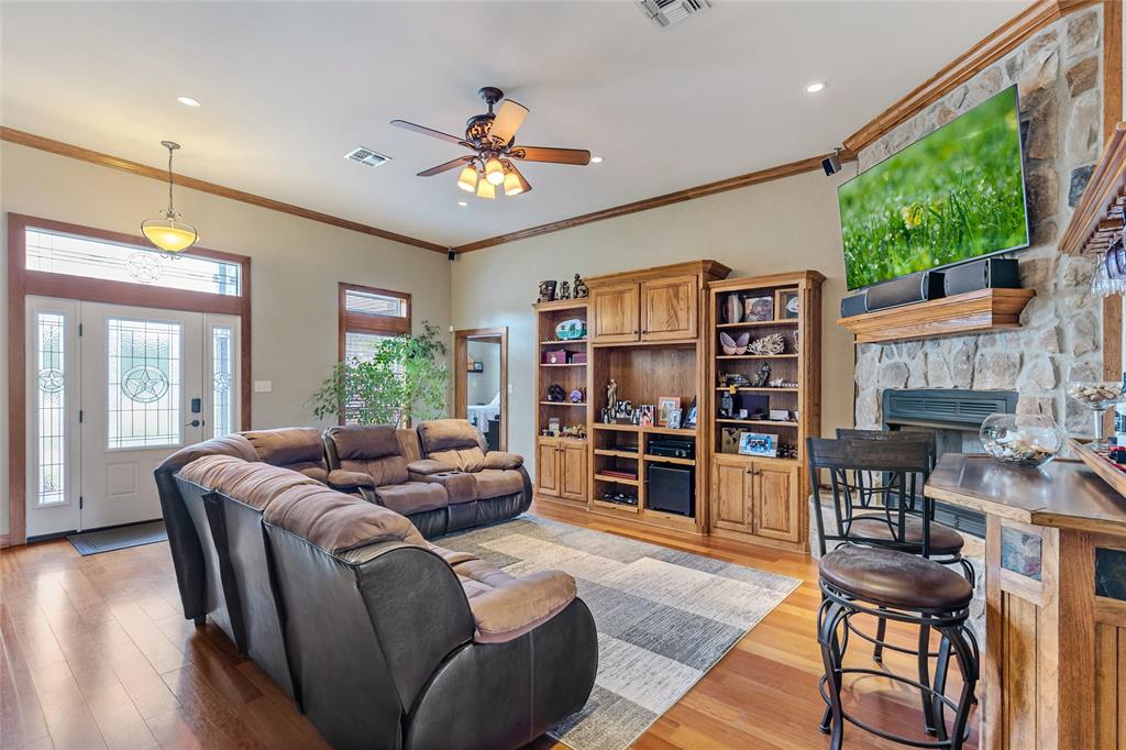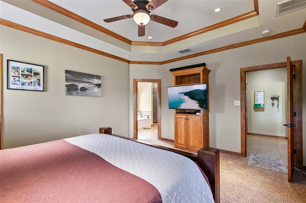 Beautiful home in Hickory Grove Estates with NEW ROOF sitting on 2.215 acres JUST MINUTES FROM COOPER LAKE! Inviting family room, formal and informal dining, granite counter tops, custom cabinetry, master suite complete with private bath, dual vanities, garden tub, separate shower and two large walk in closets. Sun room or office, wood flooring, split floor plan with all bedrooms having new Stainmaster carpet, surround sound, a fenced in back yard and much more. 30 x 30 shop with insulated walls, concrete floors, awning for additional parking, electric, water, AC and HEAT. New 16 x 40 RV Carport with 15,30,20 amp electric service. This includes two parcels.. 7710 and 7297