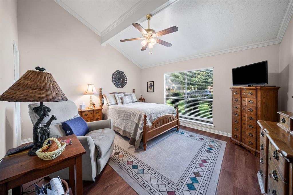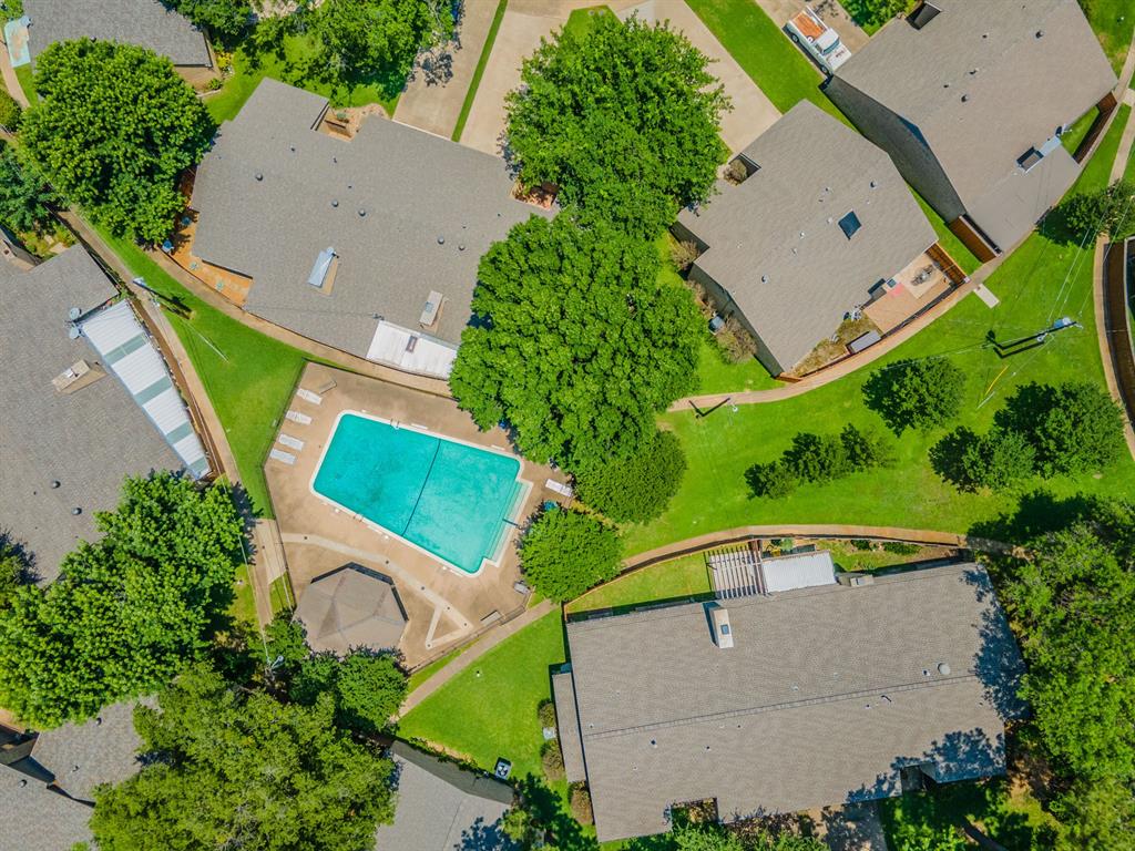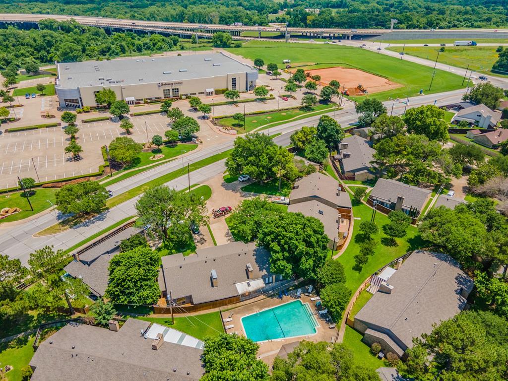 Rare opportunity to live in this elegant community of only 24 homes. Fabulous open floor plan in a contemporary yet warm design. Soaring ceilings, and loads of lights. Privacy and security are key and the unique courtyard entry provides both. Large living are offers maximum use of space and is open to the bright kitchen and breakfast room. Two primary bedrooms will accommodate most owners, or the second would make a fabulous work from home space. Special features include huge walk-in closets, covered back patio, grassy area for a pet, and an exit gate leading to the sparkling community pool. HVAC replaced in April 2025. This stunning home is located only moments from DFW Airport, Las Colinas, and both downtown areas of Dallas and Fort Worth. The Arlington and Grand Prairie entertainment areas, Lone Star Park racetrack and AT&T Stadium are all a quick drive away.
