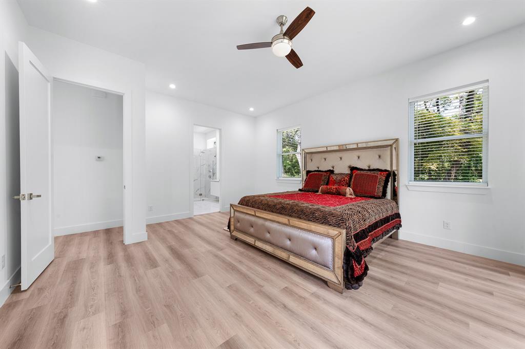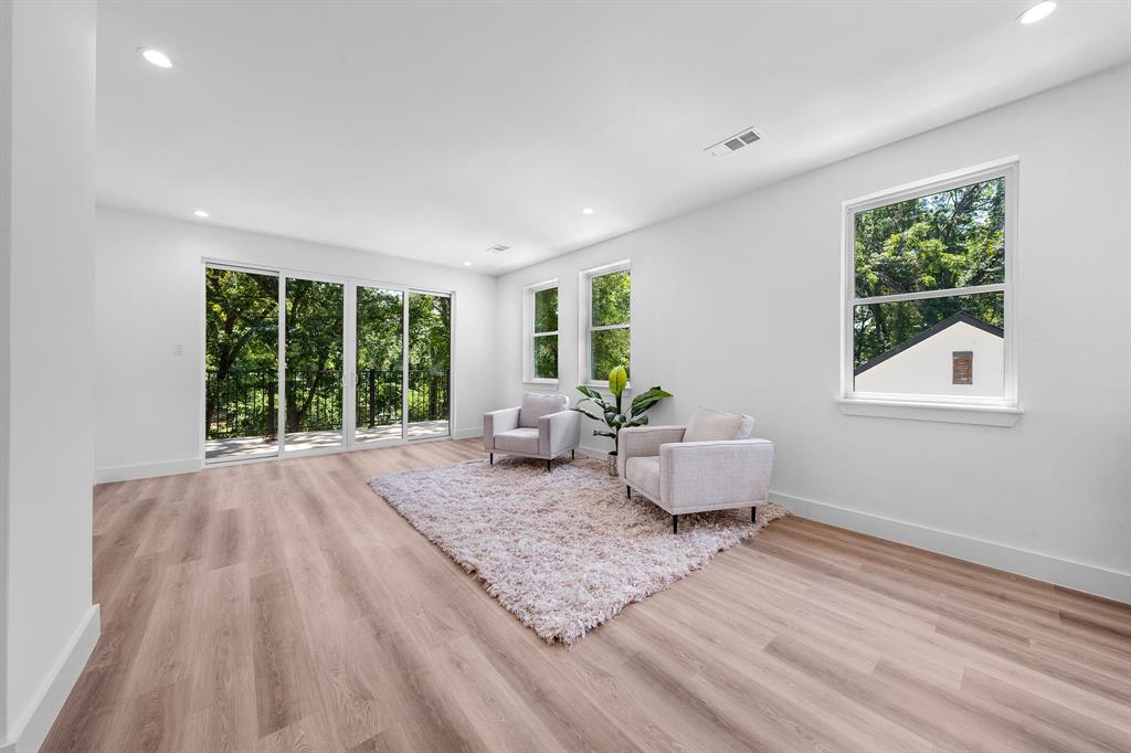 One of the highlights of this home is the seamless flow to the outdoors. The primary suite, living room, and kitchen each offer direct access to a covered walk-out area overlooking the backyard. Though on the main floor, it carries the airy feel of a balcony and creates the perfect space for entertaining or relaxing with lake views.