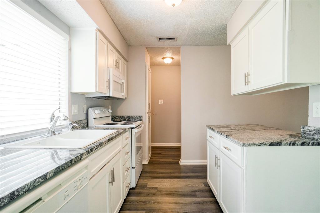Recently remodeled approx. 1400 sf, 3 bedroom, 2 bath home in Plano within walking distance to elementary and middle schools as well as Spring Creek Nature Park. Remodeled kitchen with beautiful granite countertops. Hard flooring throughout Large living room with vaulted ceilings and fireplace. Master bedroom has walk in closet and walk in shower. Ceiling fans in all bedrooms. Laundry room with washer & dryer hookups. 2 car attached garage with auto-opener. Fenced back yard with many shade and fruit trees, and covered shed. Lovely neighborhood. Buyer to verify all schools.
