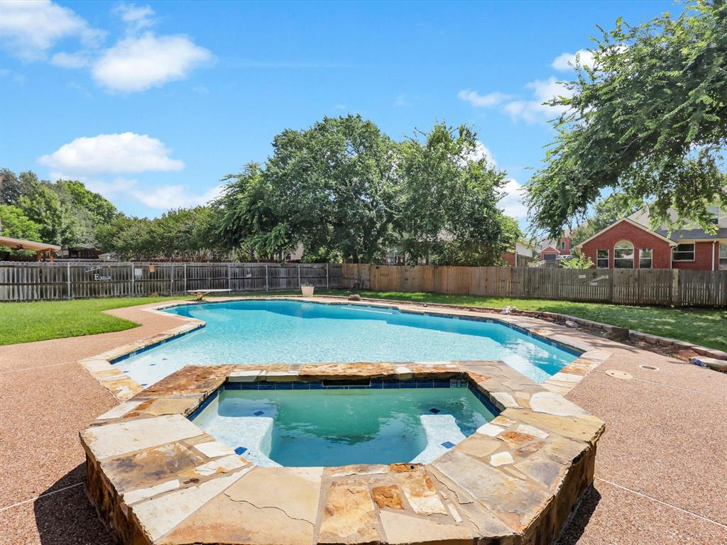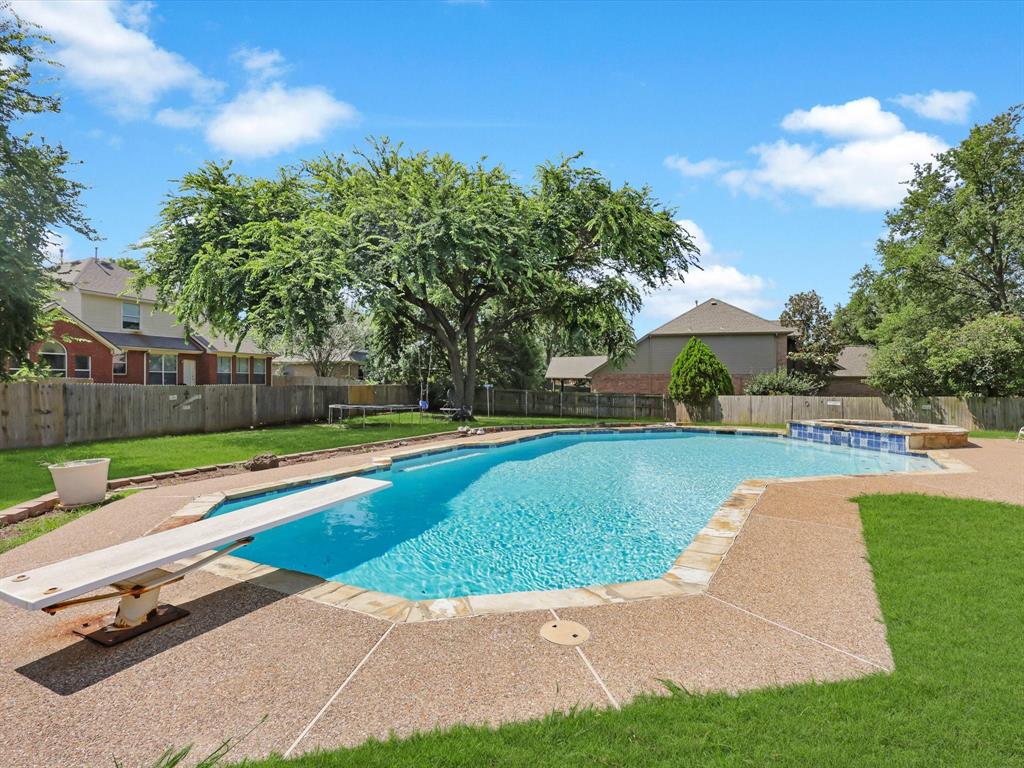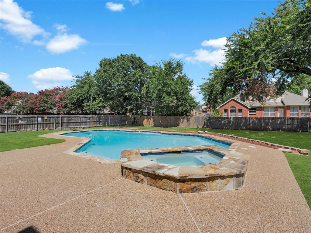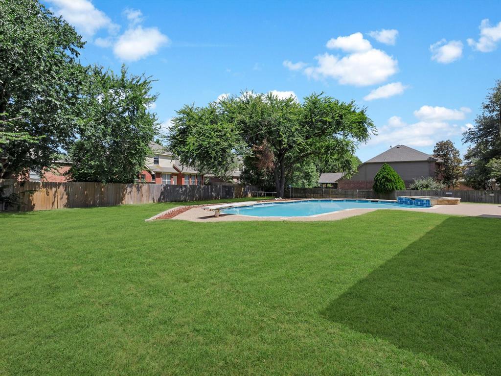 But the true showstopper? Yes, The astonishing backyard oasis, complete with a sparkling pool, lush landscaping, and plenty of patio space to host unforgettable summer gatherings or enjoy tranquil evenings under the Texas sky.