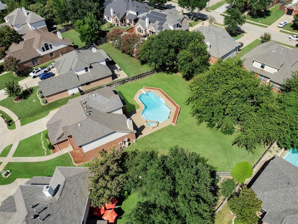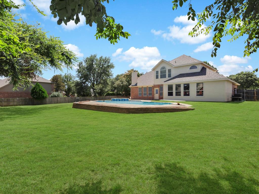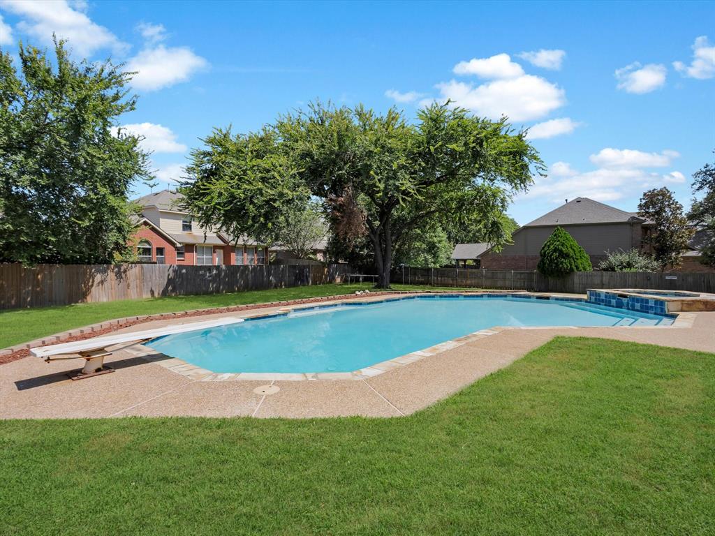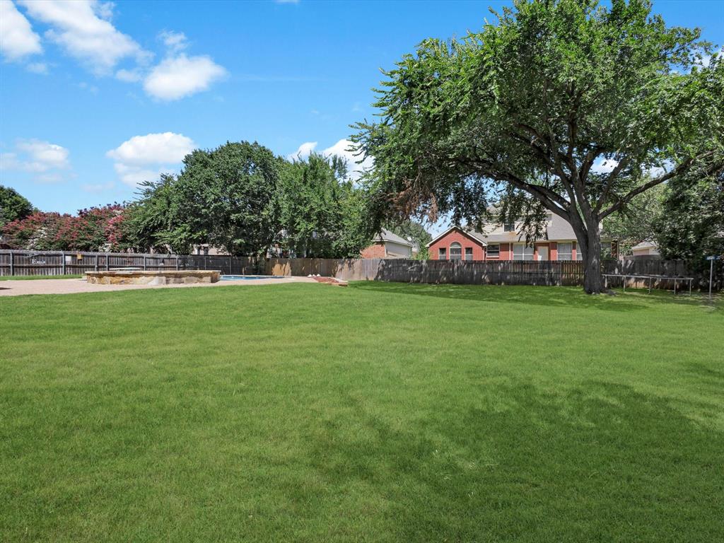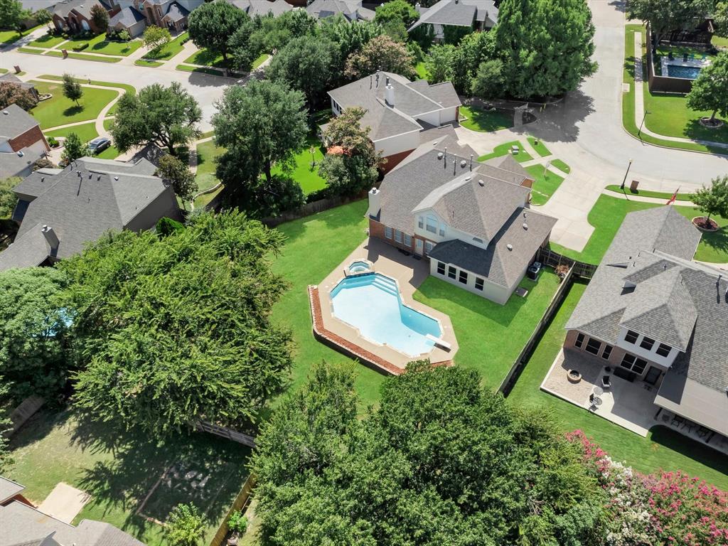 But the true showstopper? Yes, The astonishing backyard oasis, complete with a sparkling pool, lush landscaping, and plenty of patio space to host unforgettable summer gatherings or enjoy tranquil evenings under the Texas sky.