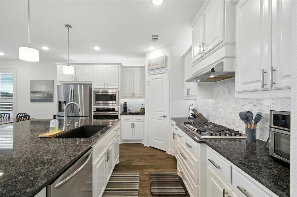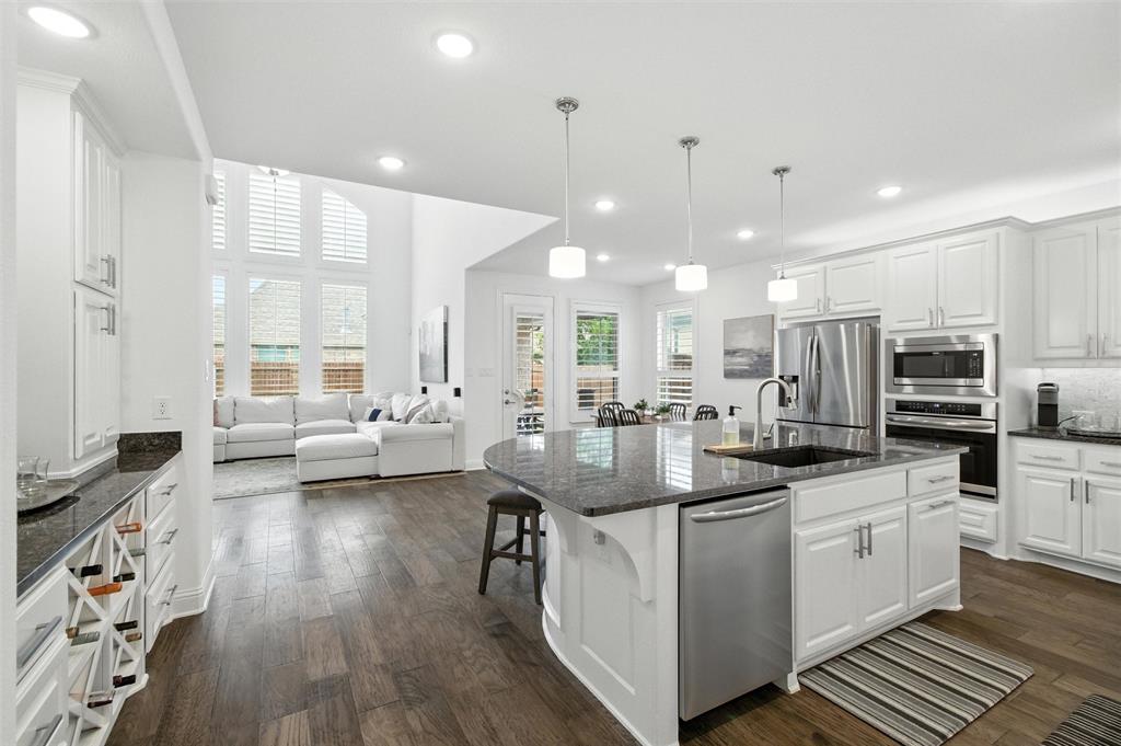 Welcome to 7424 Winterbloom Way, an exceptional 2-story home in the desirable Tavolo Park community of Fort Worth. Built in 2019, this 4-bedroom, 3.5-bath home offers 3,232 sq ft of thoughtfully designed living space. The heart of the home is the gourmet kitchen, complete with white cabinetry, a large island, granite counters, and stainless-steel appliances, all overlooking the spacious living area with soaring ceilings. Wood floors, plantation shutters, and ceiling fans in every room add both elegance and comfort. The private primary suite is a retreat, featuring dual sinks, a soaking tub, and a beautifully tiled shower. Upstairs, you’ll find a versatile loft along with additional bedrooms that provide ample space for family or guests. A dedicated office makes working from home a breeze, while the oversized 2-car extended garage—large enough to fit a full-size truck—offers incredible storage and convenience. The main level also includes an additional mudroom providing extra convenience for pet owners or flexible storage. Outdoor living is enhanced by Tavolo Park’s exceptional amenities, including a resort-style pool, scenic walking trails, and community green spaces. Combining modern luxury with everyday functionality, this home is the perfect opportunity to enjoy refined living in one of Fort Worth’s most vibrant neighborhoods.
